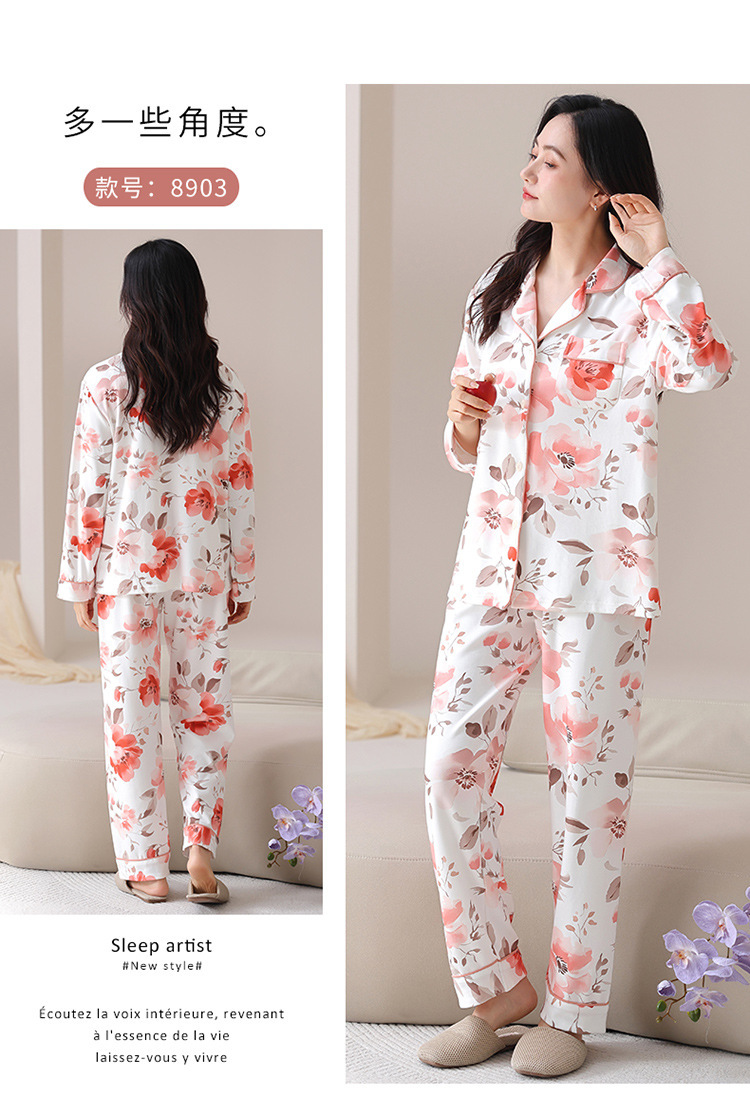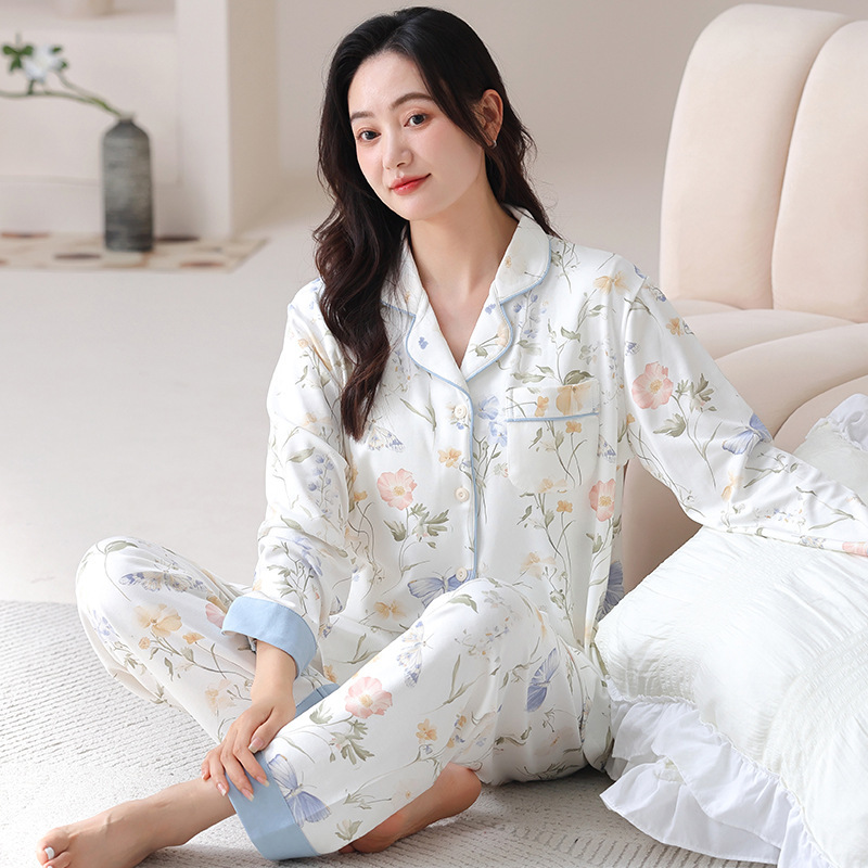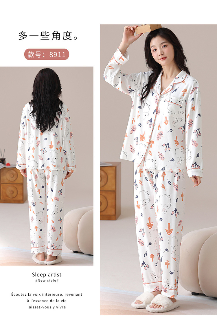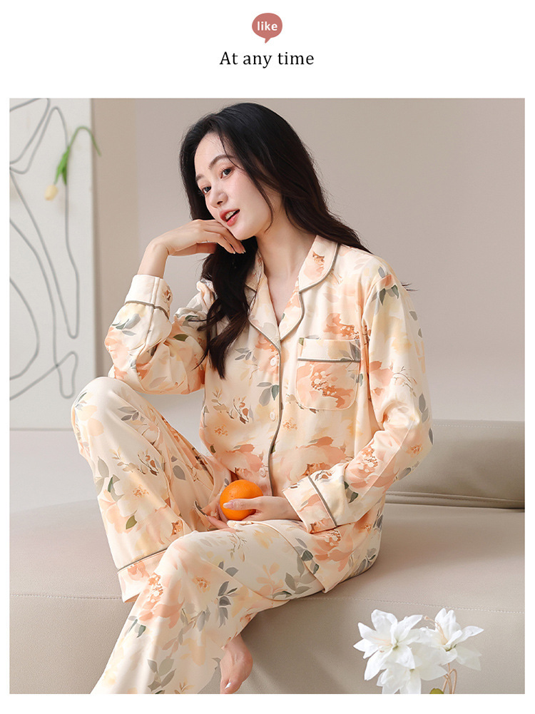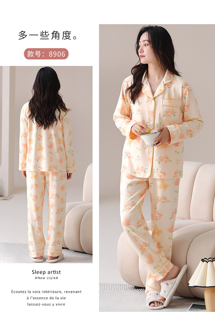 니트 코튼 파자마 여성용 봄과 가을 긴팔 카디건 세트 플러스 사이즈 느슨한 겉옷 중년 여성용 홈 의류스토어 가기