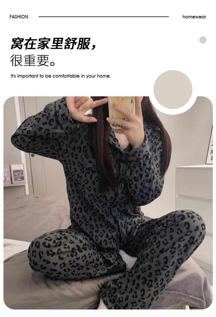 여성용 국경 간 무역 라펠 잠옷, 봄, 가을 긴팔 바지, 검은색 점무늬 만화 소녀 홈웨어, 도매, 귀여운스토어 가기