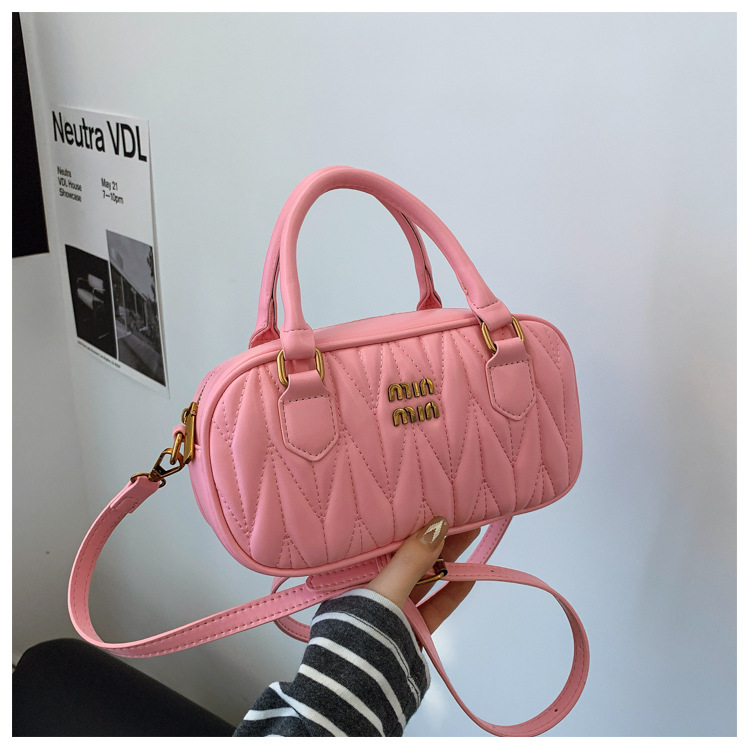 국경 간 볼링 작은 가방 2024 새로운 한국 스타일 유행 주름 마름모 휴대용 작은 사각형 가방 크로스 바디 어깨 가방