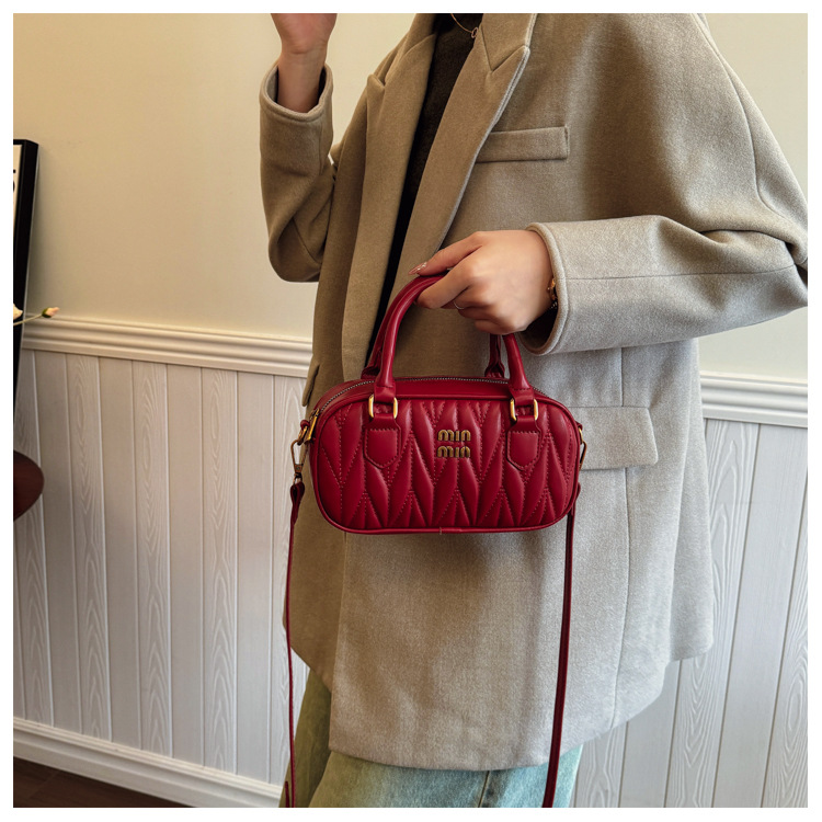 국경 간 볼링 작은 가방 2024 새로운 한국 스타일 유행 주름 마름모 휴대용 작은 사각형 가방 크로스 바디 어깨 가방스토어 가기
