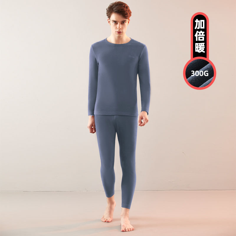 새로운 가을과 겨울 급증 면화 남자의 둥근 목 열 속옷 중년 및 노인 가을 옷과 가을 바지는 두꺼운 따뜻한 세트