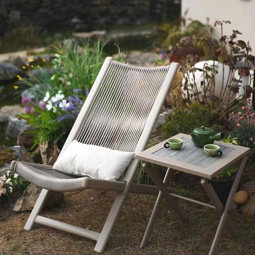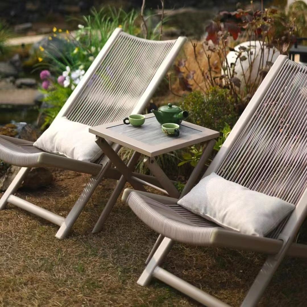 운치 라운지 체어 야외 발코니 정원 레저 의자 등받이 라탄 의자 레이지 체어 인기 있는 민슈쿠 접이식 테이블과 의자