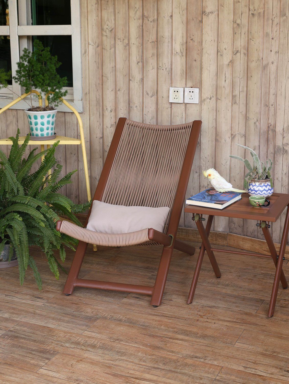 운치 라운지 체어 야외 발코니 정원 레저 의자 등받이 라탄 의자 레이지 체어 인기 있는 민슈쿠 접이식 테이블과 의자스토어 가기
