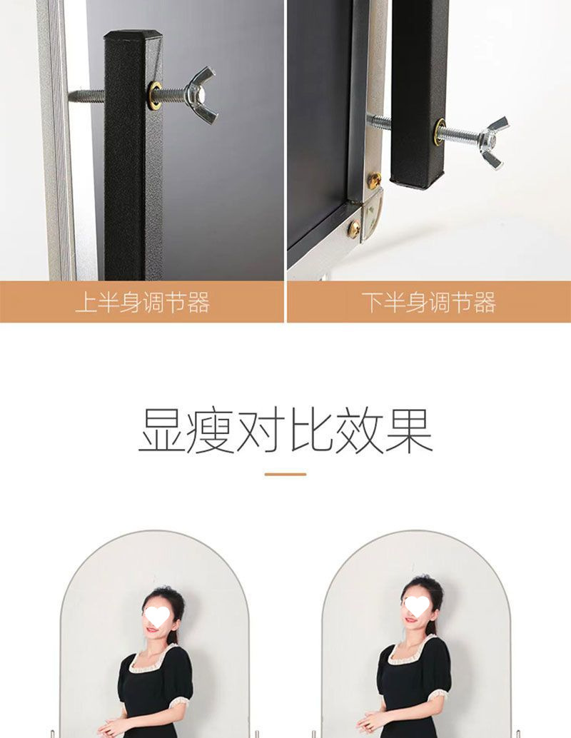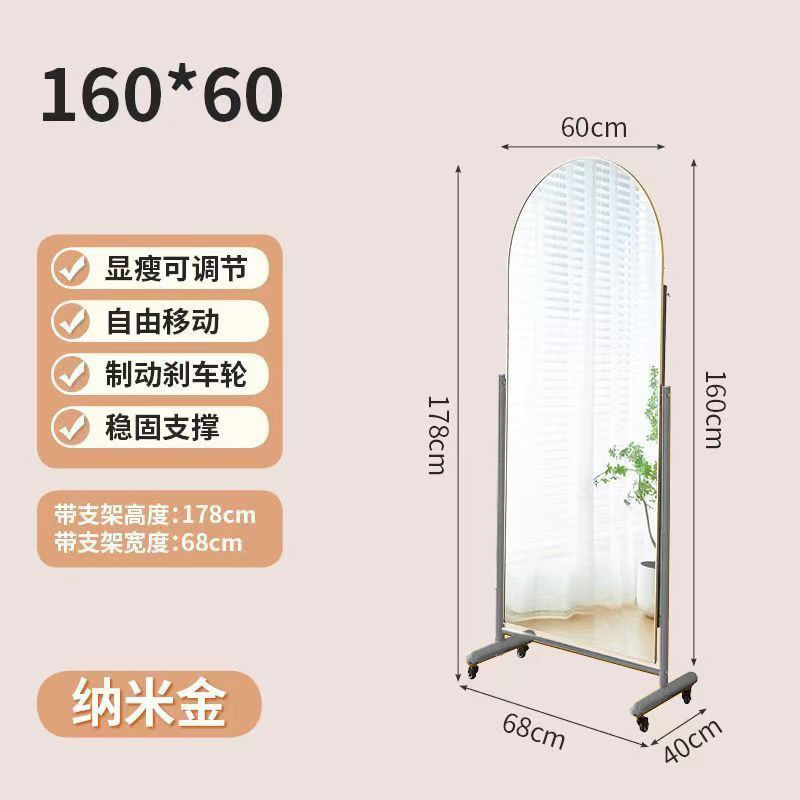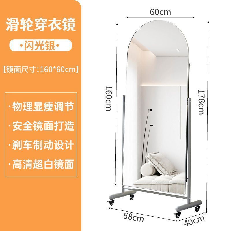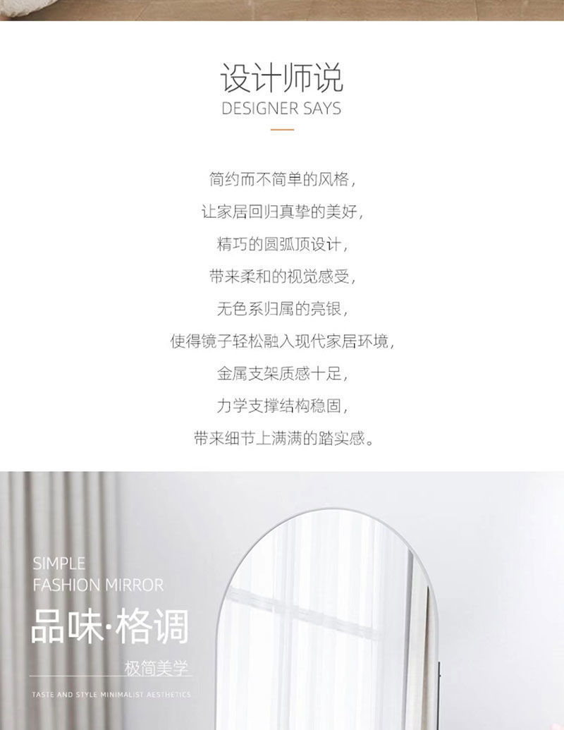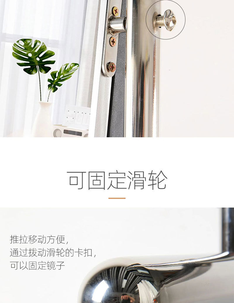 스테인레스 스틸 아치 전체 길이 거울 슈퍼 화이트 미러 모바일 전체 길이 거울 비 변형 바닥 거울 의류 매장 용 바퀴