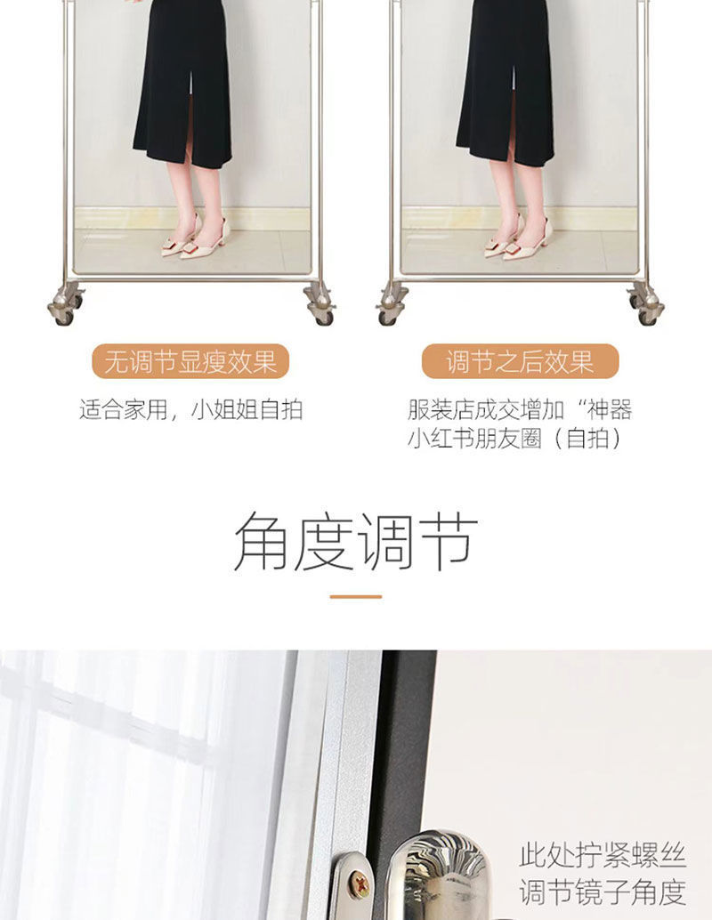 스테인레스 스틸 아치 전체 길이 거울 슈퍼 화이트 미러 모바일 전체 길이 거울 비 변형 바닥 거울 의류 매장 용 바퀴스토어 가기