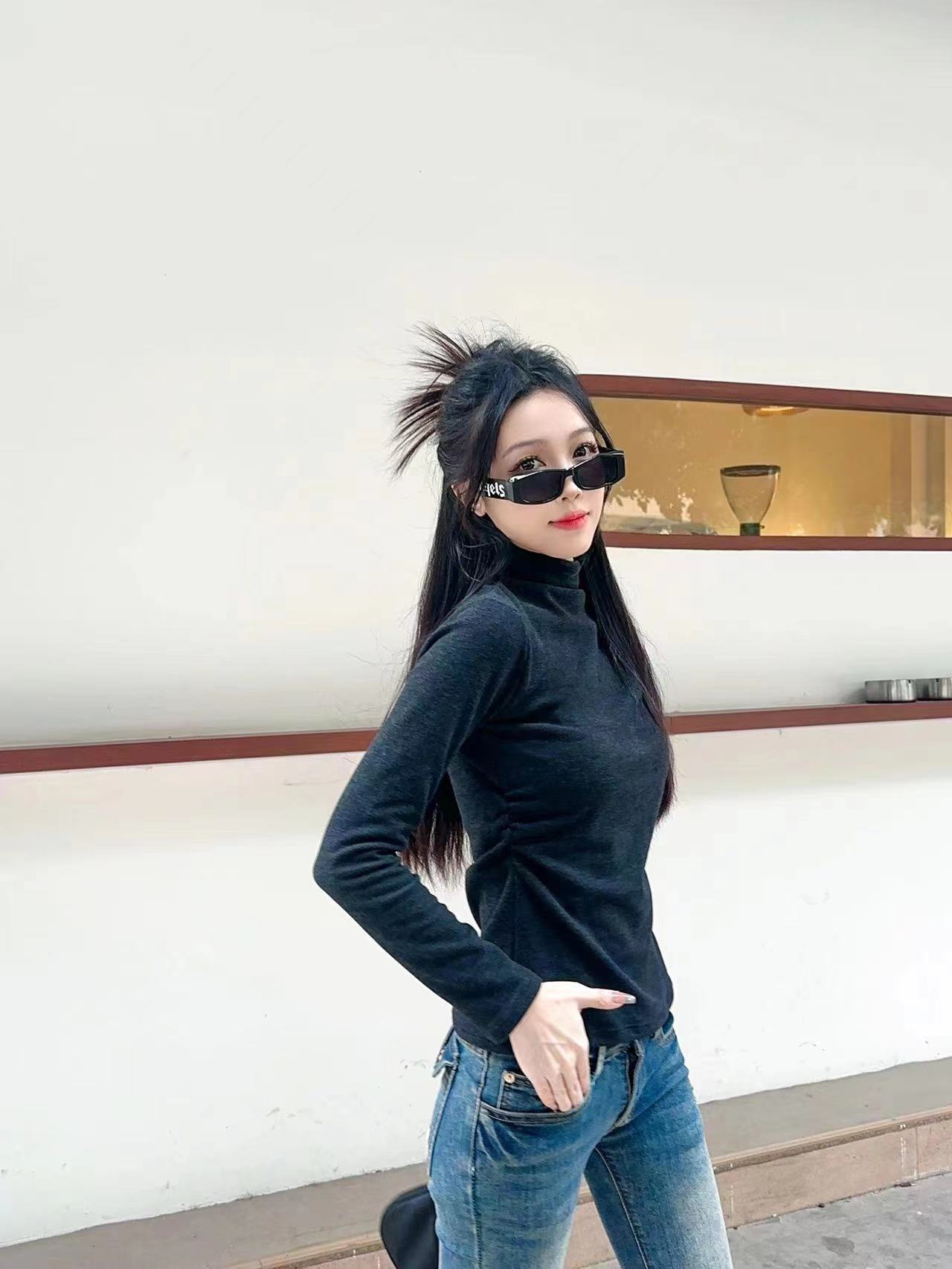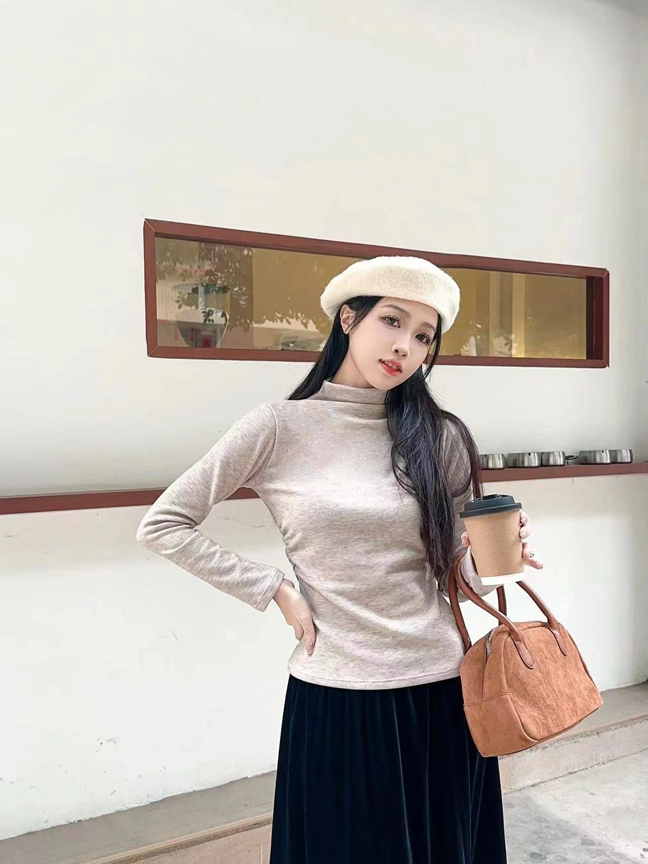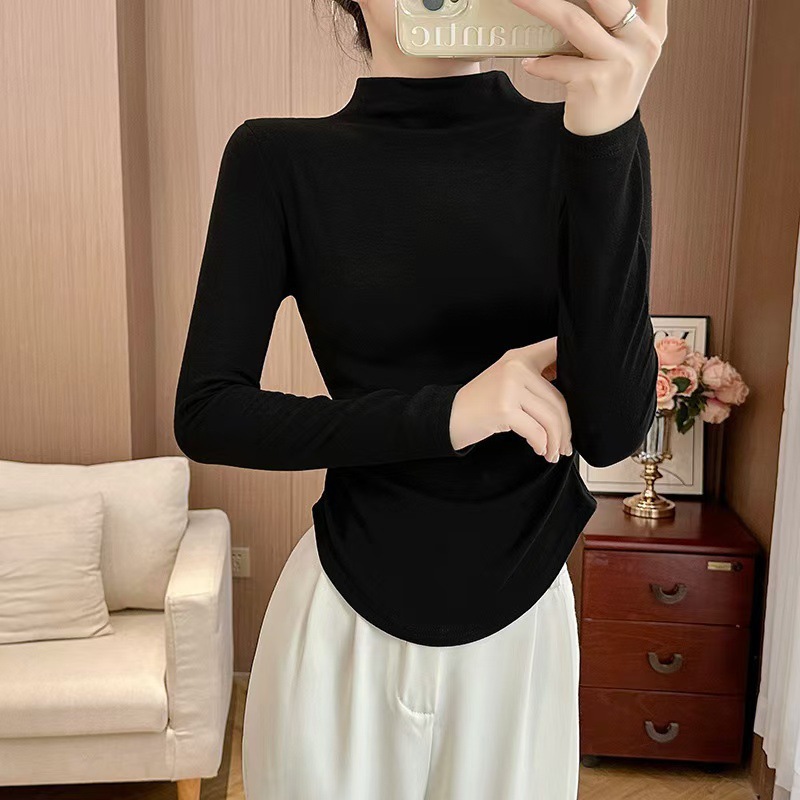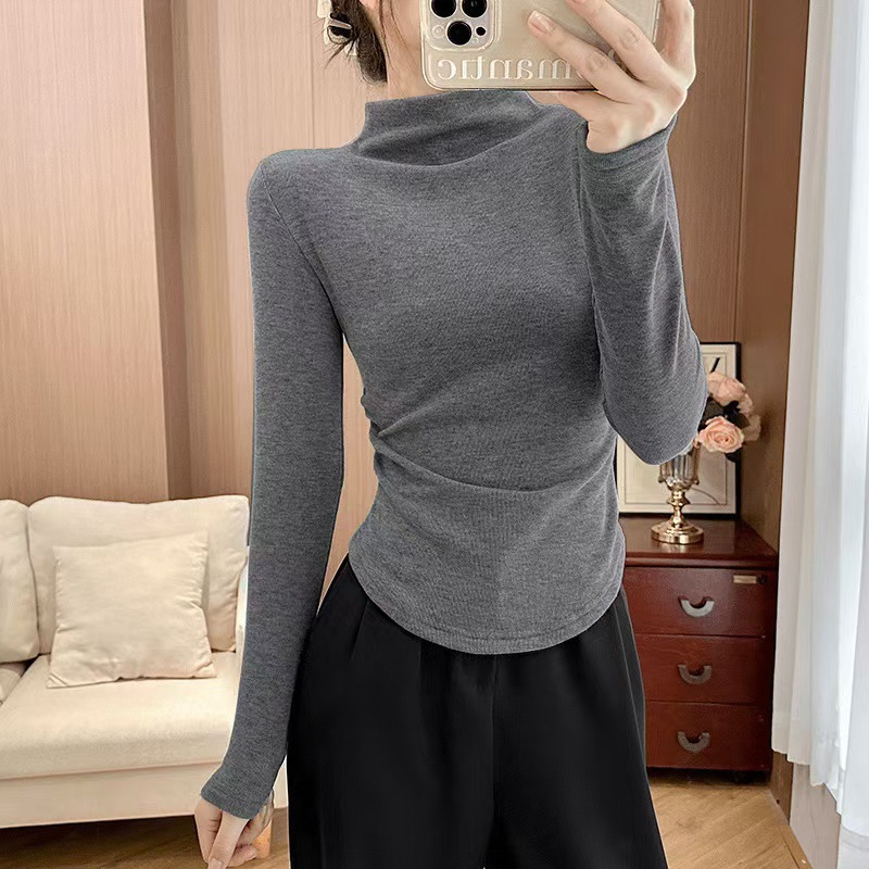 가을과 겨울 반 높이 칼라 새 기모 여성용 샌딩 가열 일정한 온도 스레드 기본 셔츠와 함께 플리츠 슬림 핏 탑스토어 가기