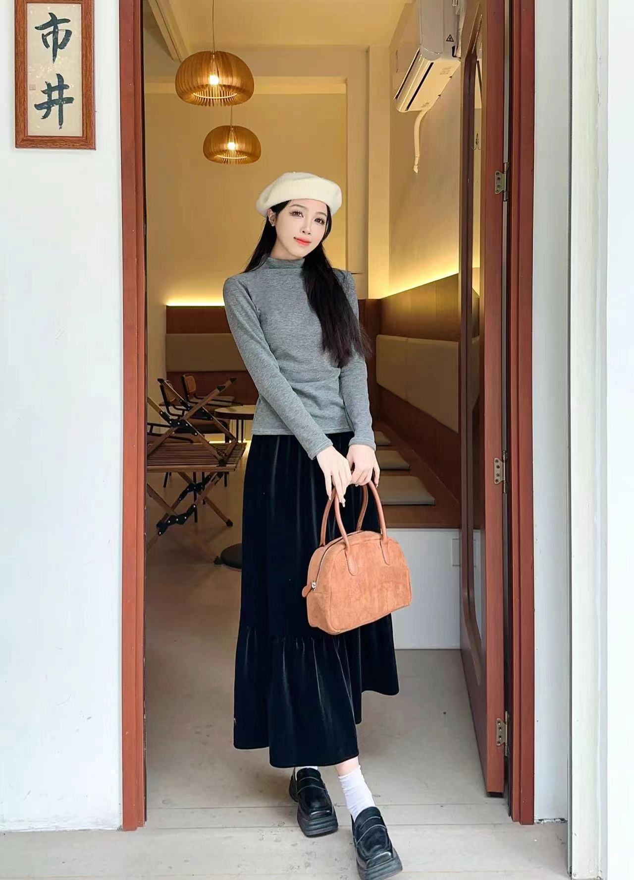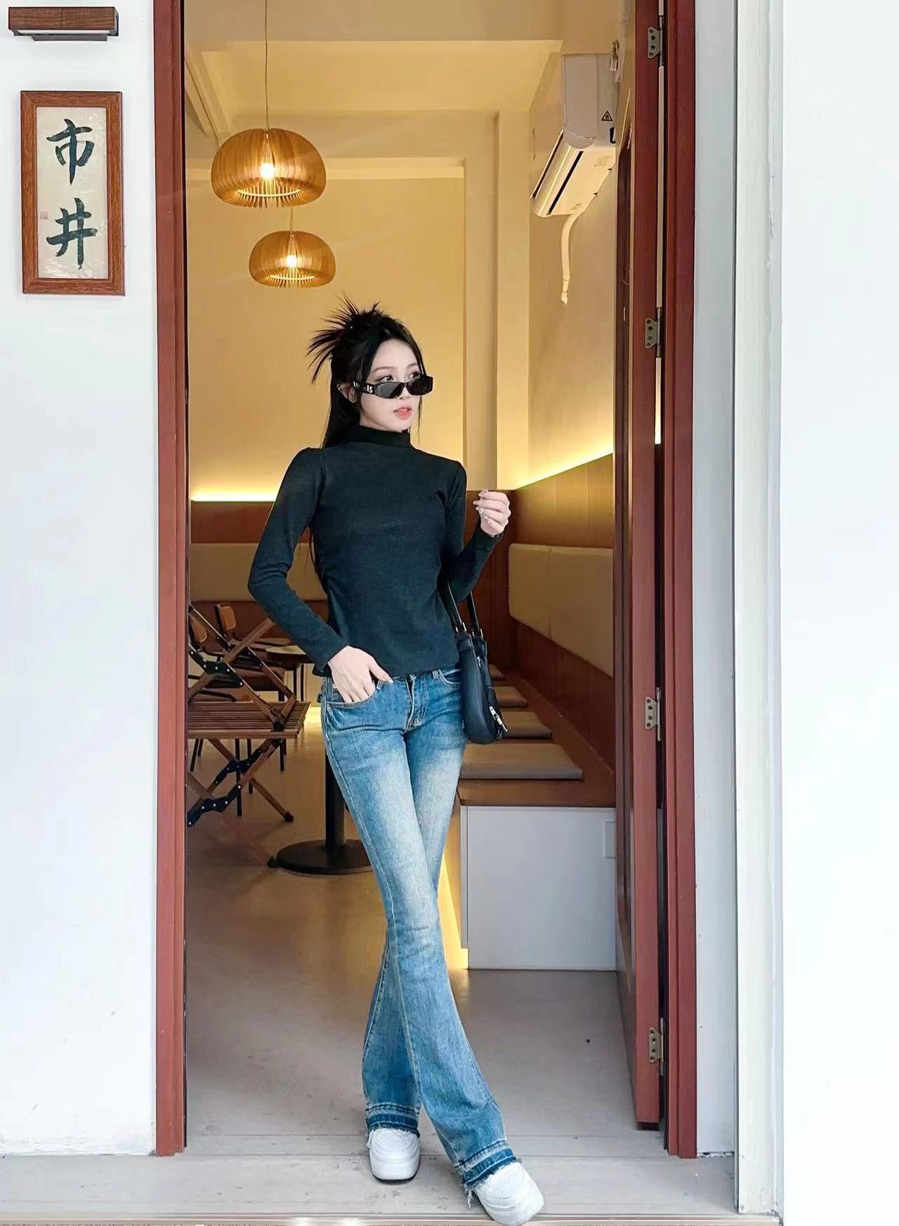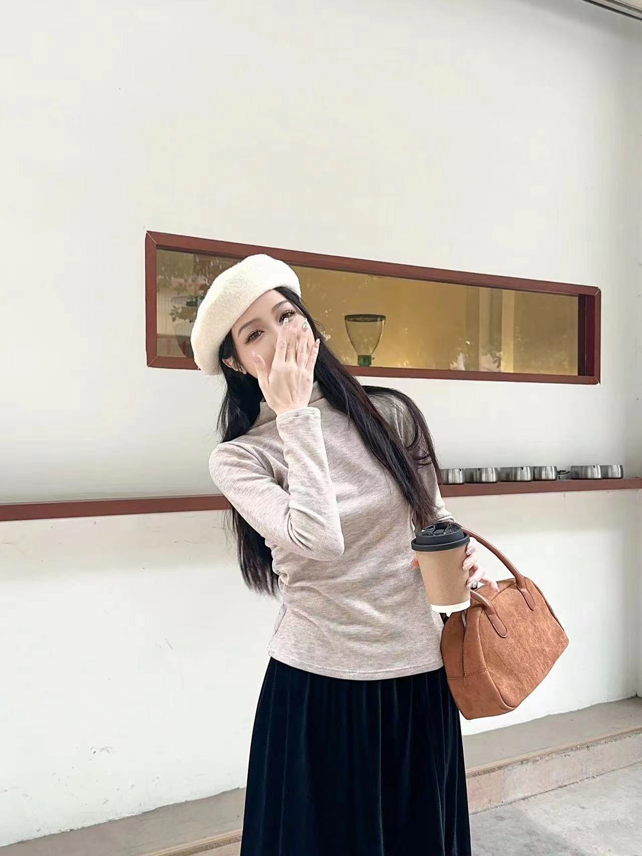 가을과 겨울 반 높이 칼라 새 기모 여성용 샌딩 가열 일정한 온도 스레드 기본 셔츠와 함께 플리츠 슬림 핏 탑스토어 가기