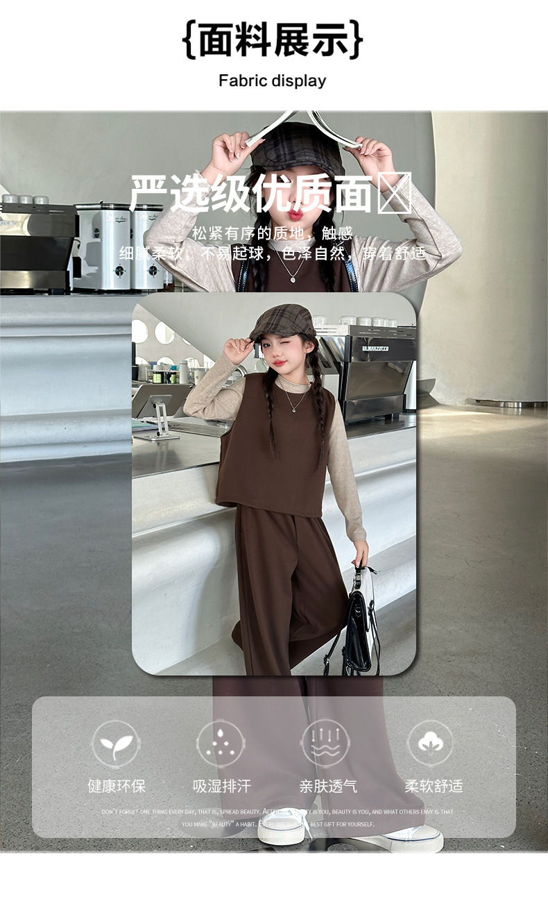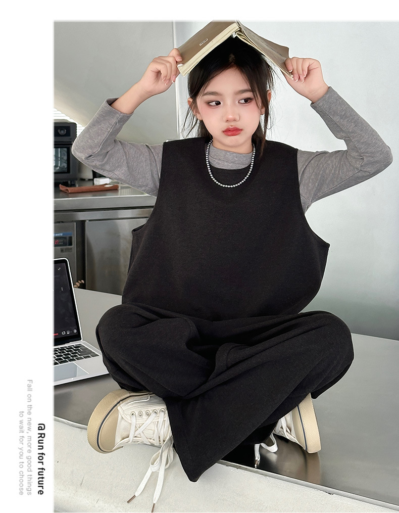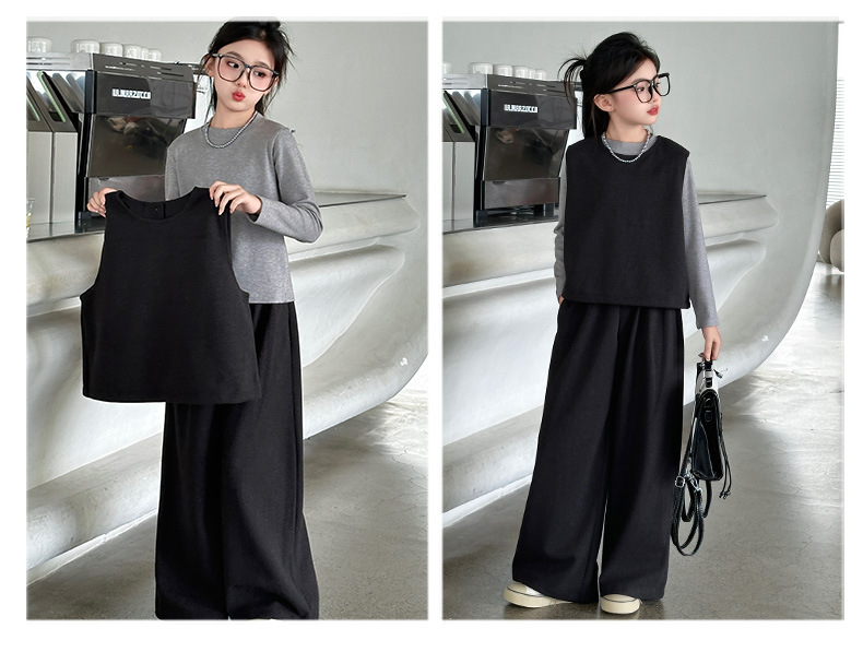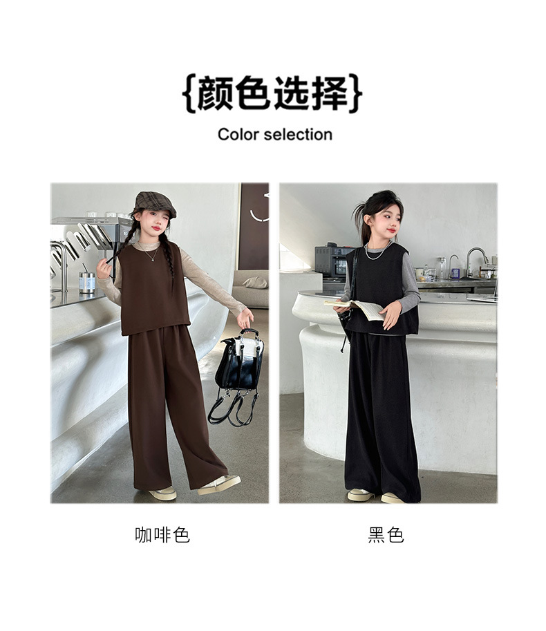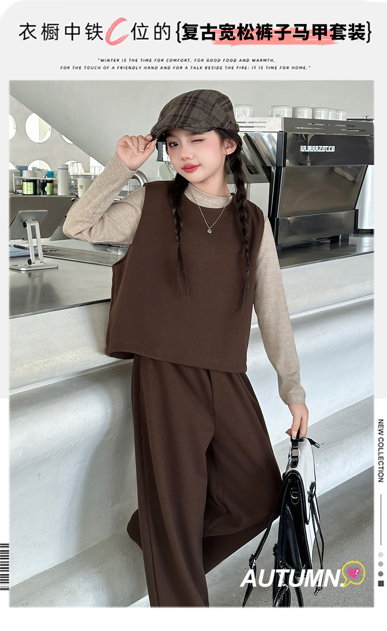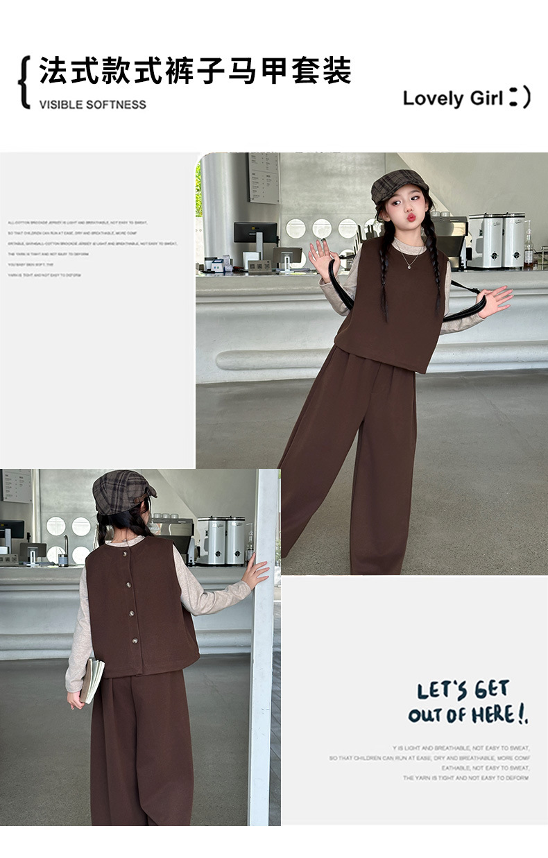 여아용 하의 셔츠, 조끼, 와이드 팬츠 3종 세트 2025년 늦가을 스타일 중대형 아동용 긴팔 모직 조끼와 스트레이트 팬츠스토어 가기