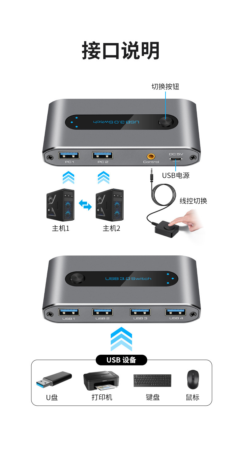Usb 스위처 프린터 공유기 usb3.0 4 대 2 대 2 컴퓨터 공유 4 USB 장치