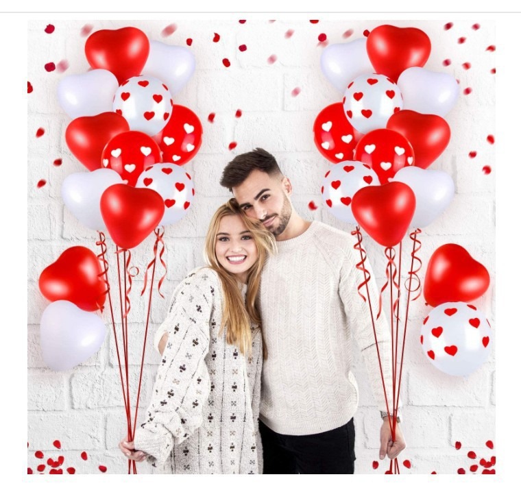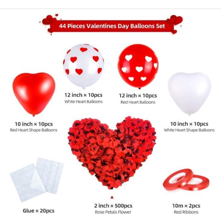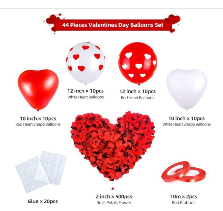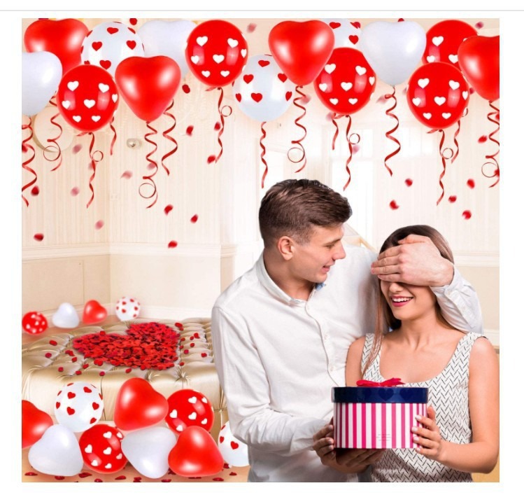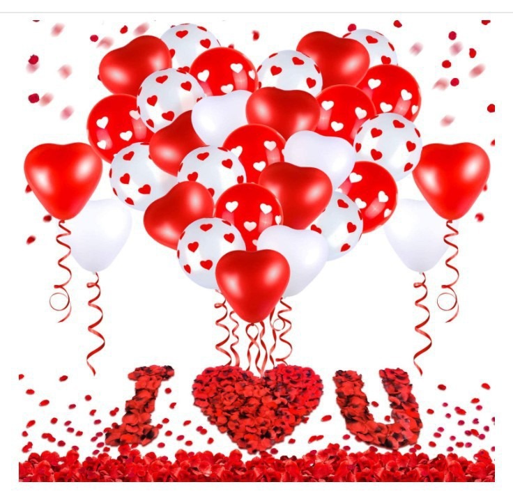 크로스 국경 레드 화이트 하트 프린트 풍선 세트 다크 레드 로즈 꽃잎 발렌타인 데이 제안 장식스토어 가기