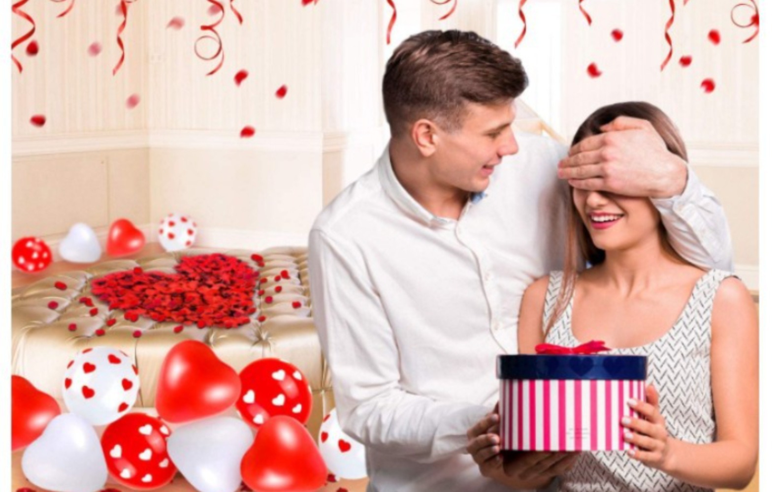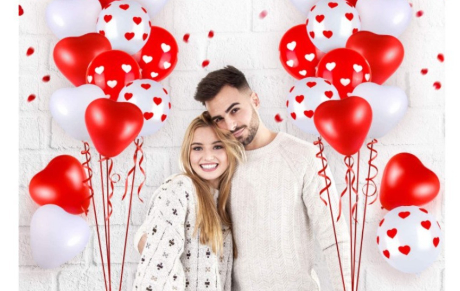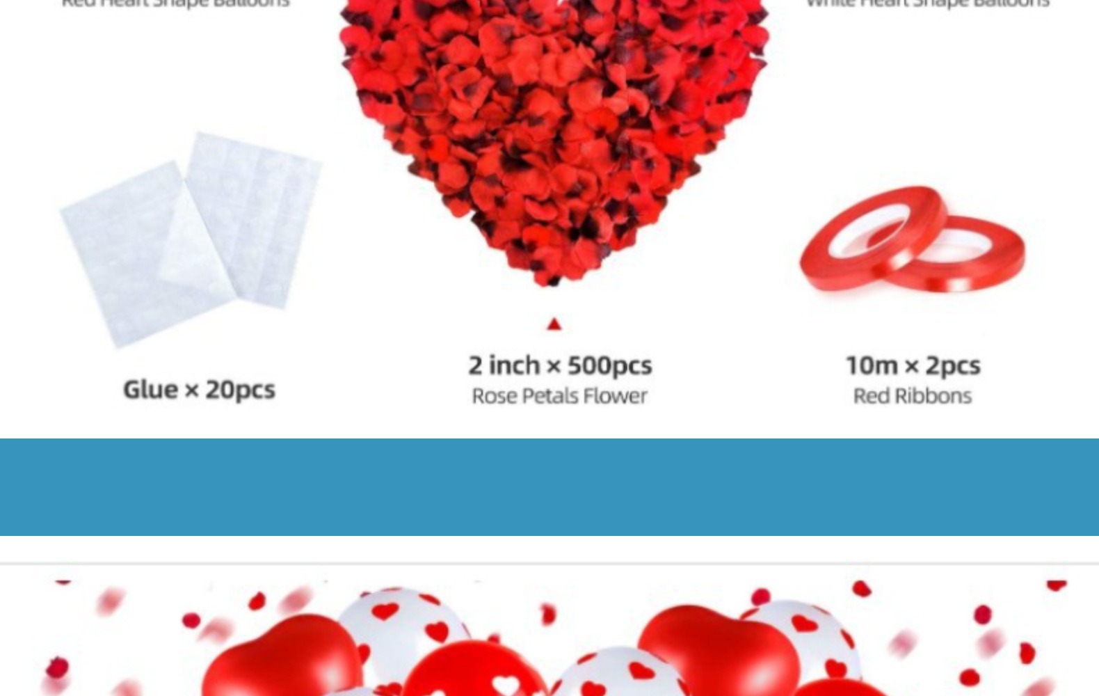 크로스 국경 레드 화이트 하트 프린트 풍선 세트 다크 레드 로즈 꽃잎 발렌타인 데이 제안 장식스토어 가기