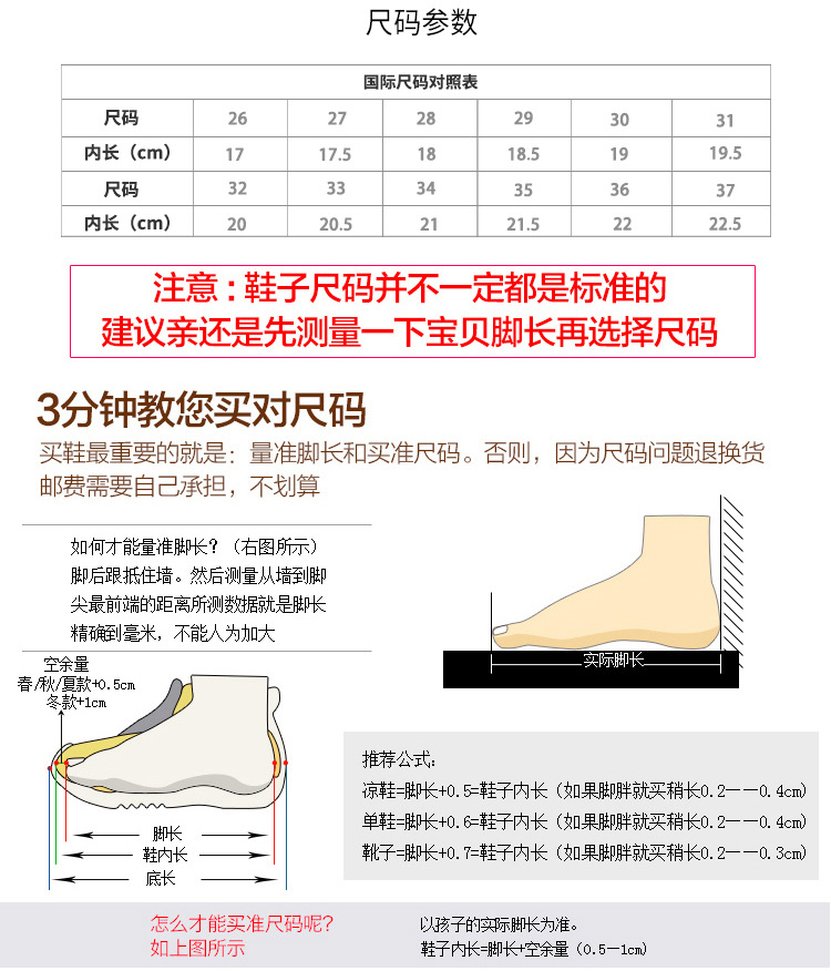 • 내부 길이는 발 길이에 0.5cm를 더한 것과 같습니다.