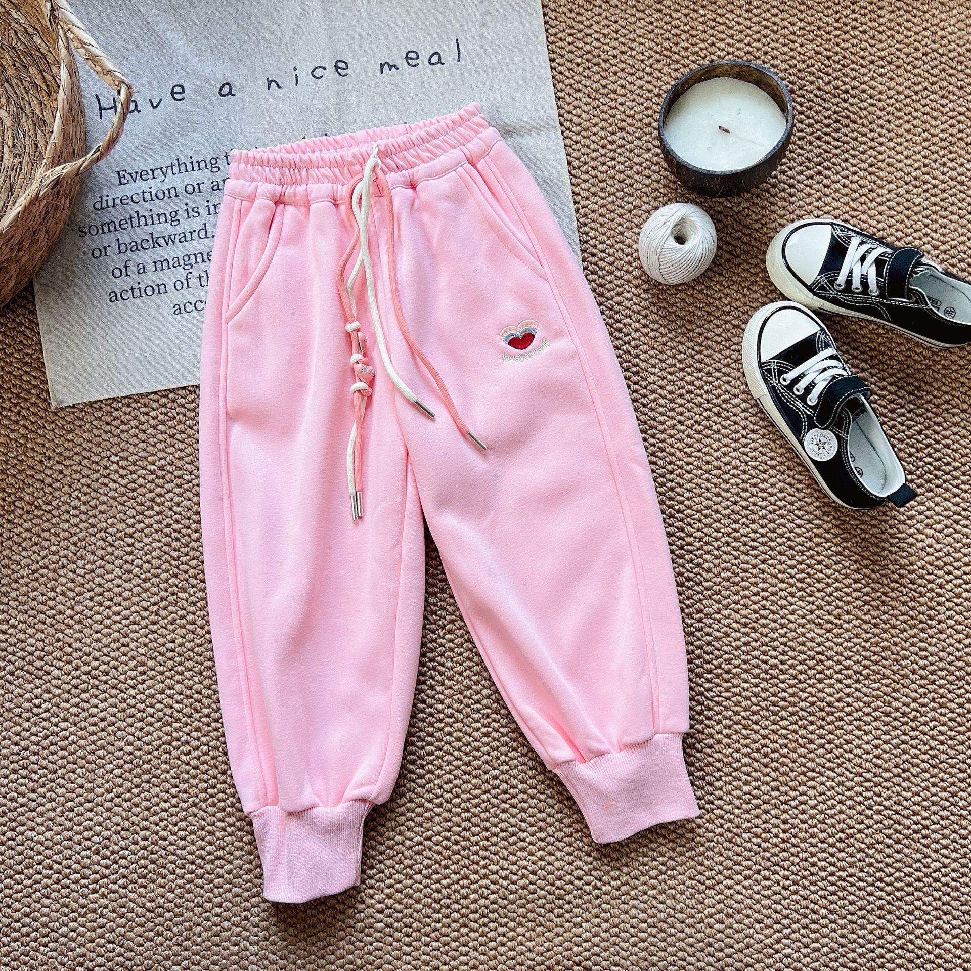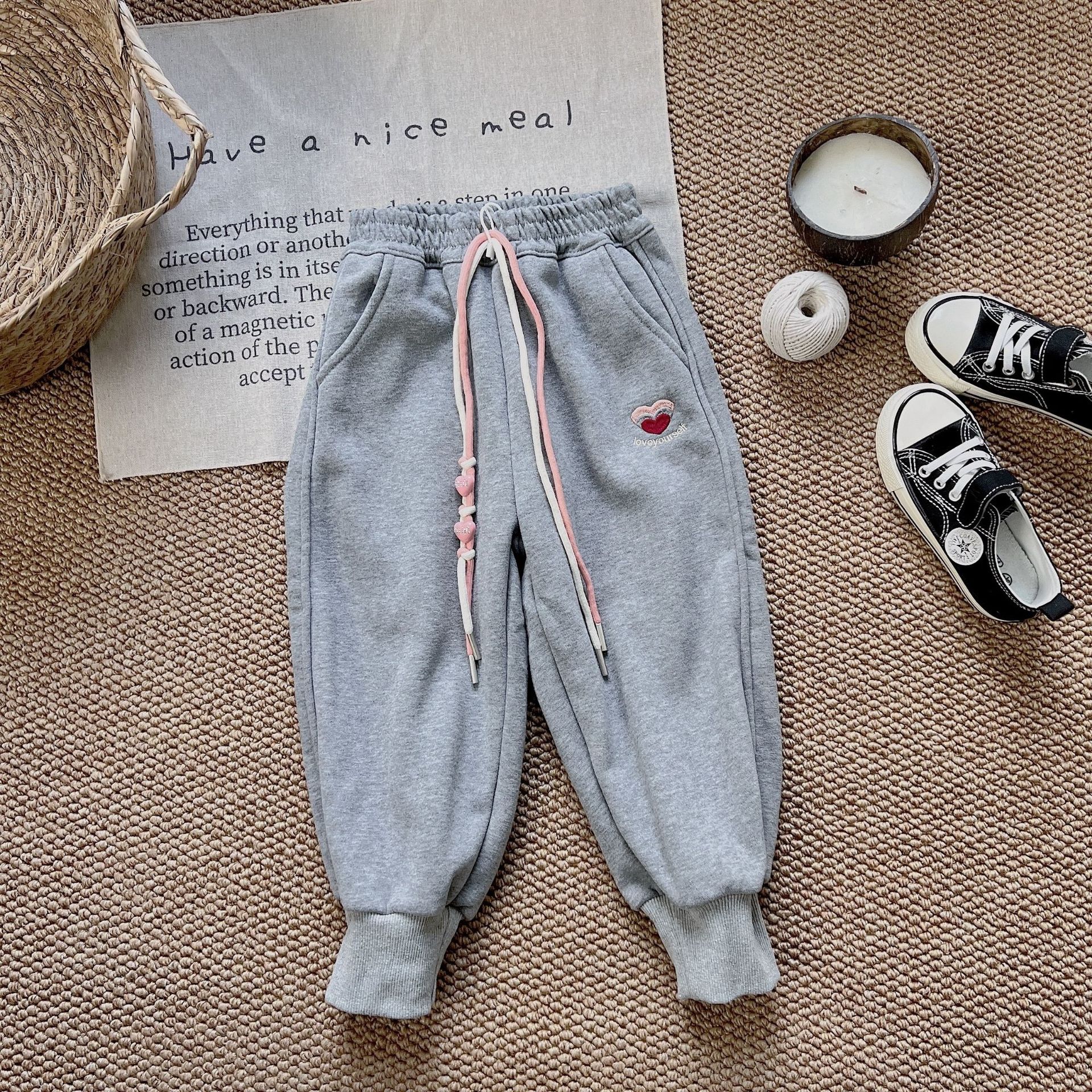 아동용 바지 2025 겨울 신제품 남학생과 여학생을 위한 2952 자수 러브 스타일 중대형 아동 한국식 원피스 벨벳 스웨트팬츠