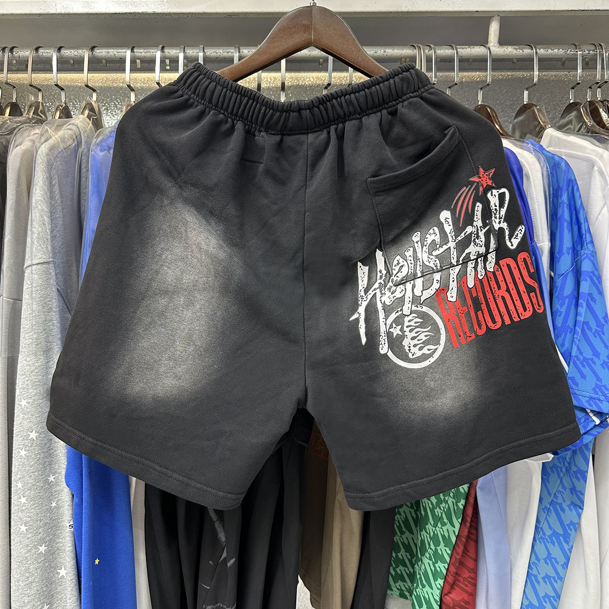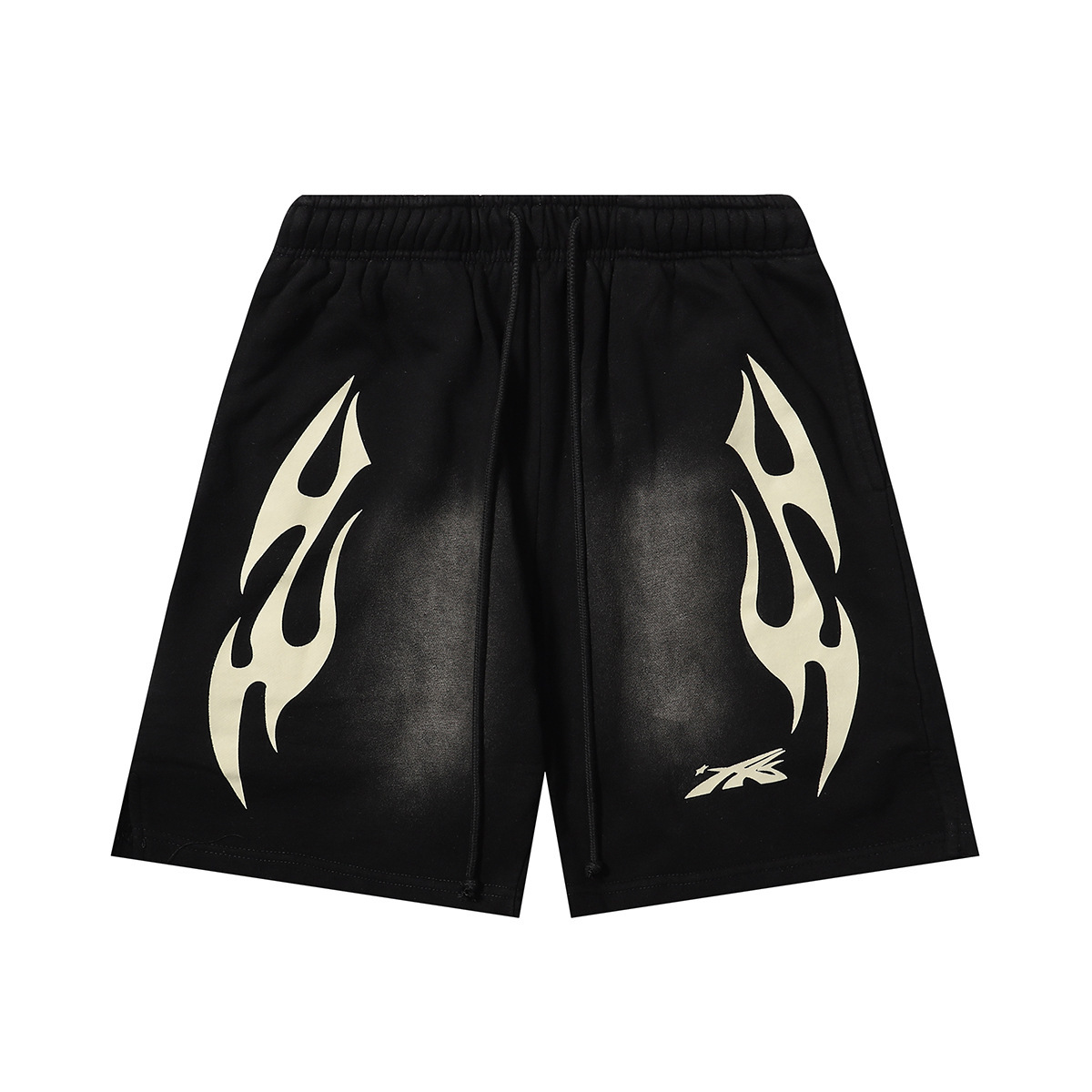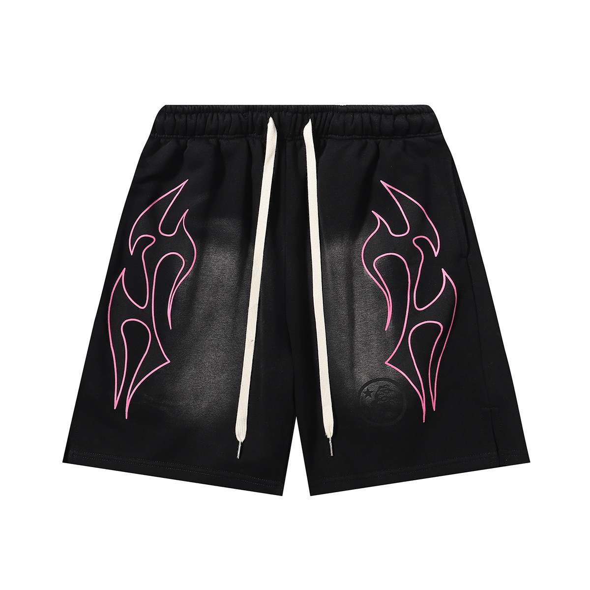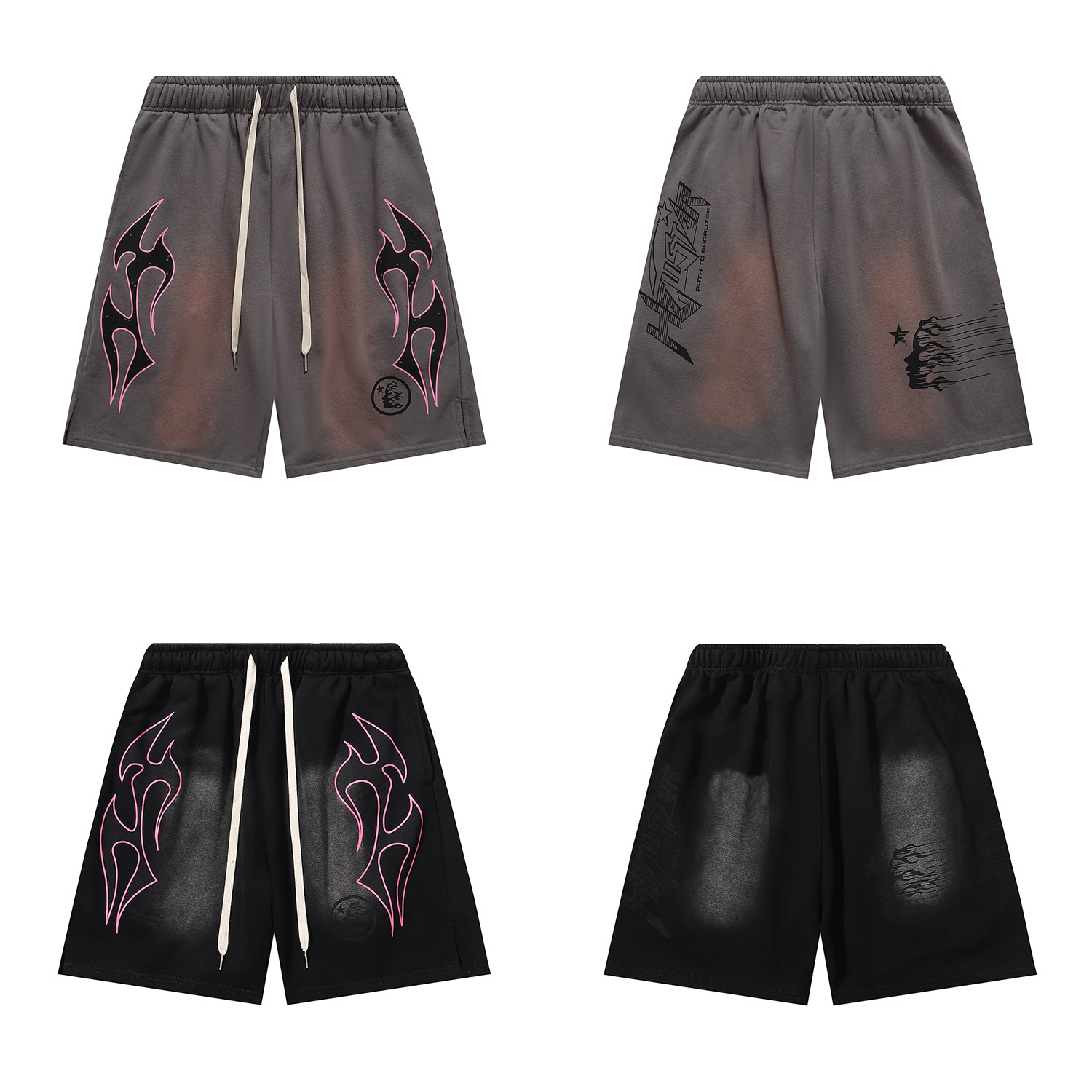 미국 스타일 패션 브랜드 스타 레코드 재미 웃는 인쇄 트랩 캐주얼 루즈 반바지 남성용 세탁 재킷스토어 가기