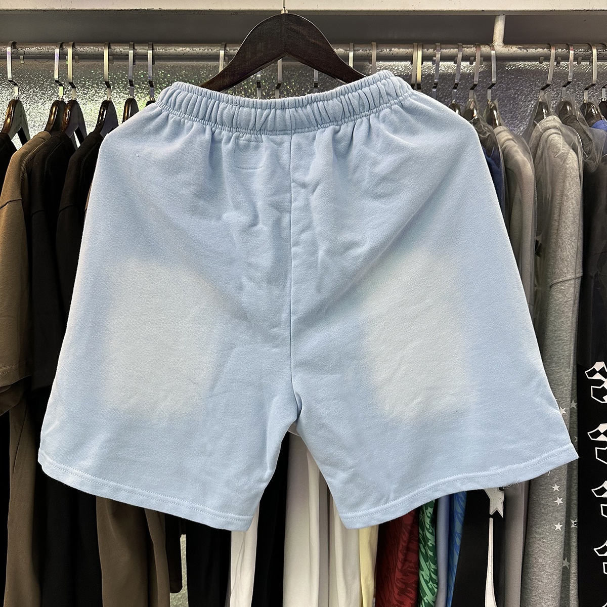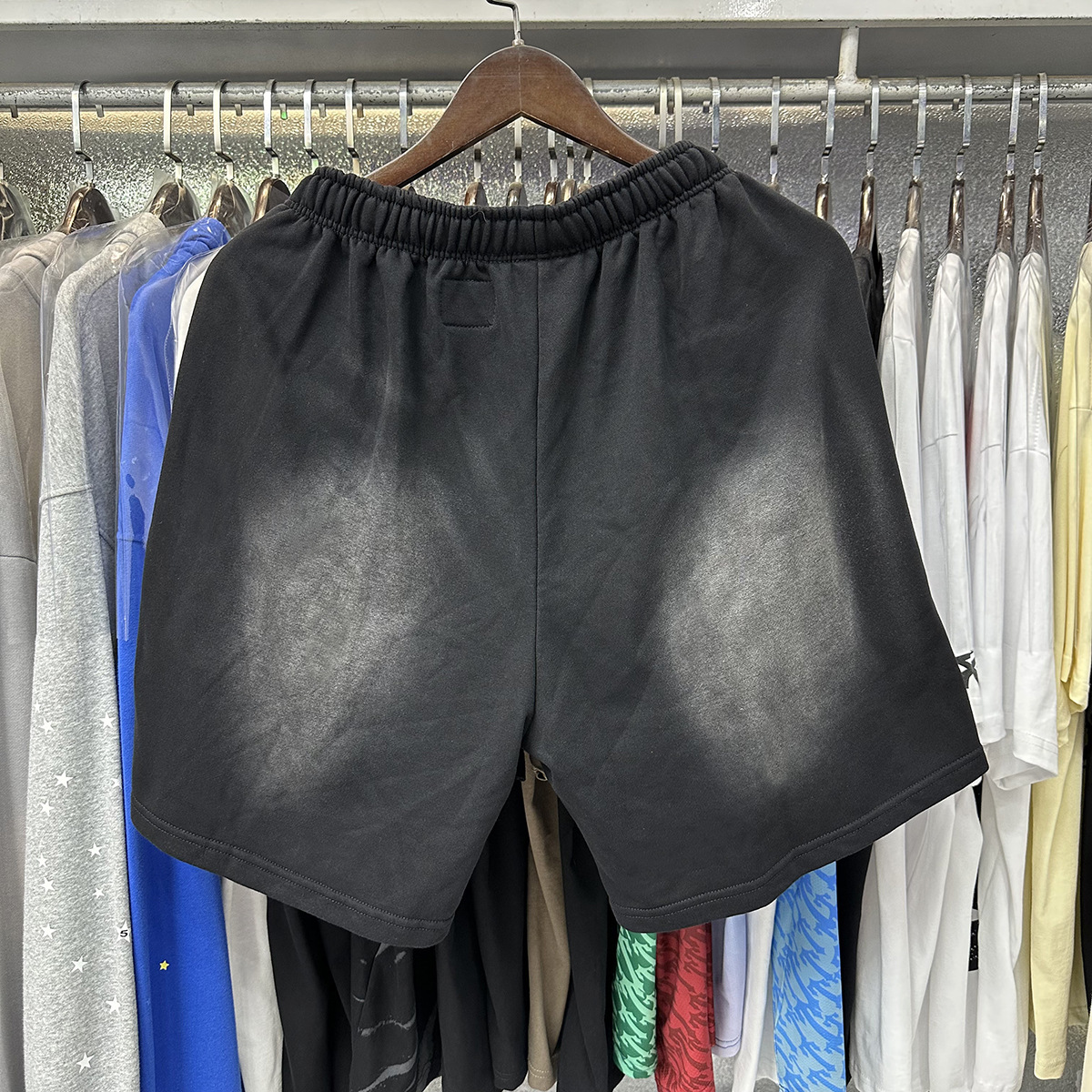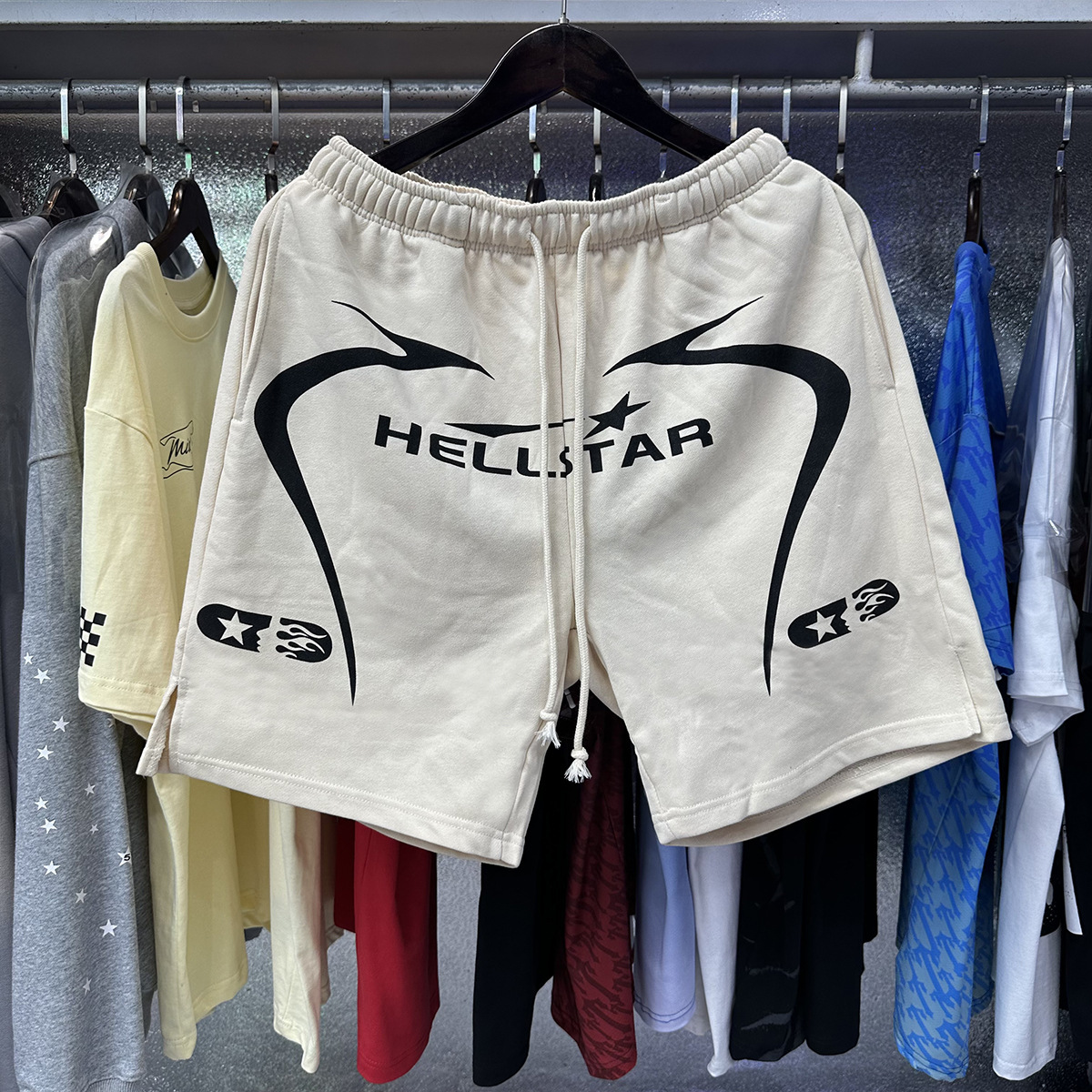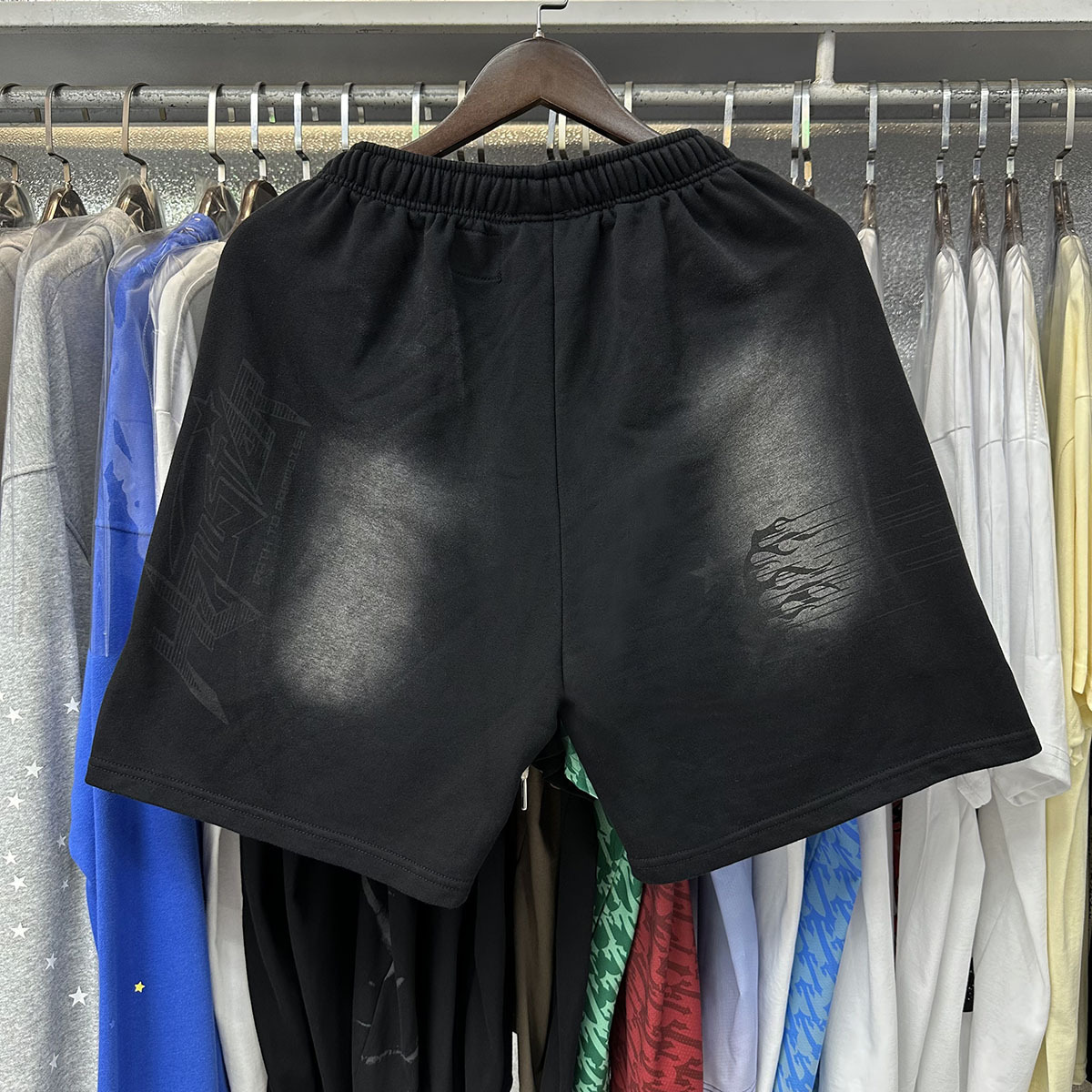 미국 스타일 패션 브랜드 스타 레코드 재미 웃는 인쇄 트랩 캐주얼 루즈 반바지 남성용 세탁 재킷스토어 가기