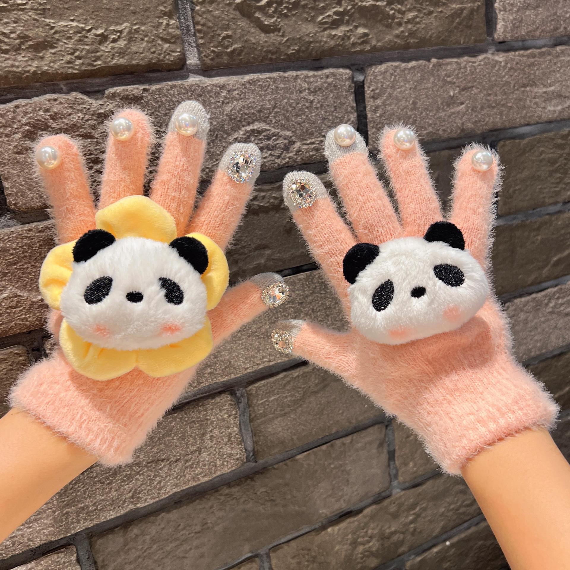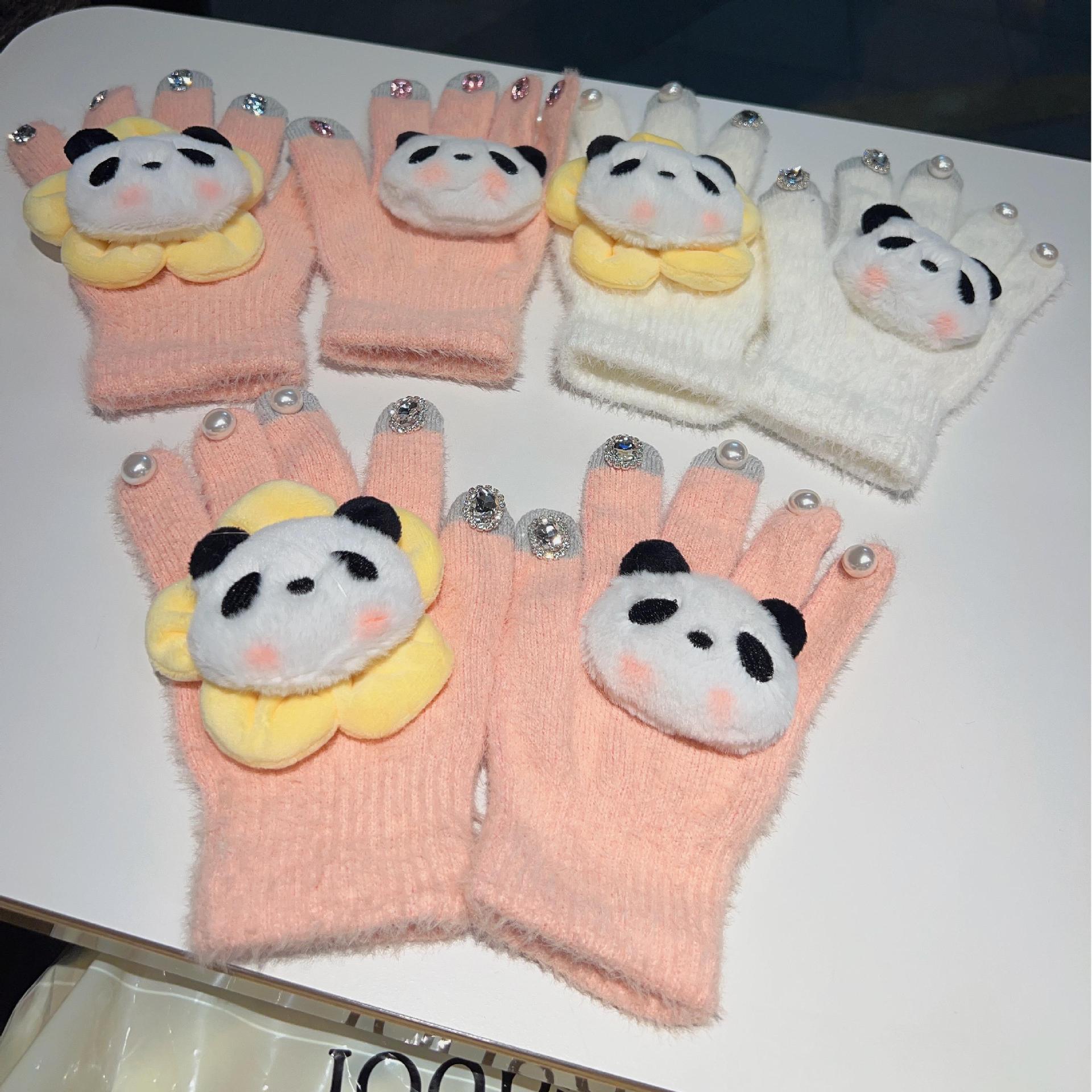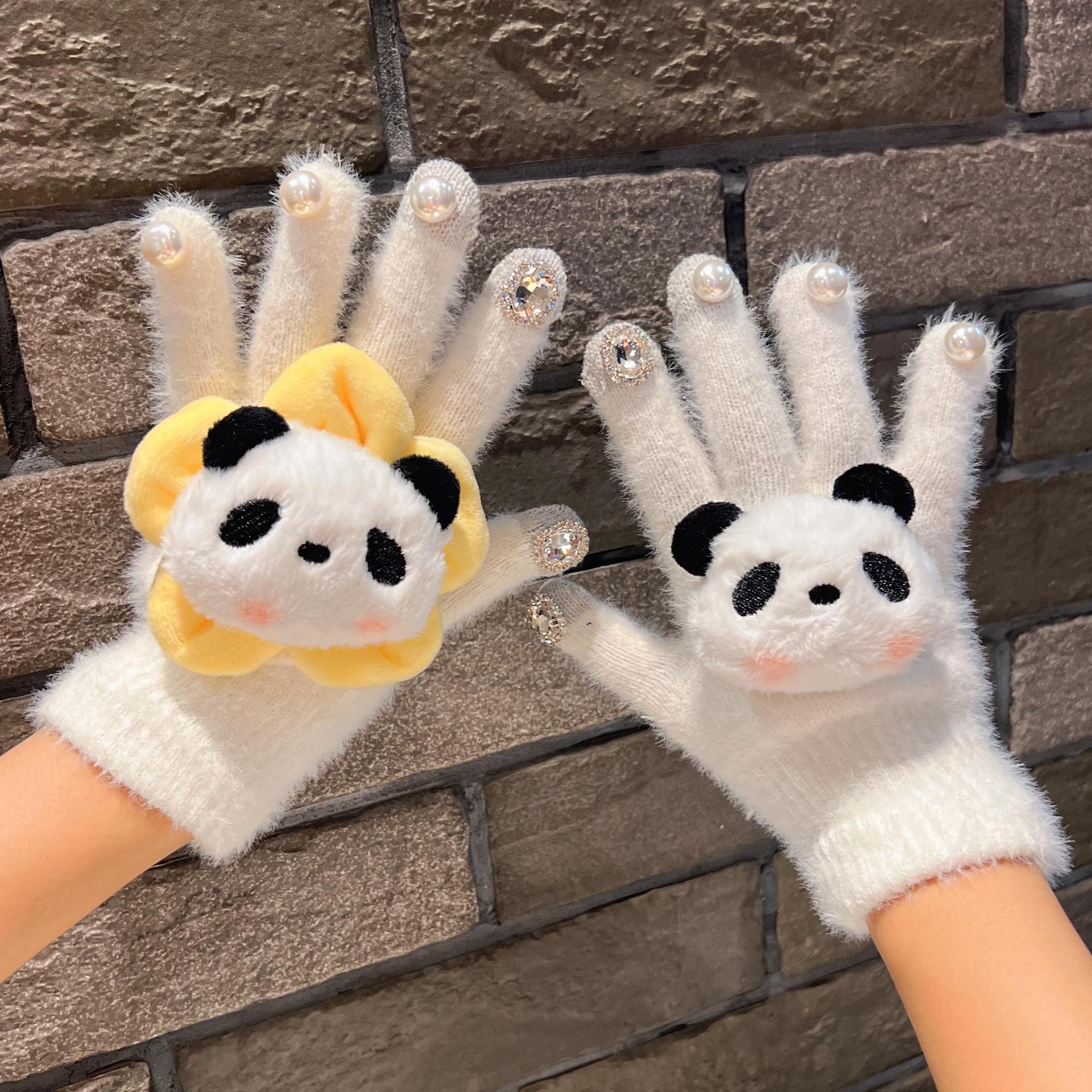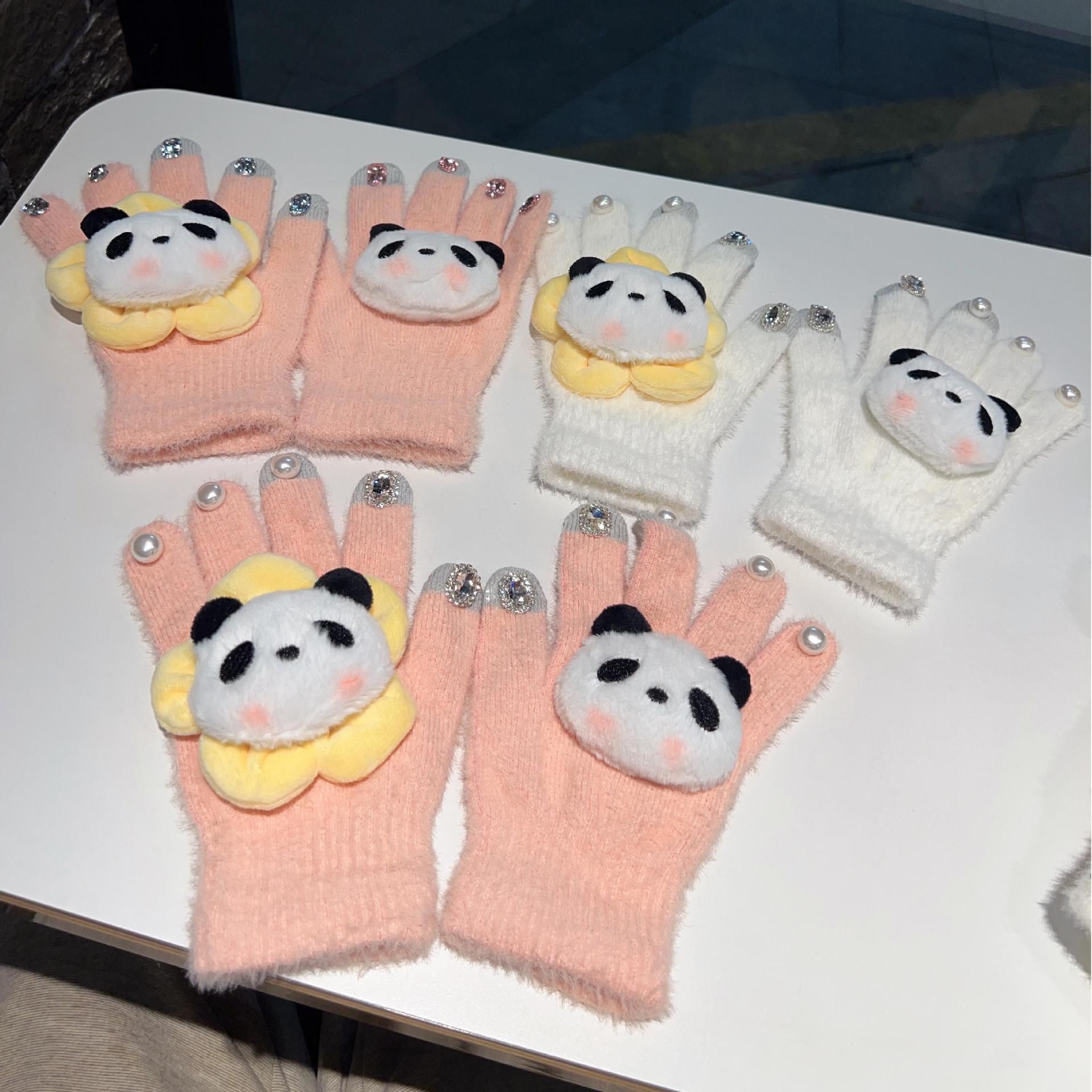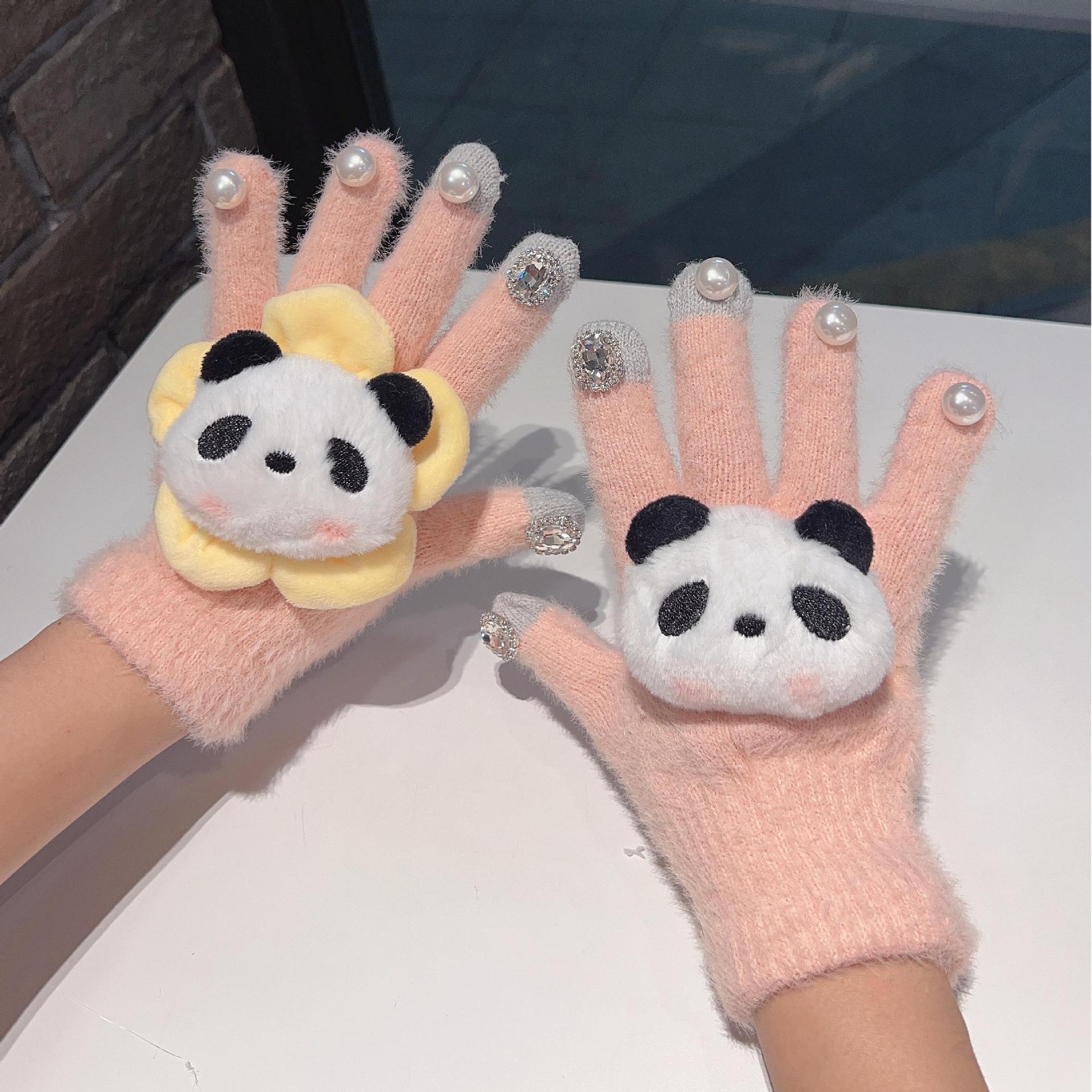 수줍은 팬더 · 원래 수제 귀여운 소녀의 심장 따뜻한 장갑 여성의 가을과 겨울 승마 장갑 올 매치