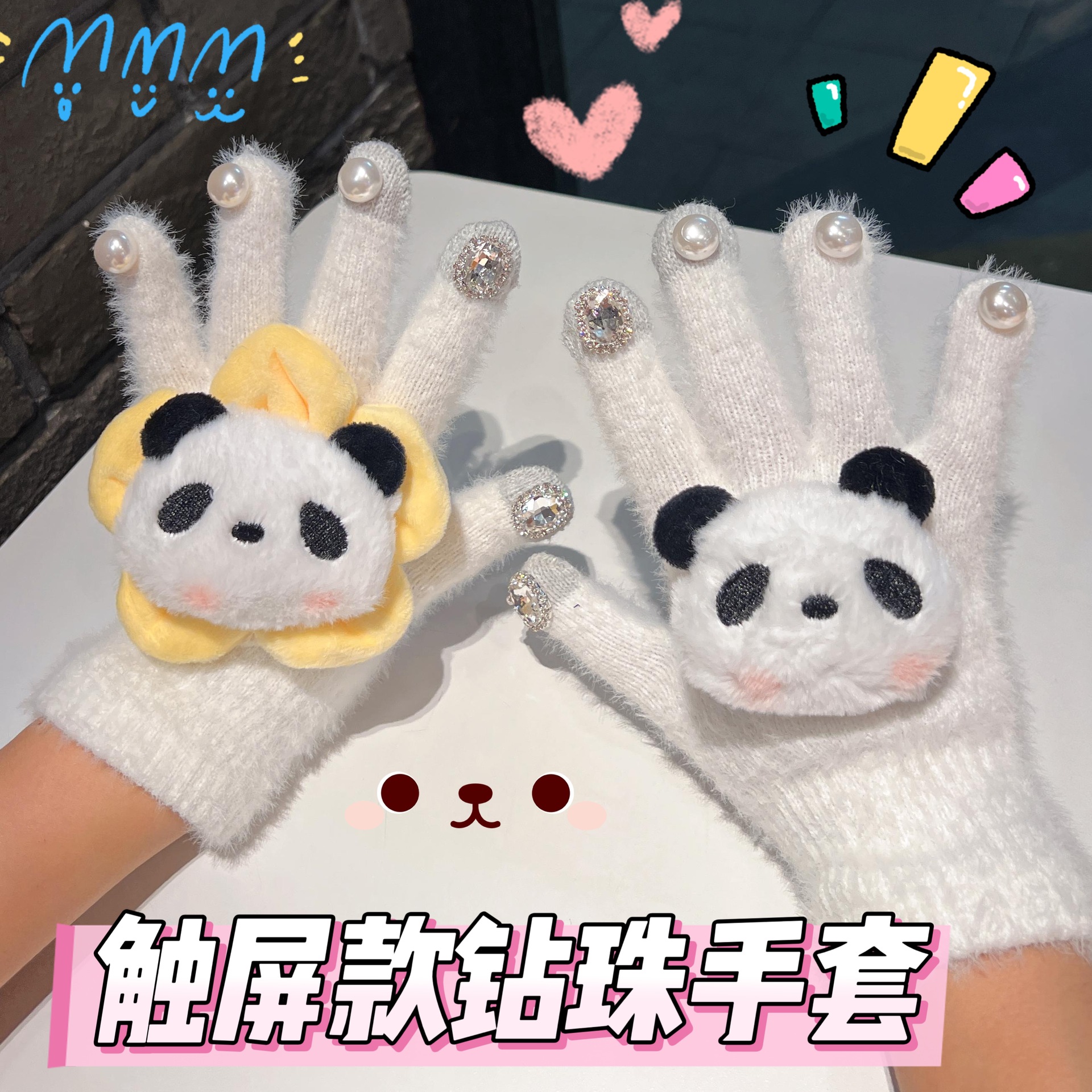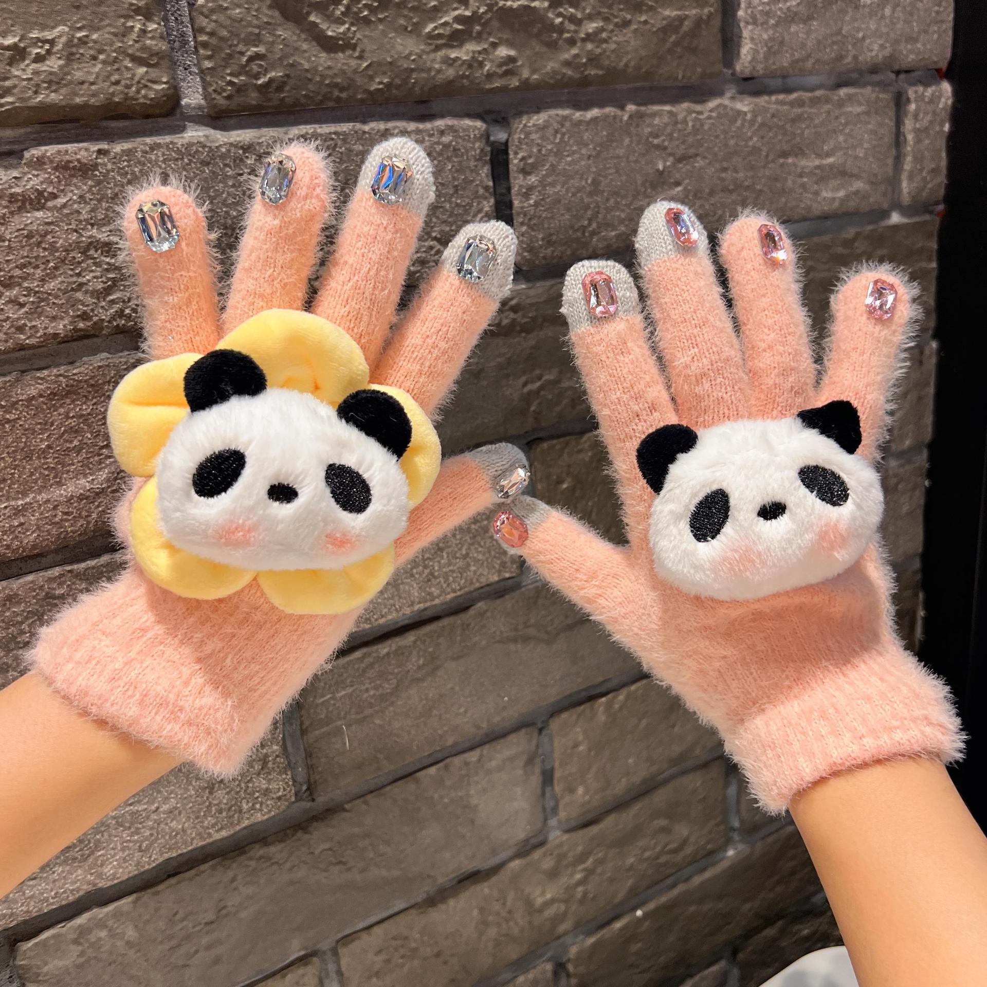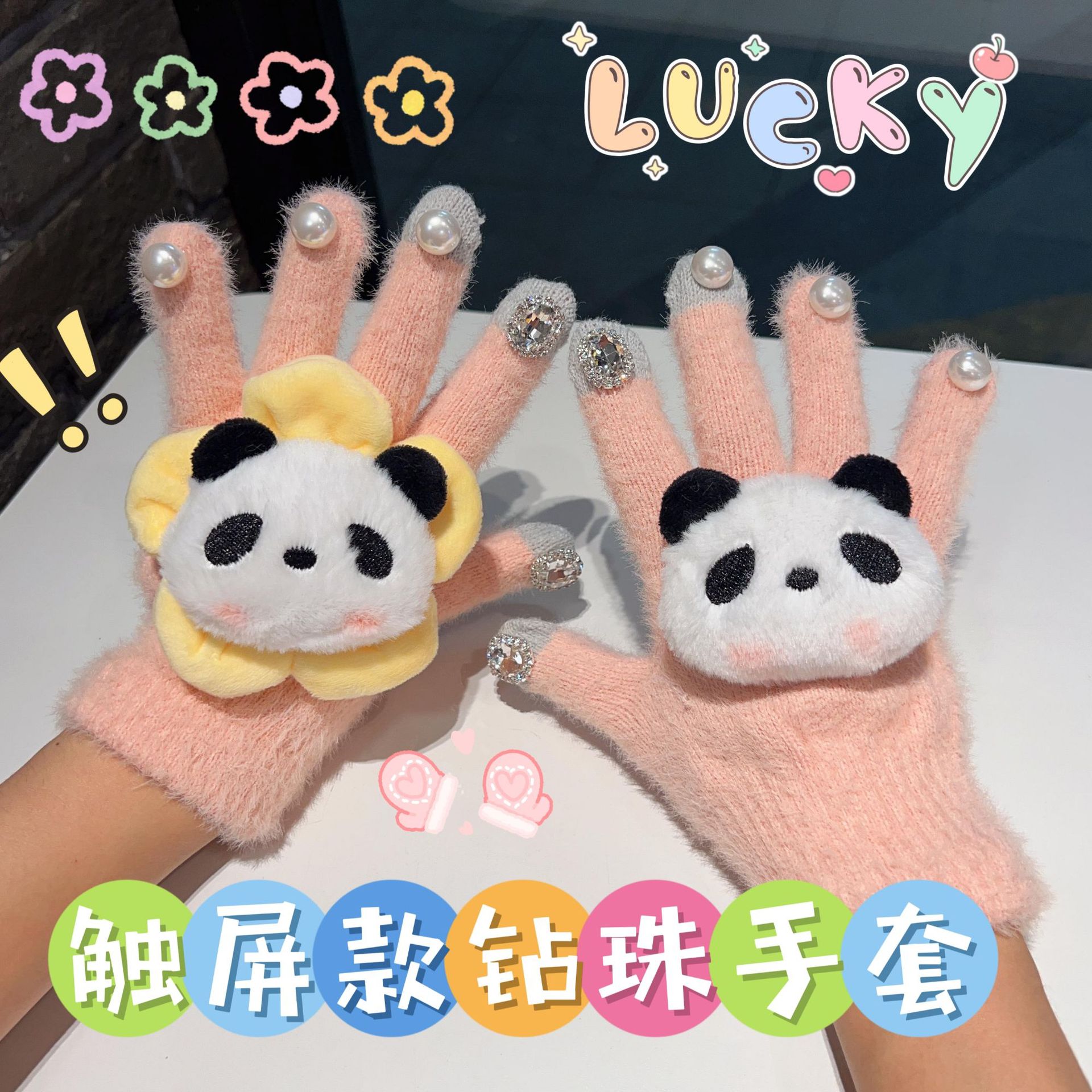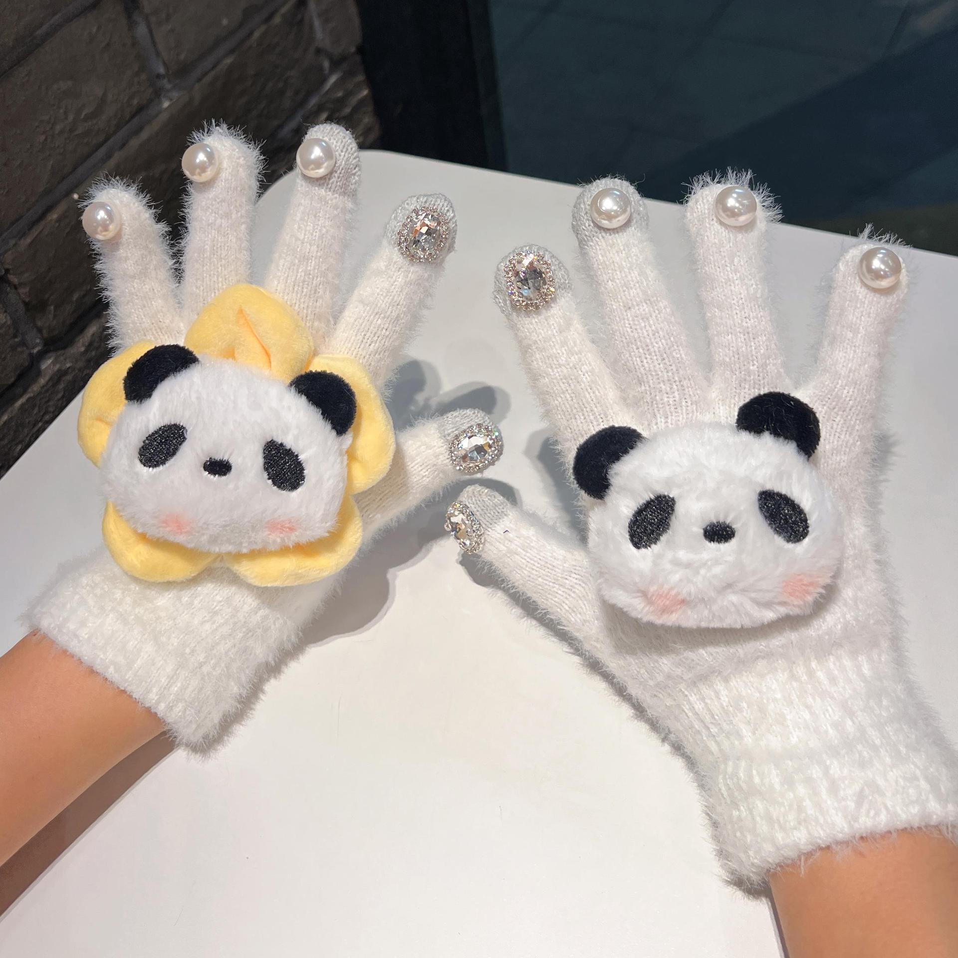수줍은 팬더 · 원래 수제 귀여운 소녀의 심장 따뜻한 장갑 여성의 가을과 겨울 승마 장갑 올 매치