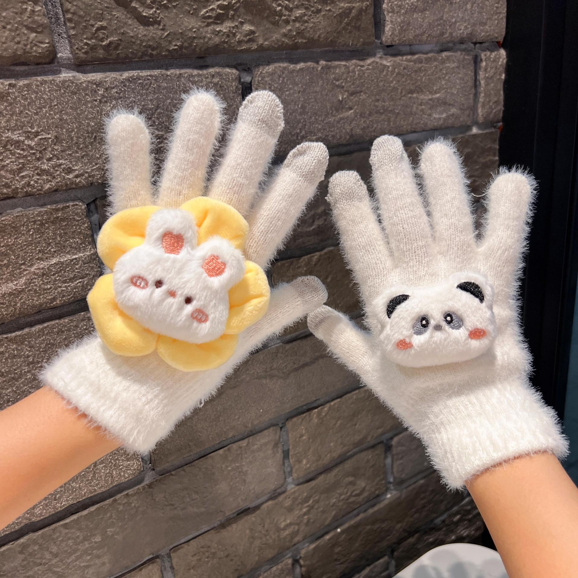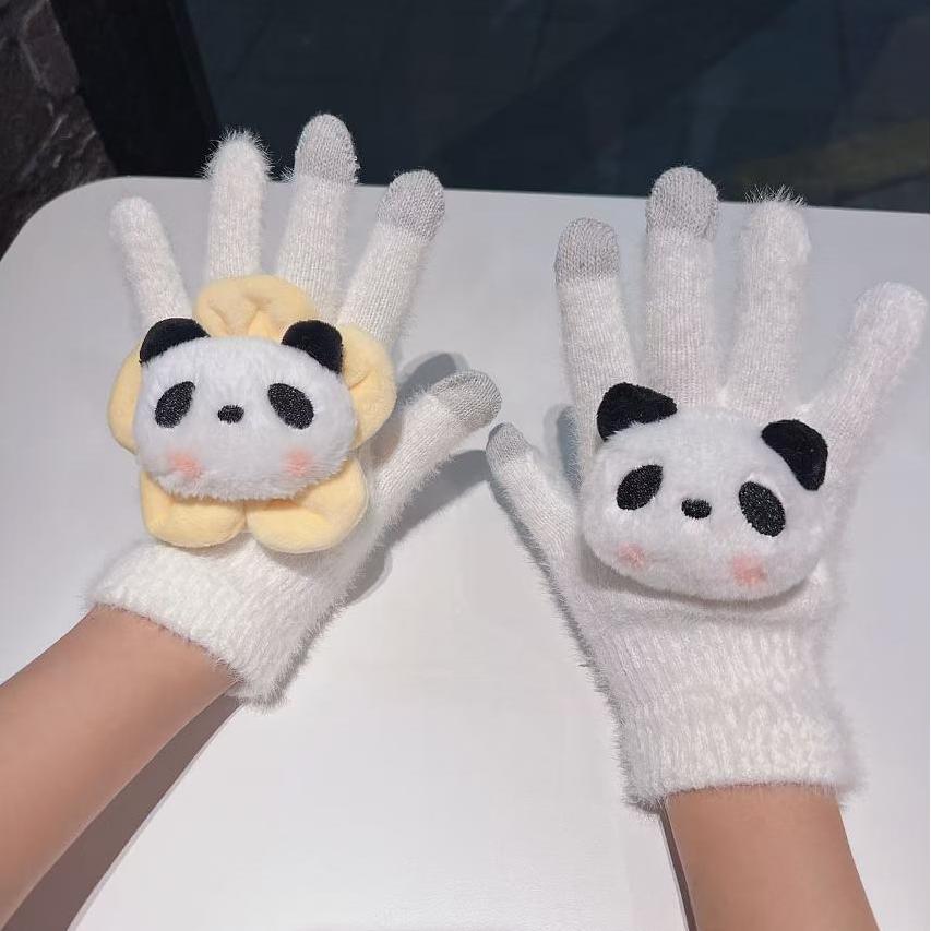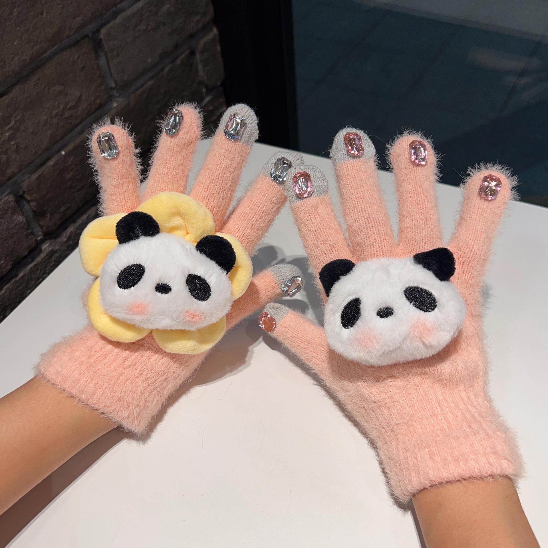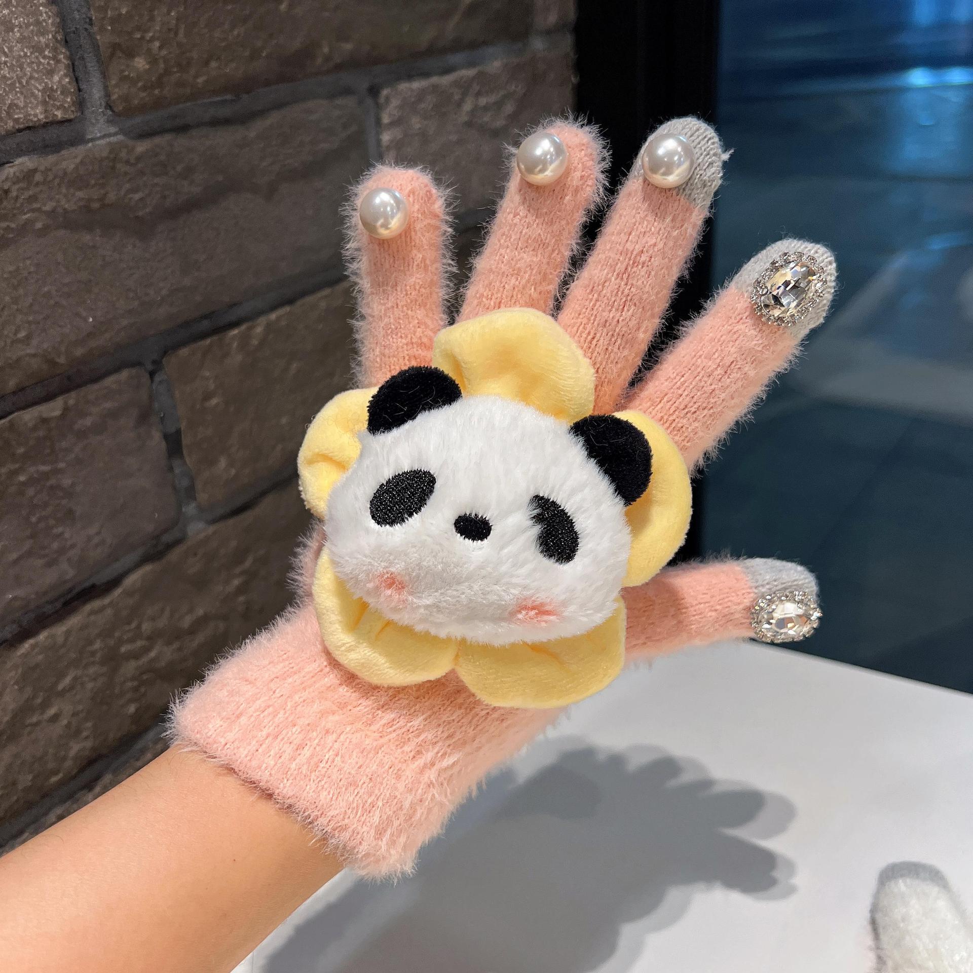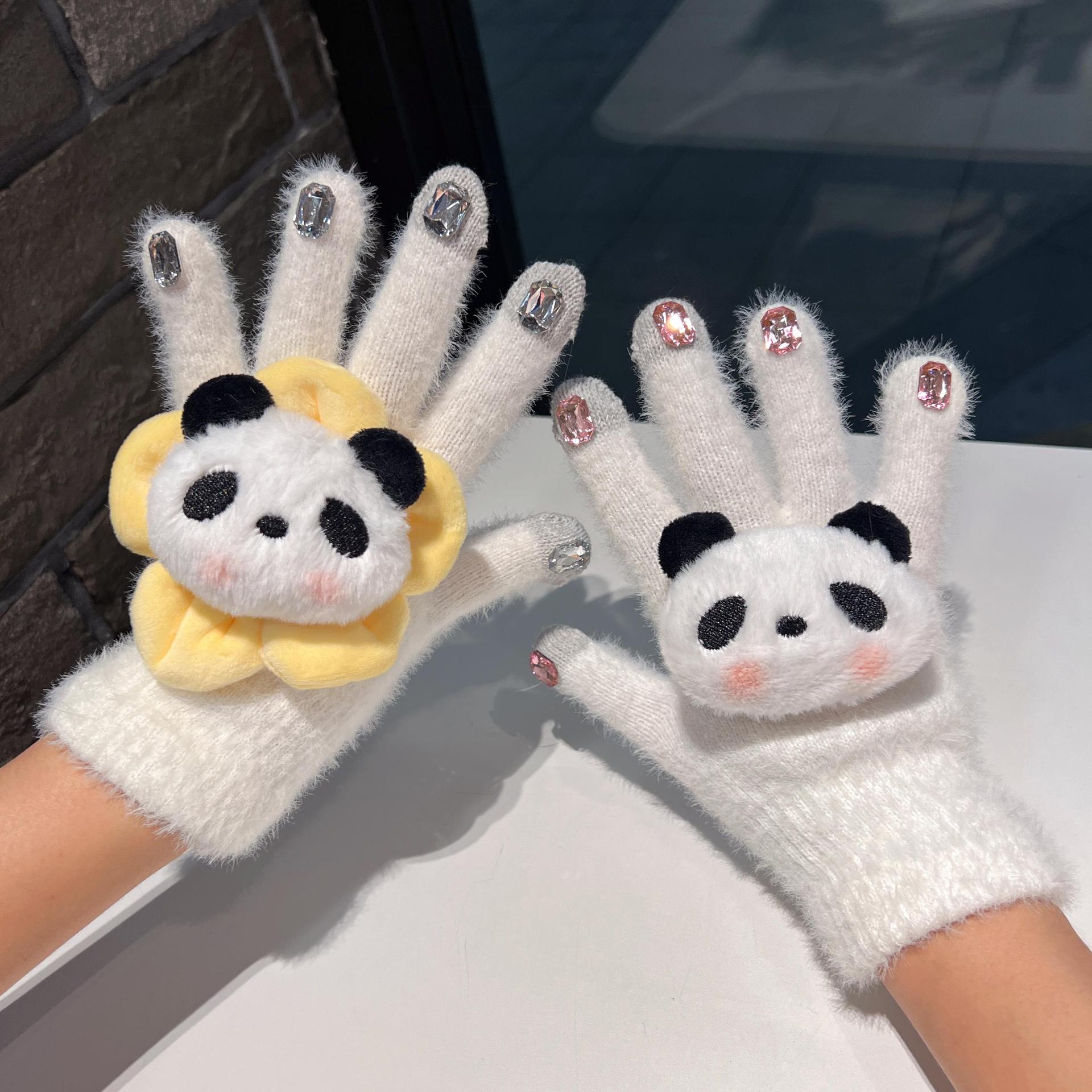 수줍은 팬더 · 원래 수제 귀여운 소녀의 심장 따뜻한 장갑 여성의 가을과 겨울 승마 장갑 올 매치
