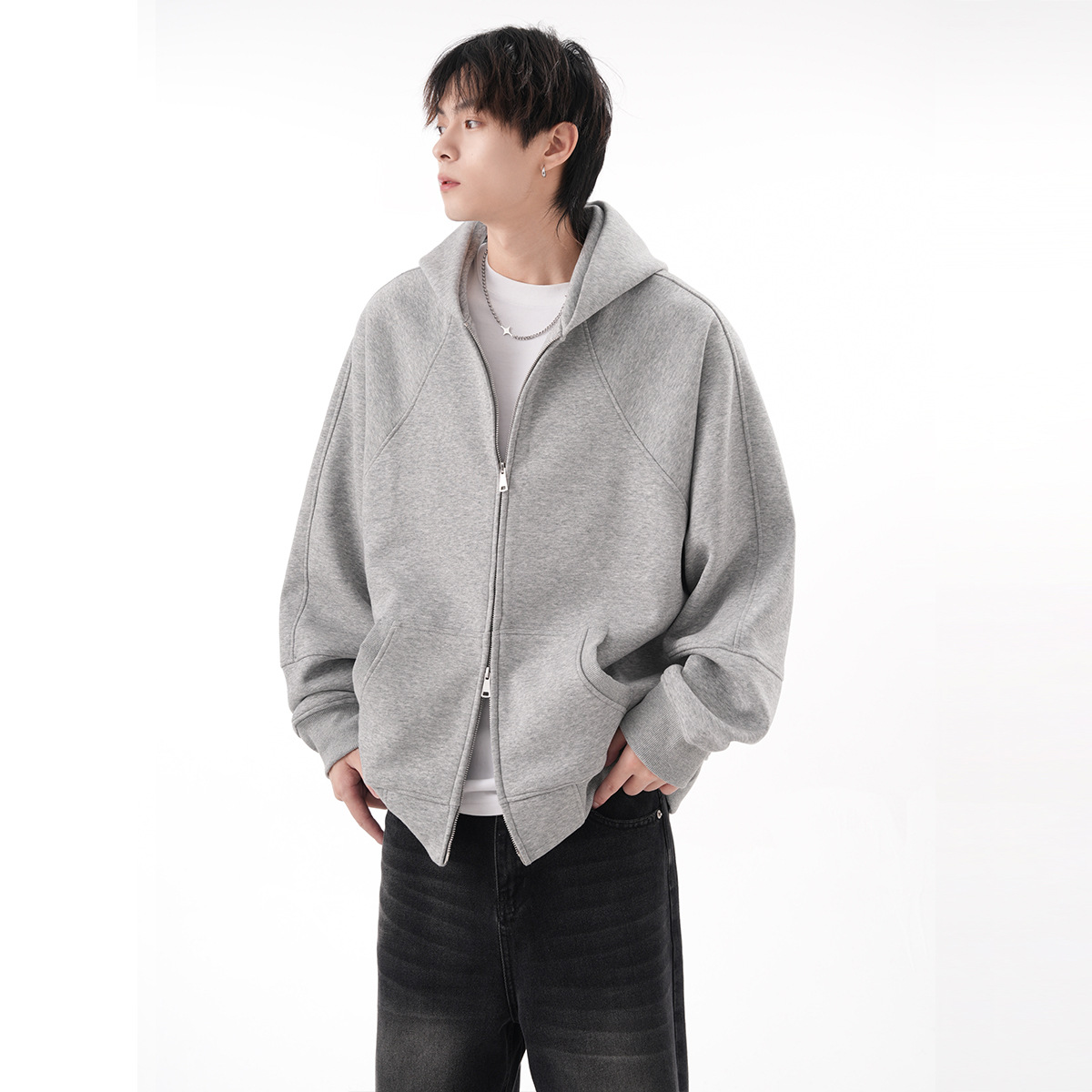 400g 무거운 3 차원 테일러링 카디건 스웨터 남성 가을과 겨울 클렌핏 조수 브랜드 느슨한 단색 캐주얼 코트