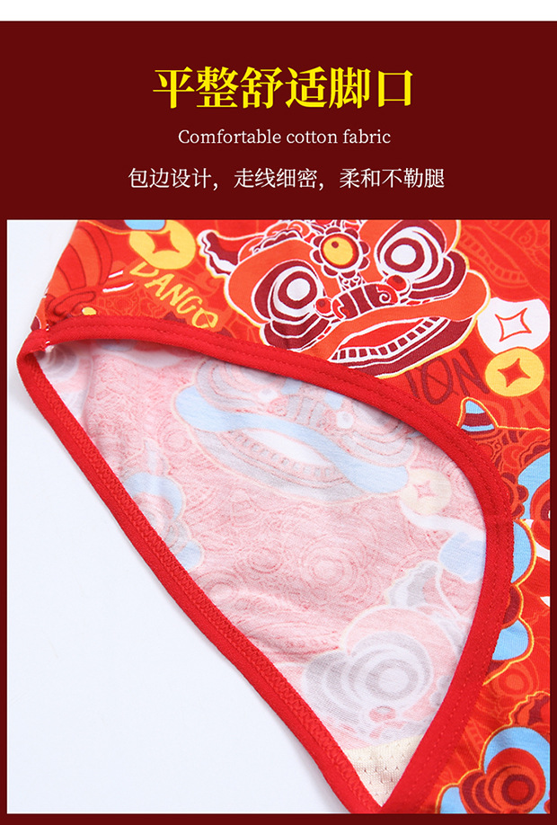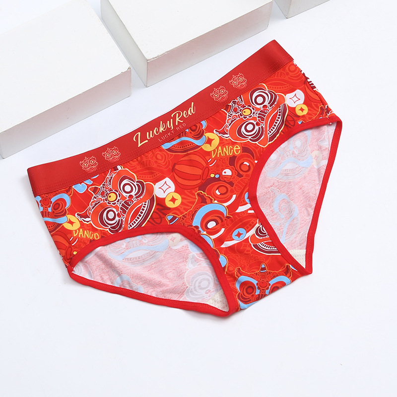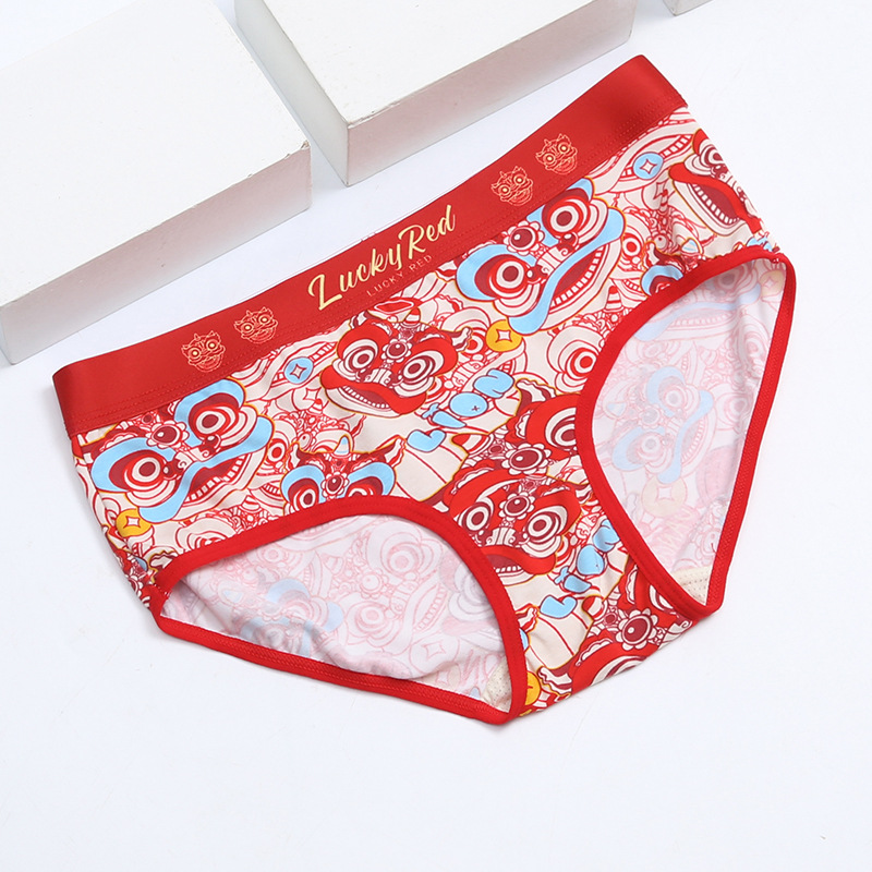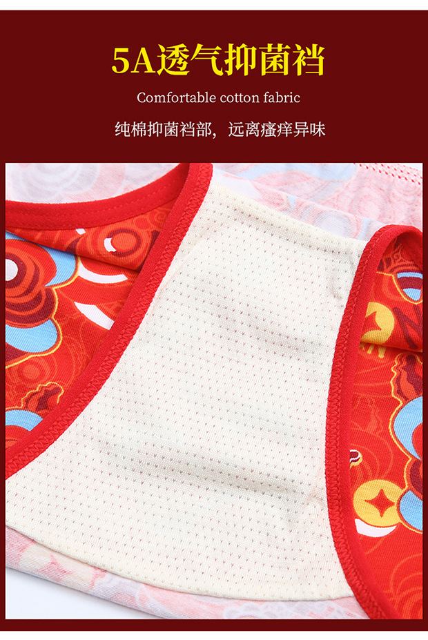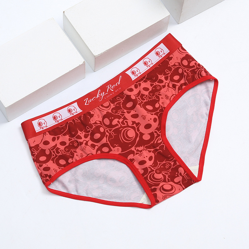 2025년 신상 여성용 순면 빨간색 팬티, 삼각형 및 사각형 프린트, 중간 허리, 중국풍 팬티스토어 가기