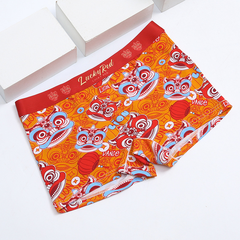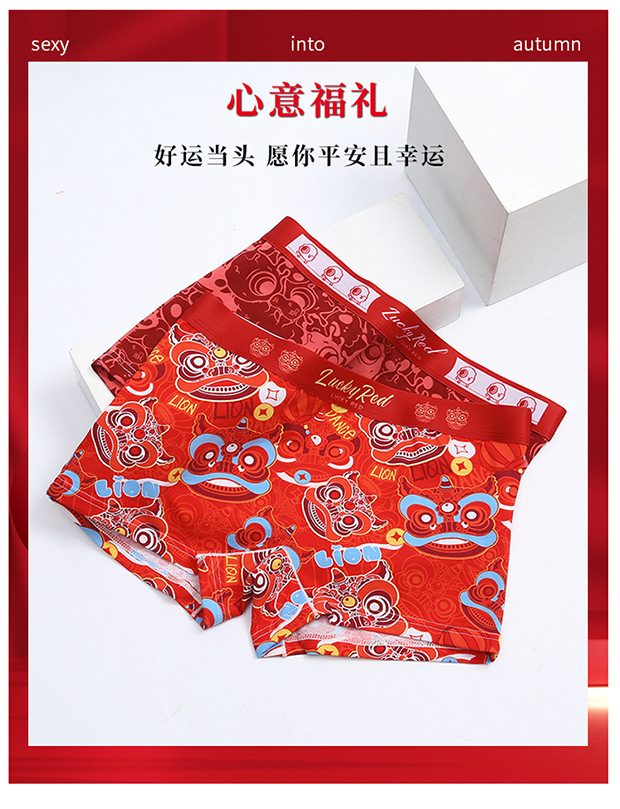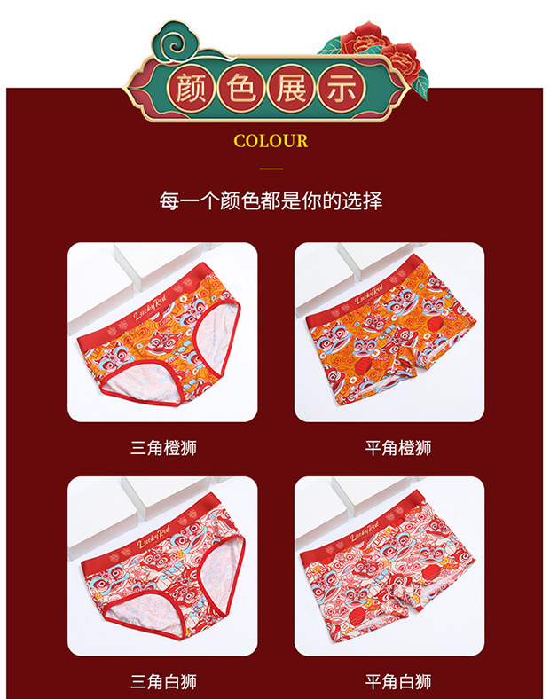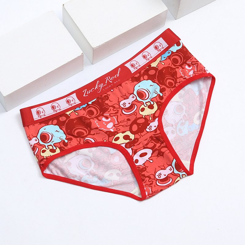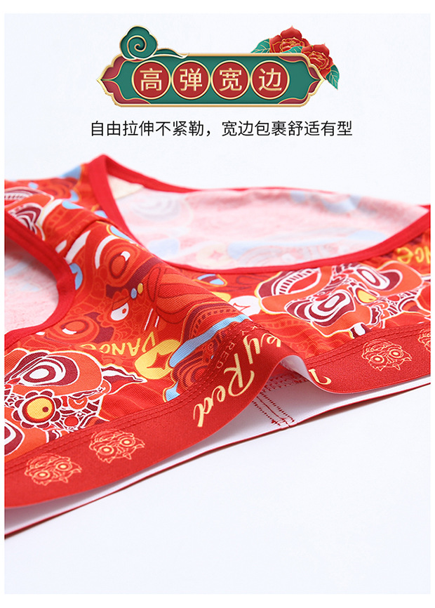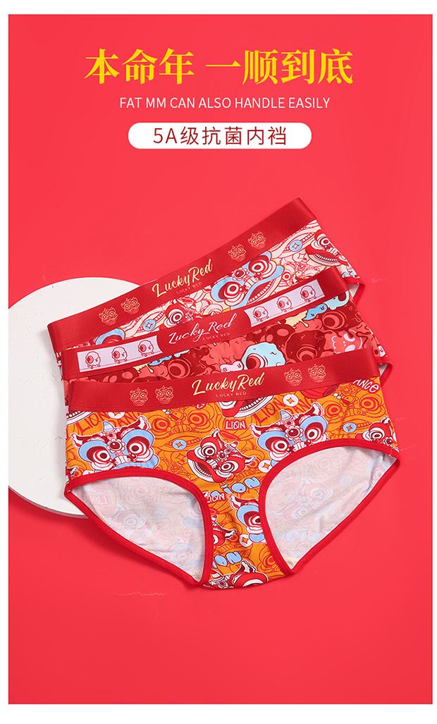 2025년 신상 여성용 순면 빨간색 팬티, 삼각형 및 사각형 프린트, 중간 허리, 중국풍 팬티스토어 가기