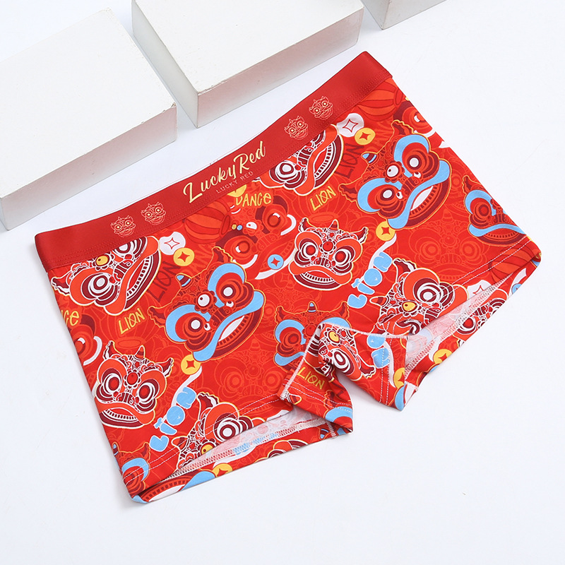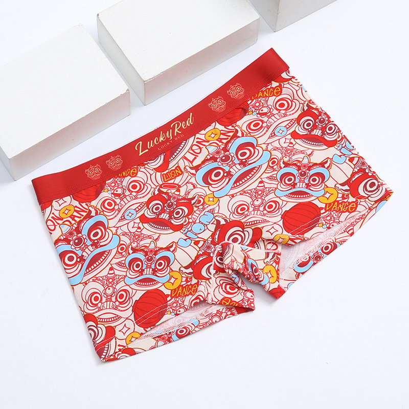 2025년 신상 여성용 순면 빨간색 팬티, 삼각형 및 사각형 프린트, 중간 허리, 중국풍 팬티