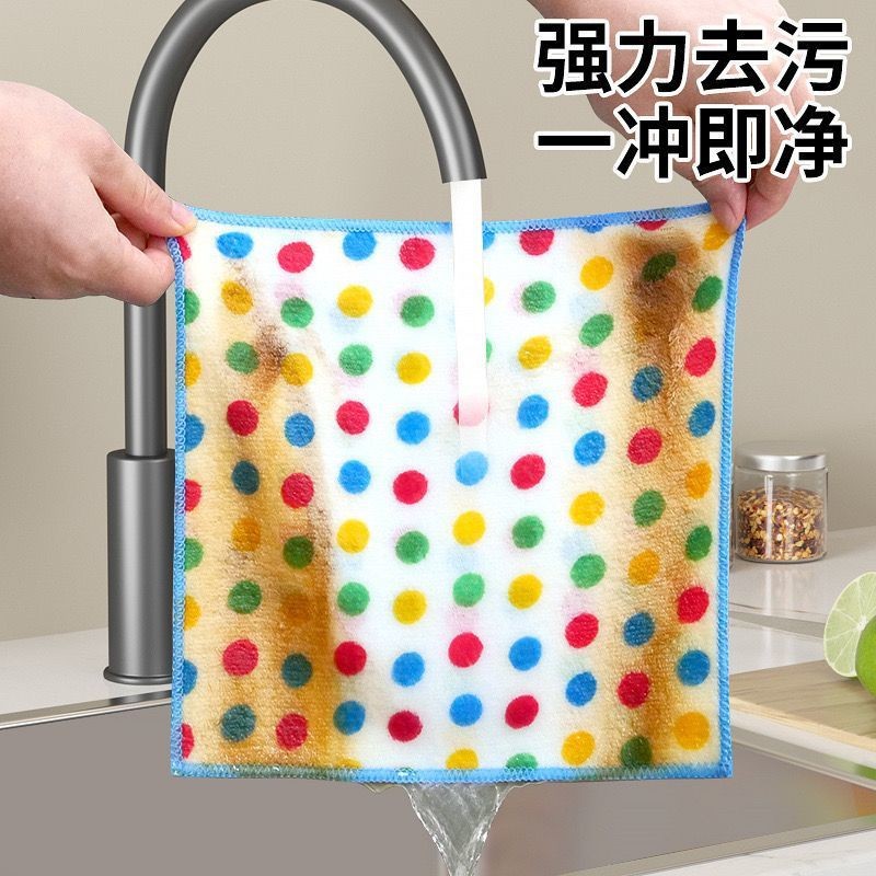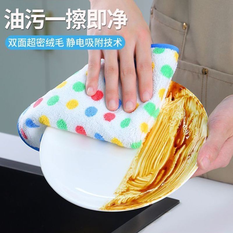 컬러 폴카 도트 헝겊 산호 양털 주방 식당 청소 양면 두꺼운 닦아 테이블 흡수성 세탁 천