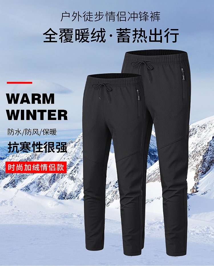 가을과 겨울 기모 두꺼운 등산 바지 방풍 방수 따뜻한 러시 바지 남자 하이 엔드 야외 커플 여행 바지