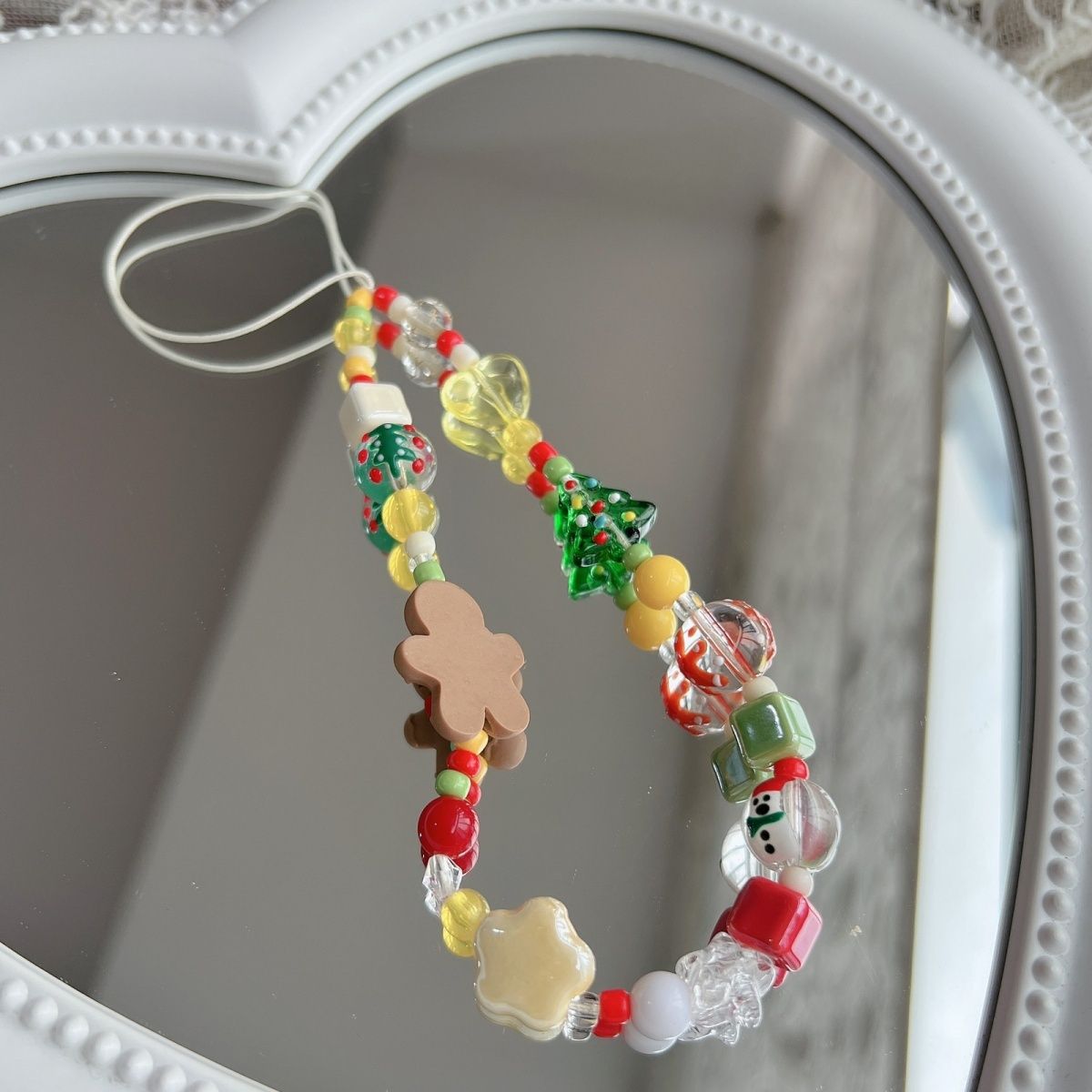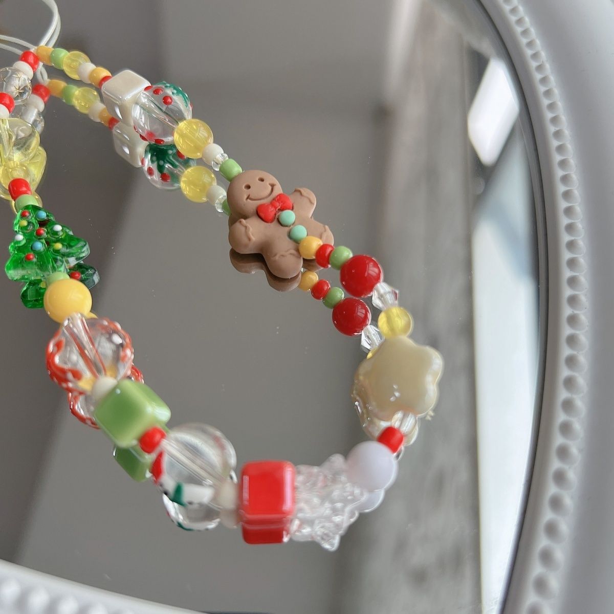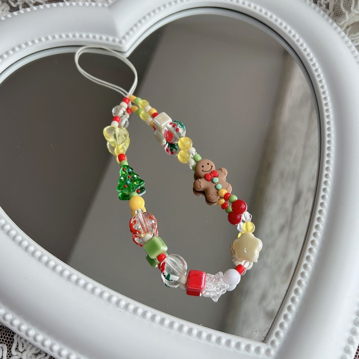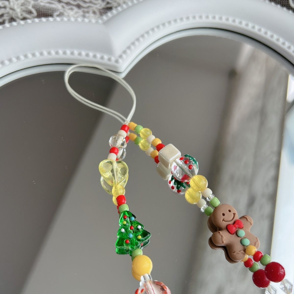 크리스마스 만화 진저 브레드 남자 휴대 전화 체인 ccd 끈 펜던트 귀여운 구슬 diy 카메라 펜던트 체인 펜던트스토어 가기