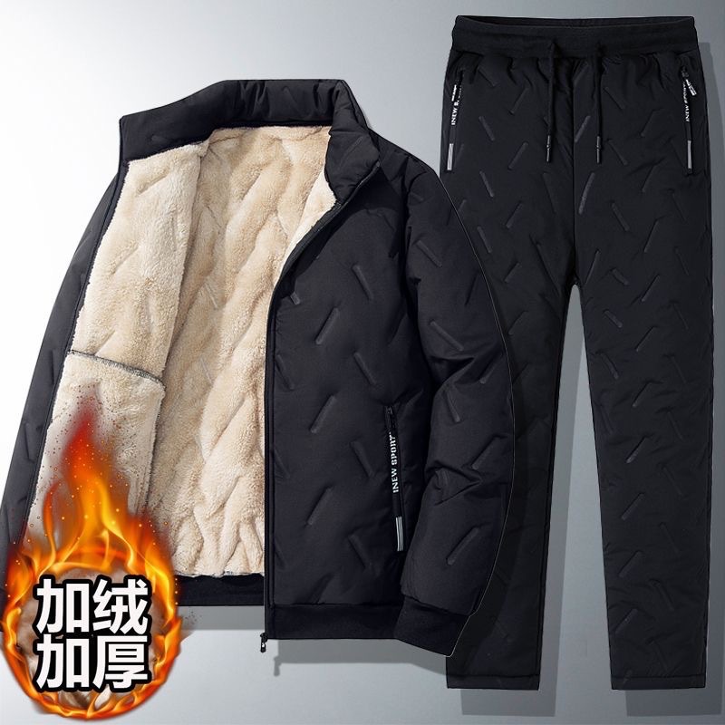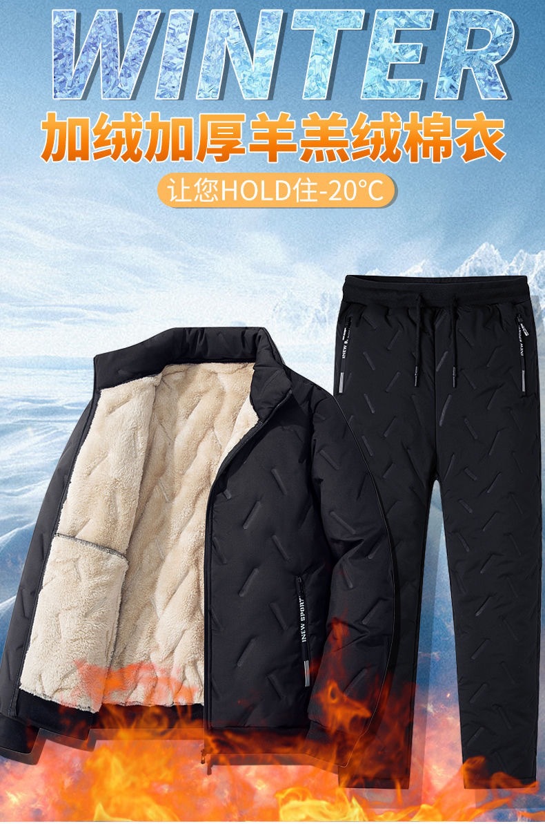기모 두꺼운 아빠 코트 남자 겨울 면화 패딩 재킷 양고기 양털은 중년 및 노인 세트 용 면화 패딩 자켓 면화 패딩 바지