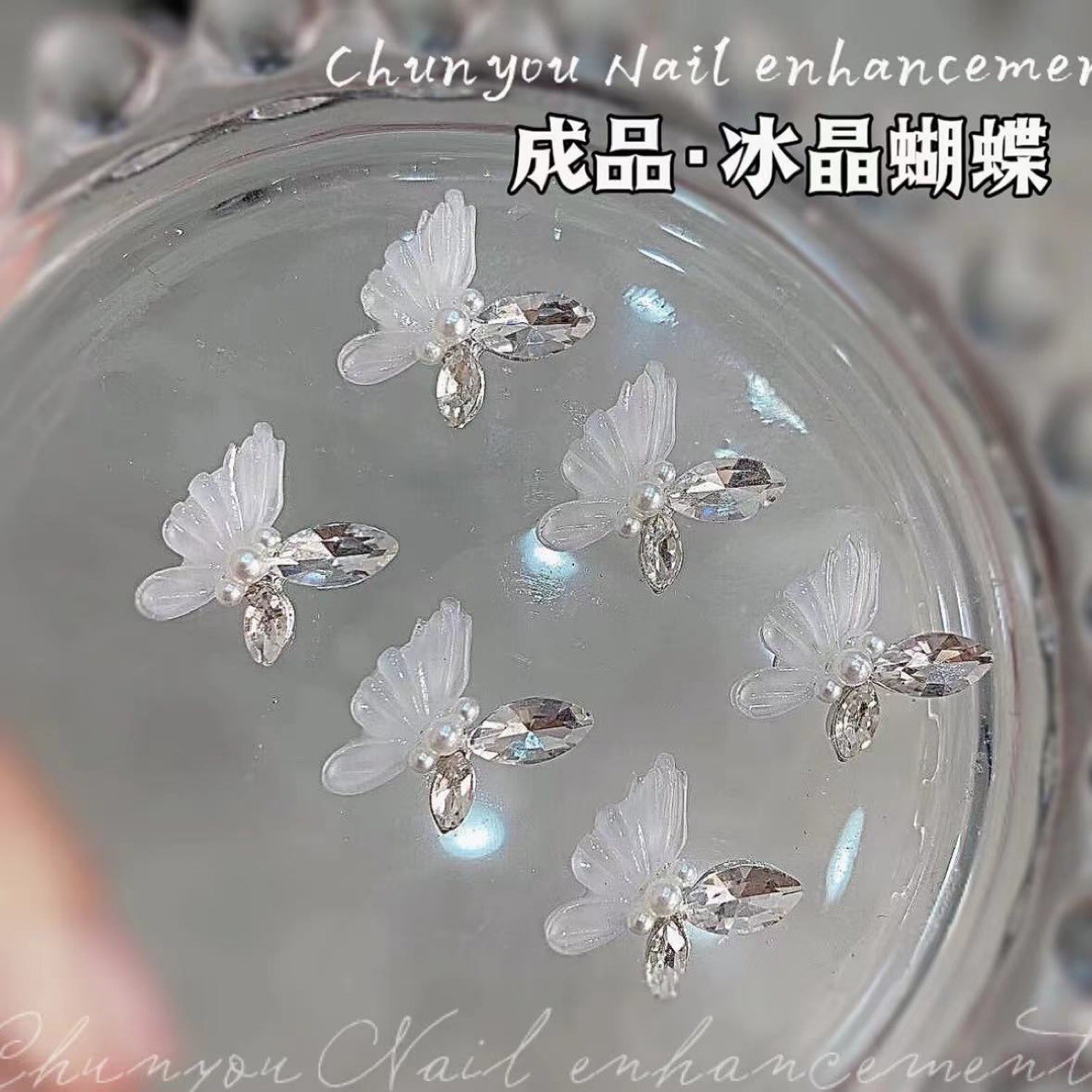 새로운 수제 완성 된 아이스 크리스탈 나비 매니큐어 다이아몬드 일본 크리스탈 날개 말 눈 빛나는 네일 쥬얼리스토어 가기