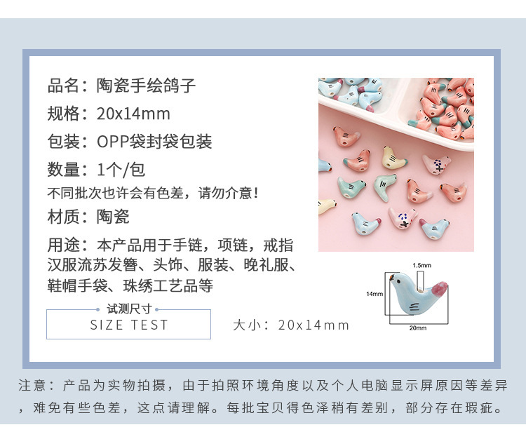 귀여운 세라믹 손으로 그린 비둘기 비즈 흩어진 비즈 DIY 수제 보석 액세서리 구슬 팔찌 목걸이 소재 만들기스토어 가기