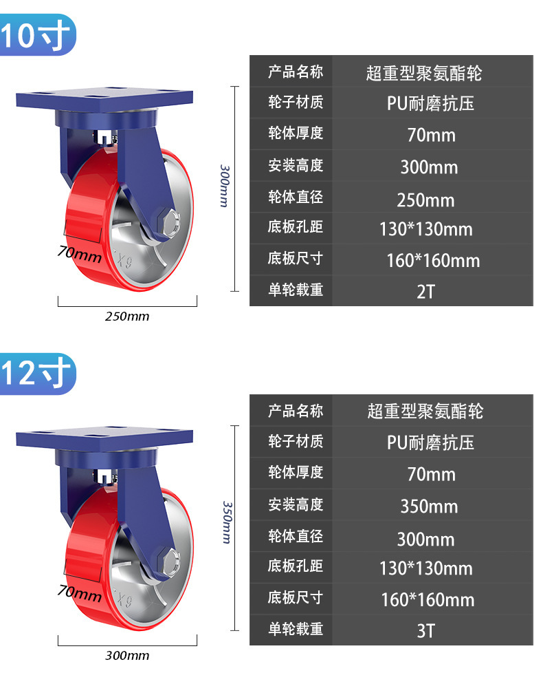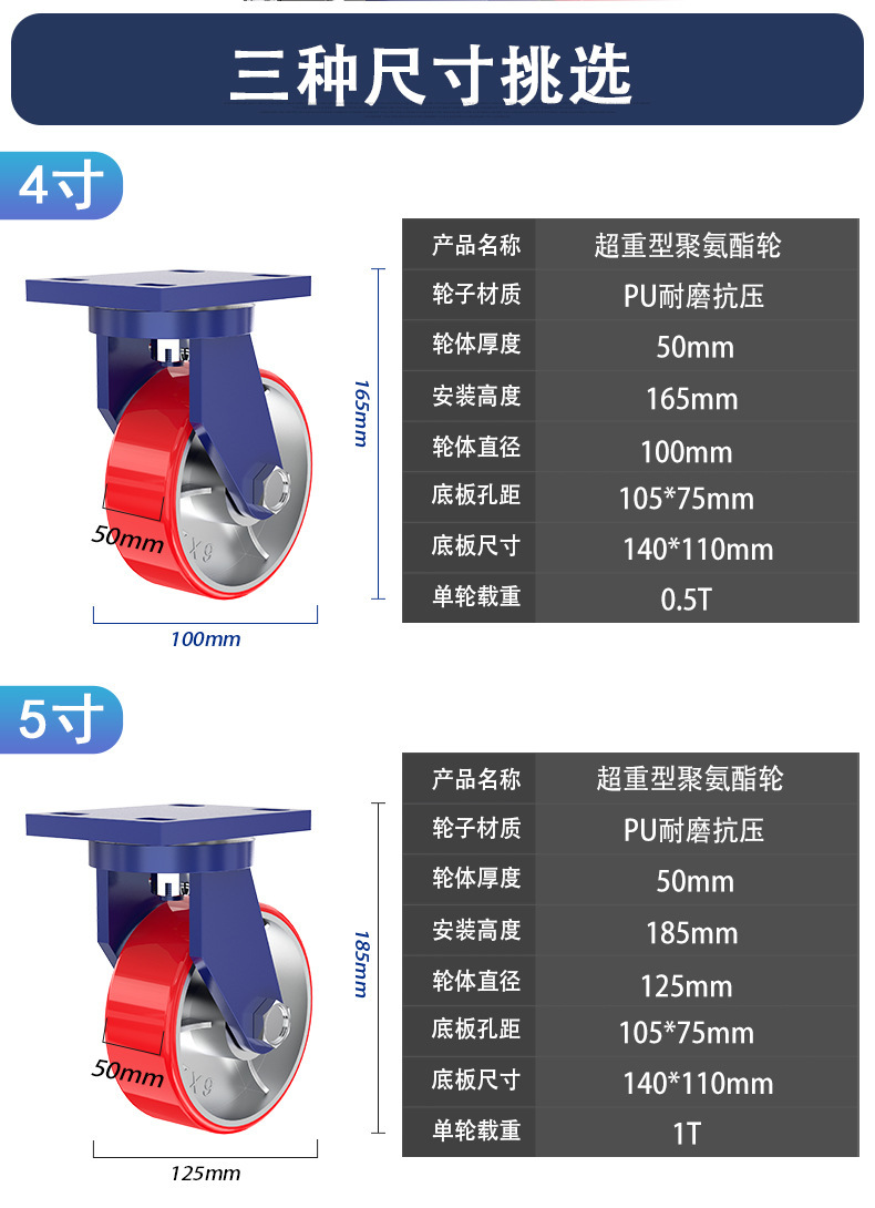 슈퍼 무거운 유니버설 휠 4 인치 5 인치 6 인치 8 인치 10 인치 12 인치 아이언 코어 폴리 우레탄 캐스터 로드 1-5 톤 휠스토어 가기