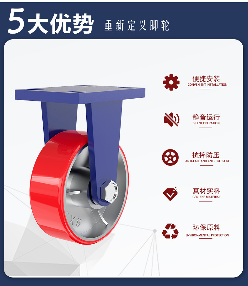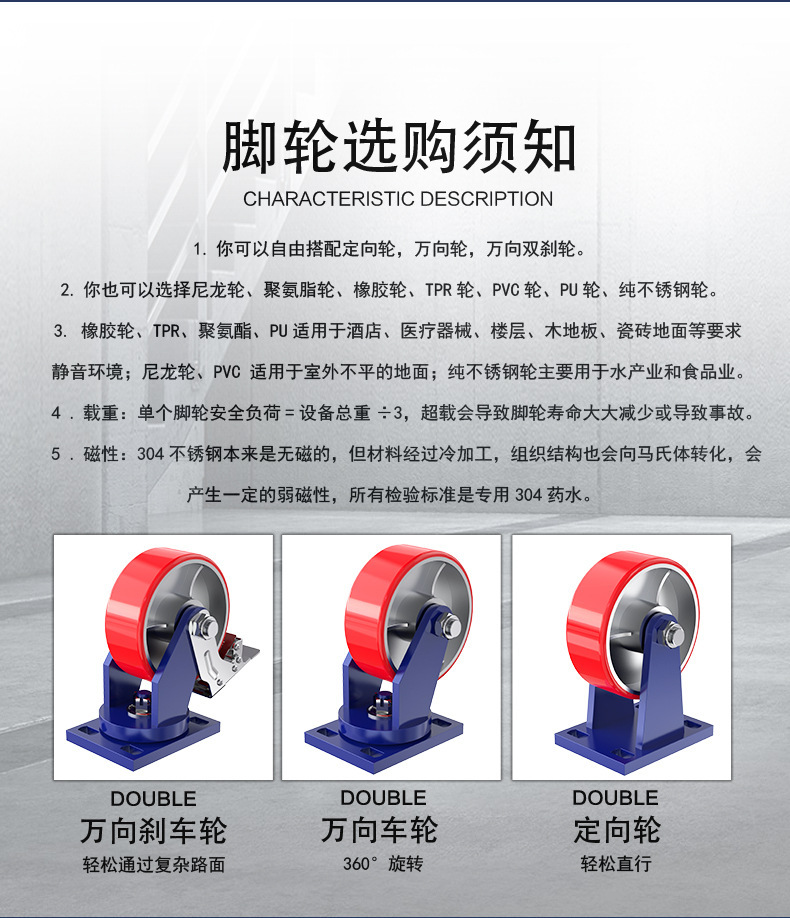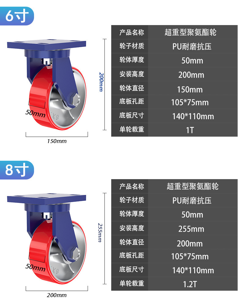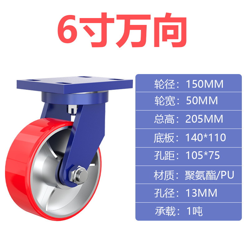 슈퍼 무거운 유니버설 휠 4 인치 5 인치 6 인치 8 인치 10 인치 12 인치 아이언 코어 폴리 우레탄 캐스터 로드 1-5 톤 휠