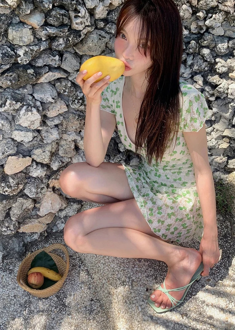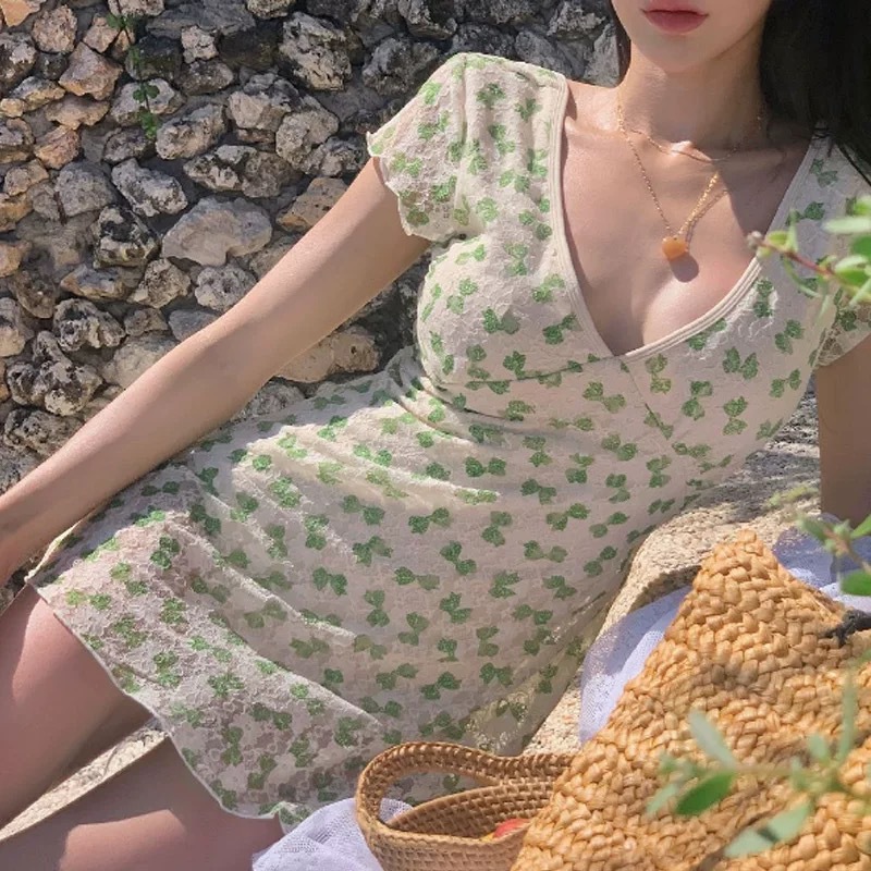 한국 뉴 플로랄 프렌치 V 넥 원피스 스커트 수영복 여성 하이 엔드 육식 슬리밍 수영복 여신 스타일스토어 가기