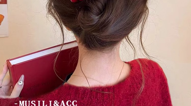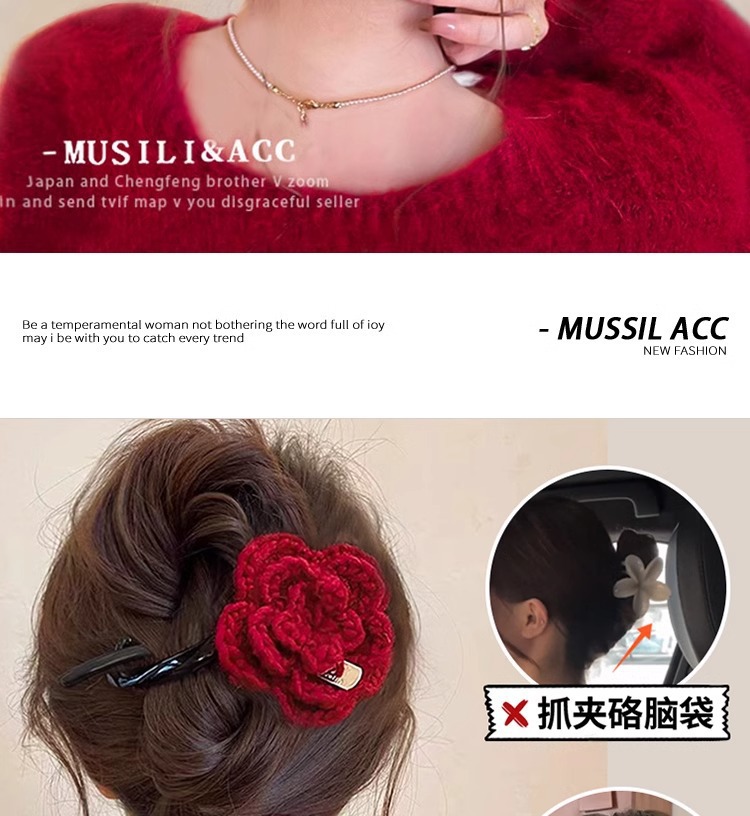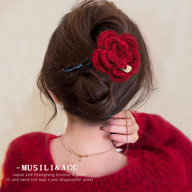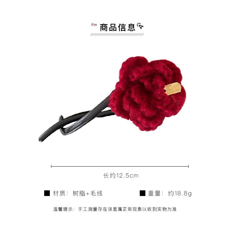 • 레드 니트 플라워 트위스트 클립-12.5cm