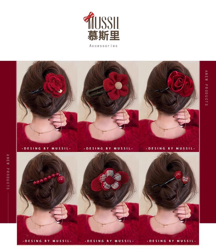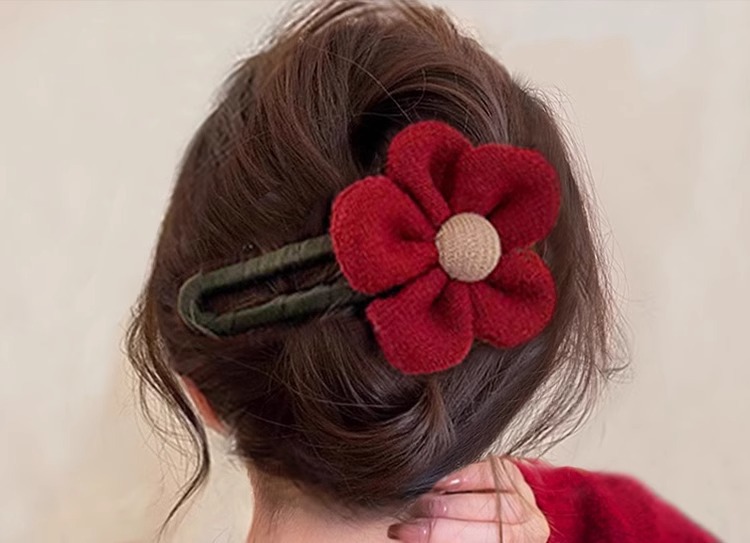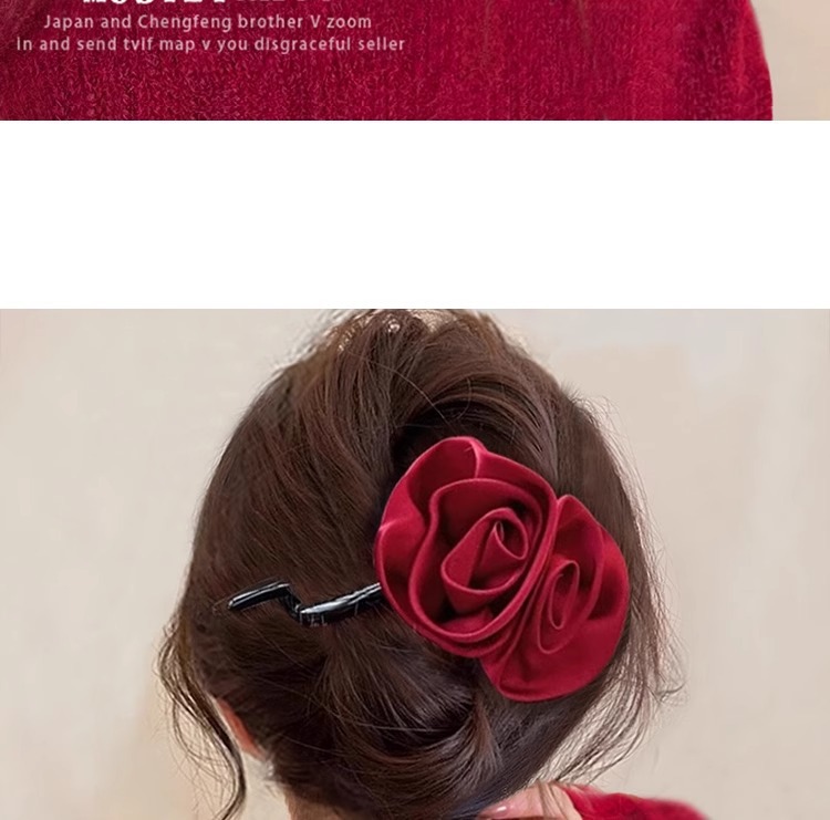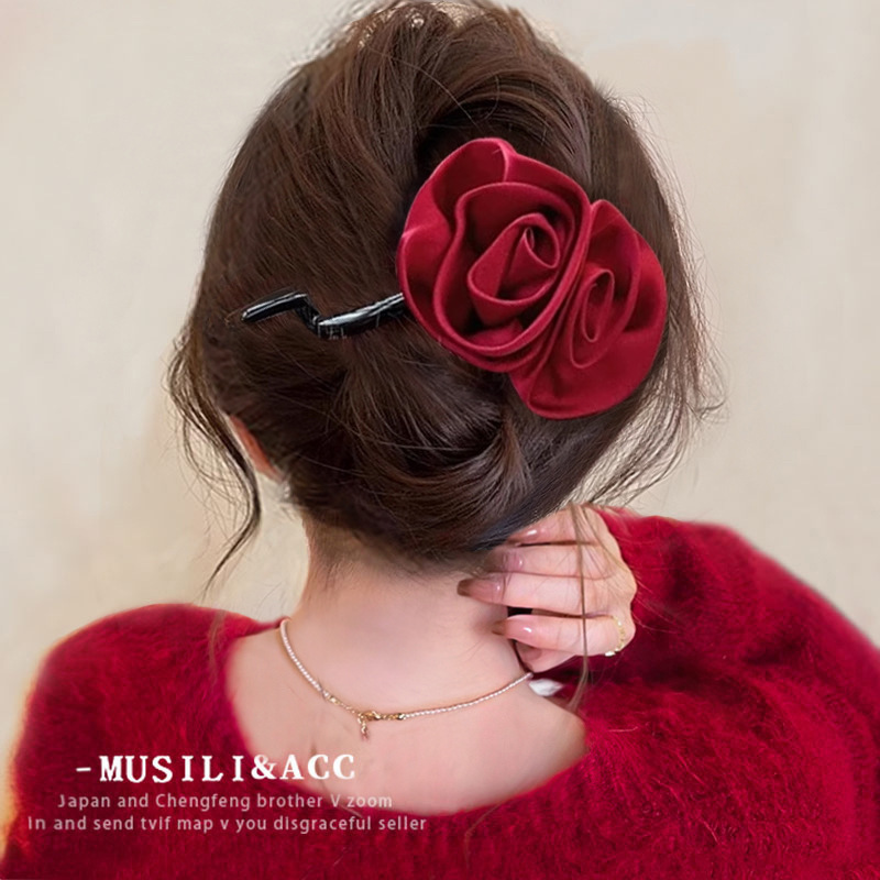 • 레드 빈티지 장미 꽃 트위스트 클립-10.7cm