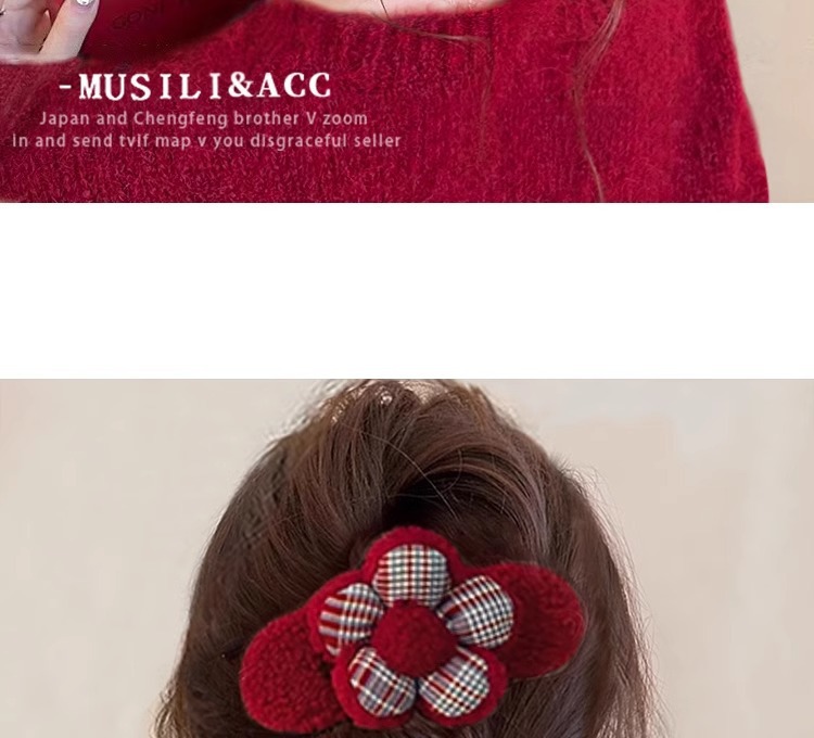 • 레드 플러시 플라워 덕빌 클립-11cm