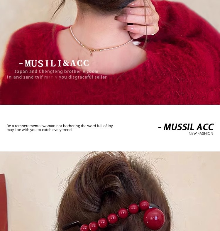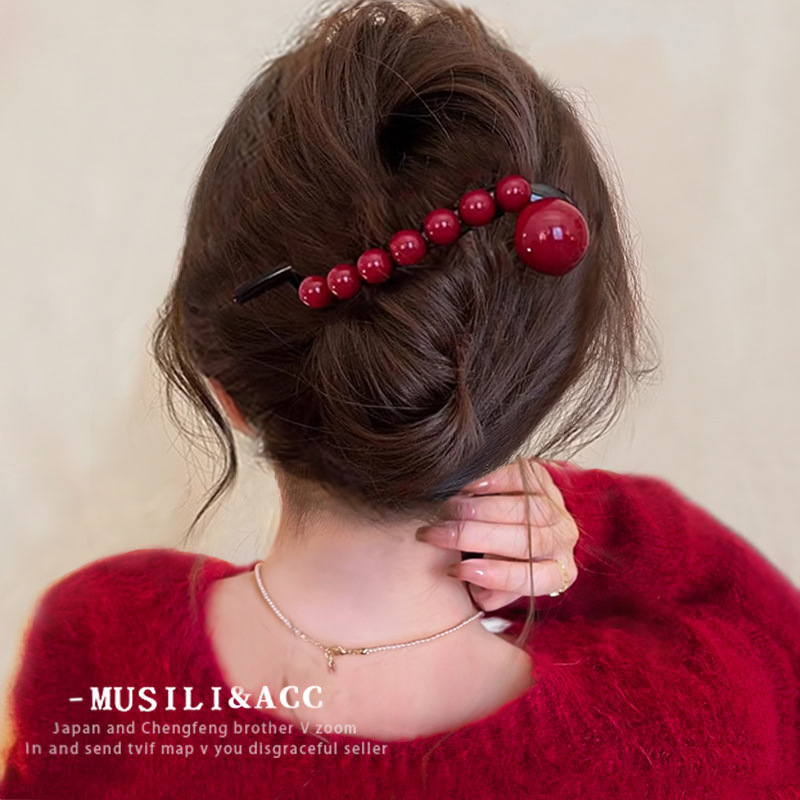 • 앙콜라 레드비즈 트위스트 클립-10.5cm