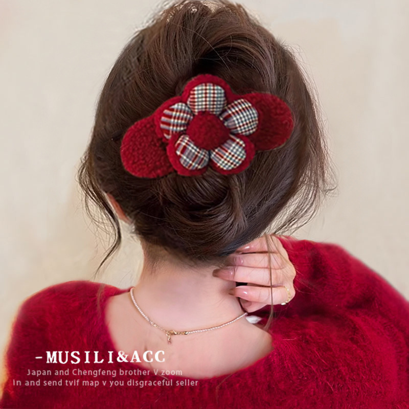 가을과 겨울 한국 스타일 큰 꽃 헤어 클립 여성의 하이 엔드 센스 머리 뒷면 디스크 헤어 그랩 클립 모리 스타일 패브릭 덕빌 클립 헤드웨어스토어 가기