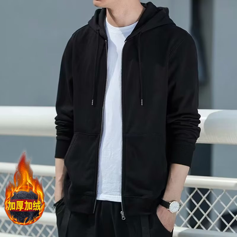 솔리드 컬러 기모 지퍼 카디건 재킷 남자의 간단한 작업 착용 후드 느슨한 후드 캐주얼 후드 외부 착용 탑스토어 가기