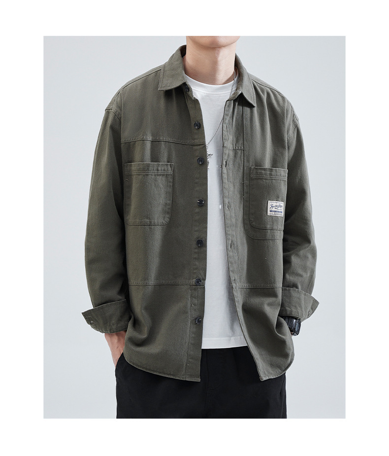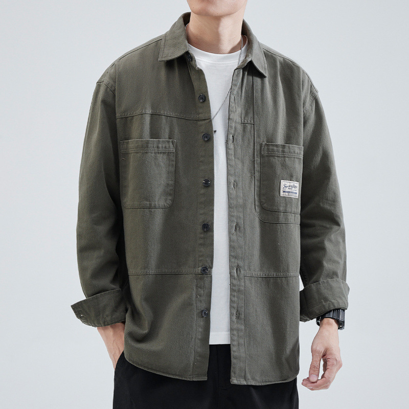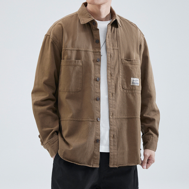 한스카 툴링 셔츠 재킷 남자 2025 년 봄과 가을 일본 스타일 느슨한 캐주얼 긴팔 셔츠 남자