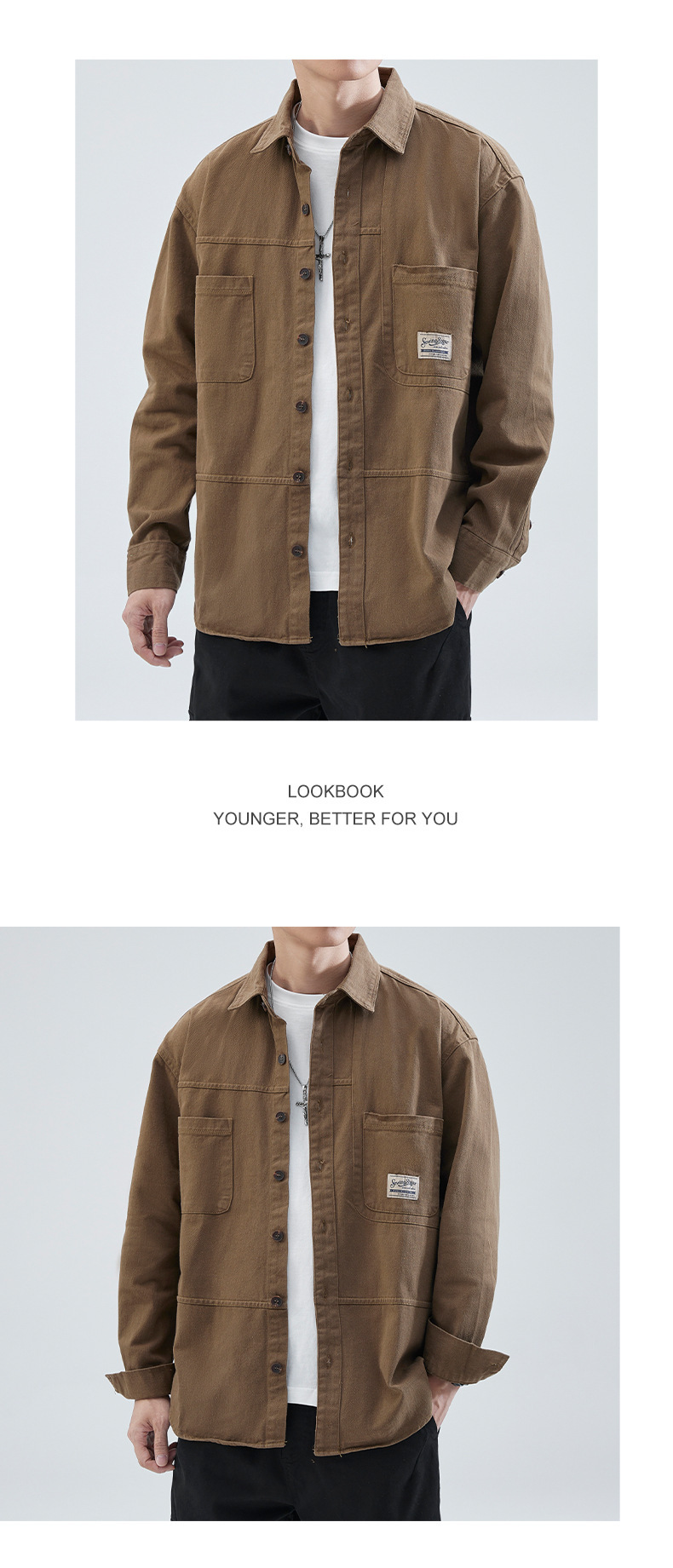 한스카 툴링 셔츠 재킷 남자 2025 년 봄과 가을 일본 스타일 느슨한 캐주얼 긴팔 셔츠 남자스토어 가기