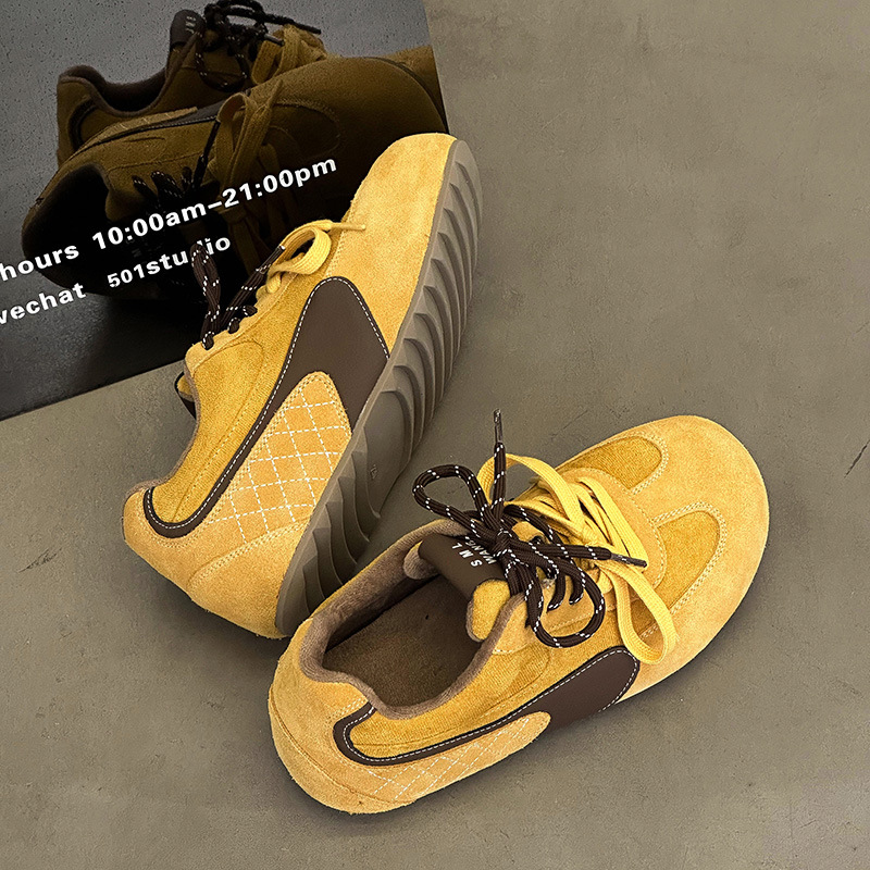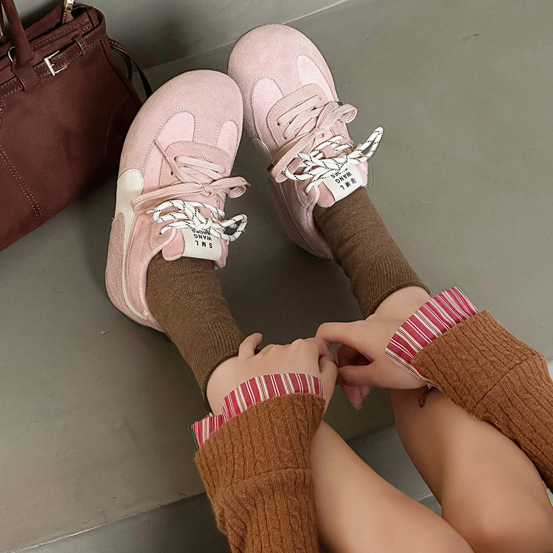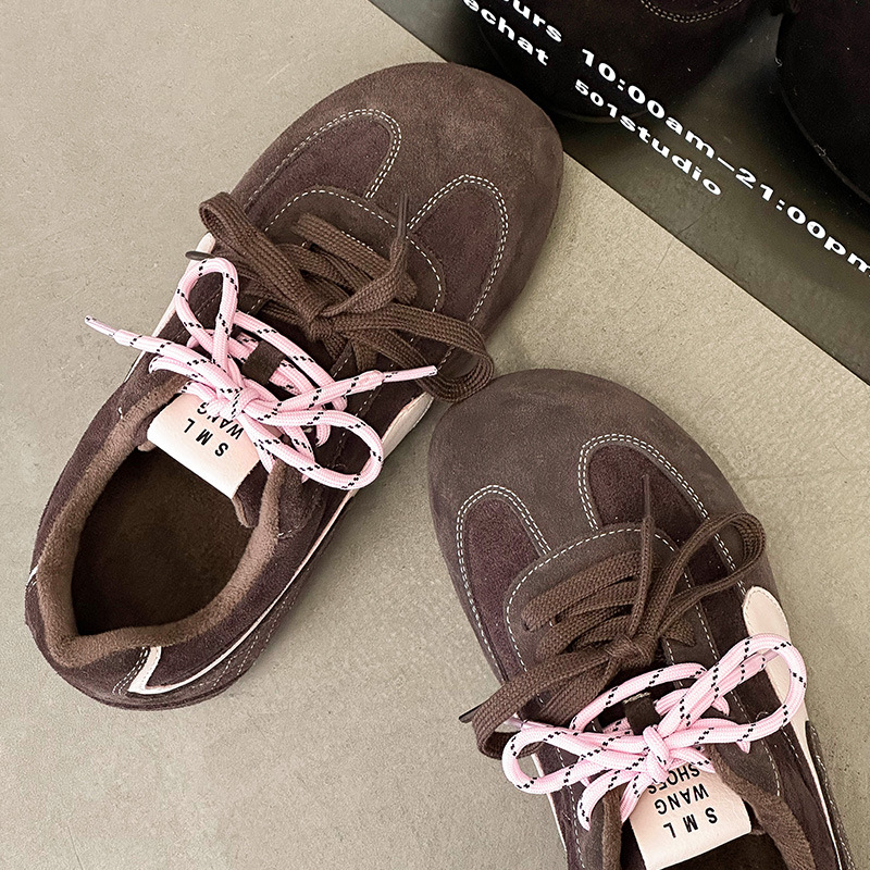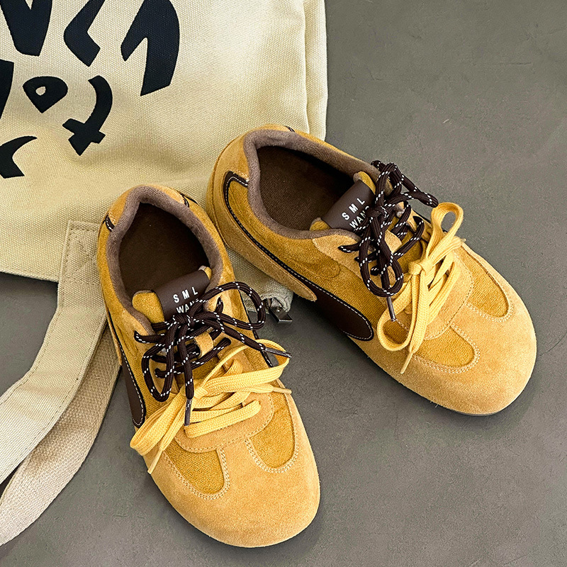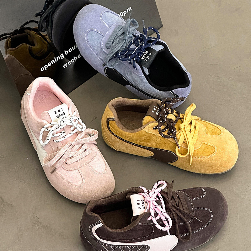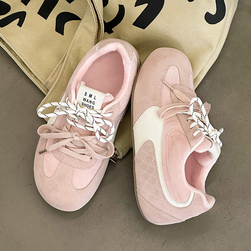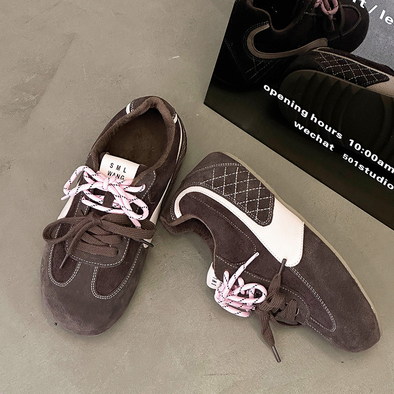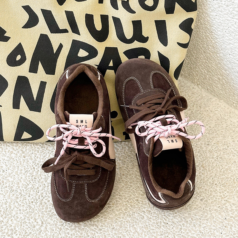 라이트 소프트 단독 ~ 정품 가죽 기모 미운 귀여운 독일 훈련 신발 여성의 2024 겨울 새로운 2 색 신발 끈 캐주얼 포레스트 검프 신발스토어 가기