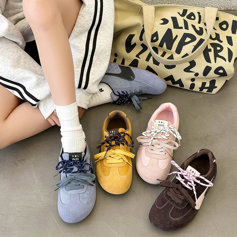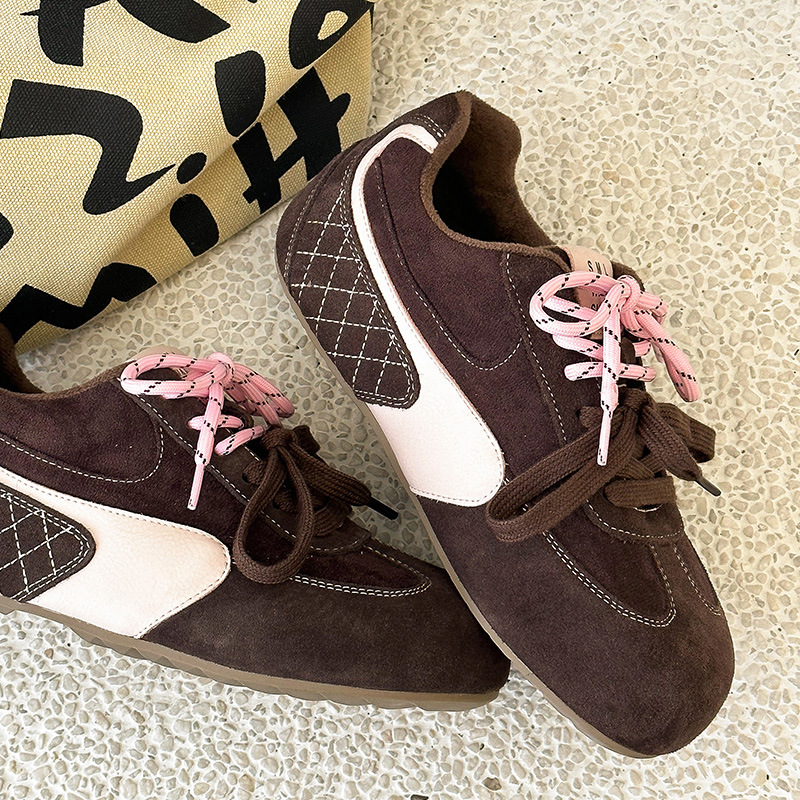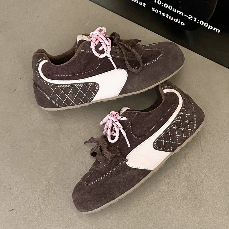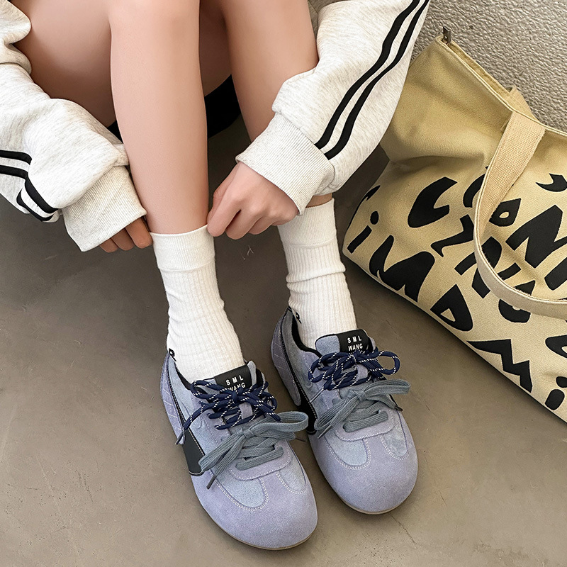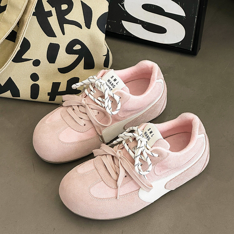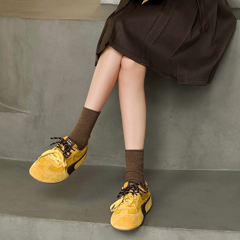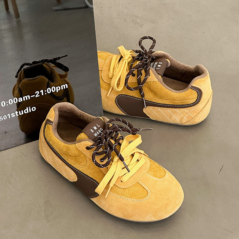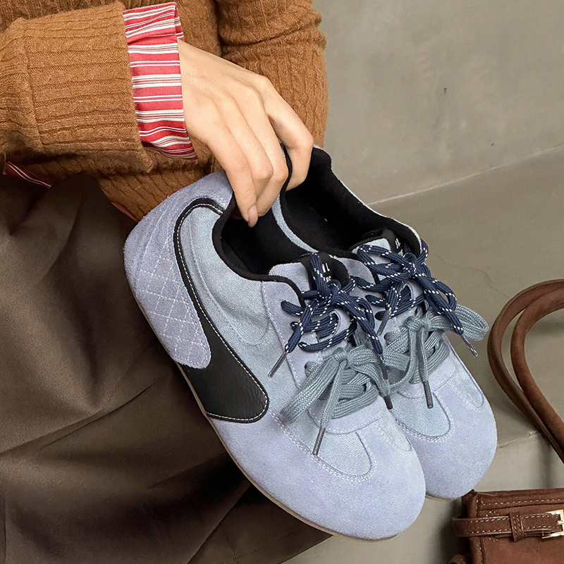 라이트 소프트 단독 ~ 정품 가죽 기모 미운 귀여운 독일 훈련 신발 여성의 2024 겨울 새로운 2 색 신발 끈 캐주얼 포레스트 검프 신발스토어 가기