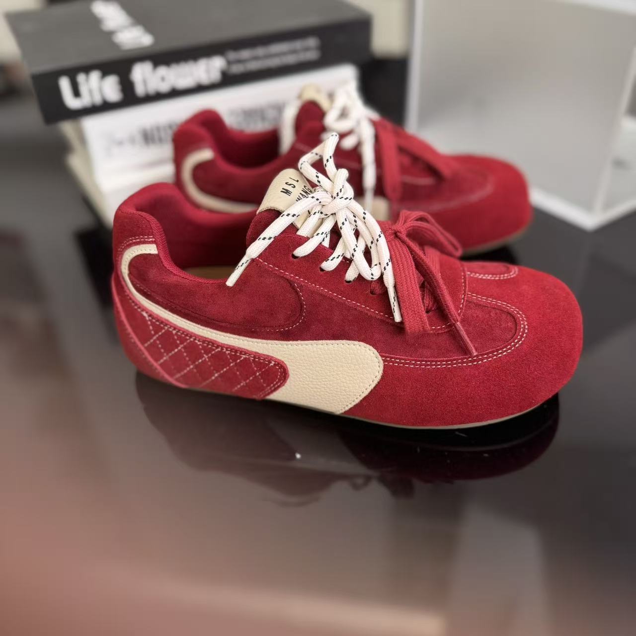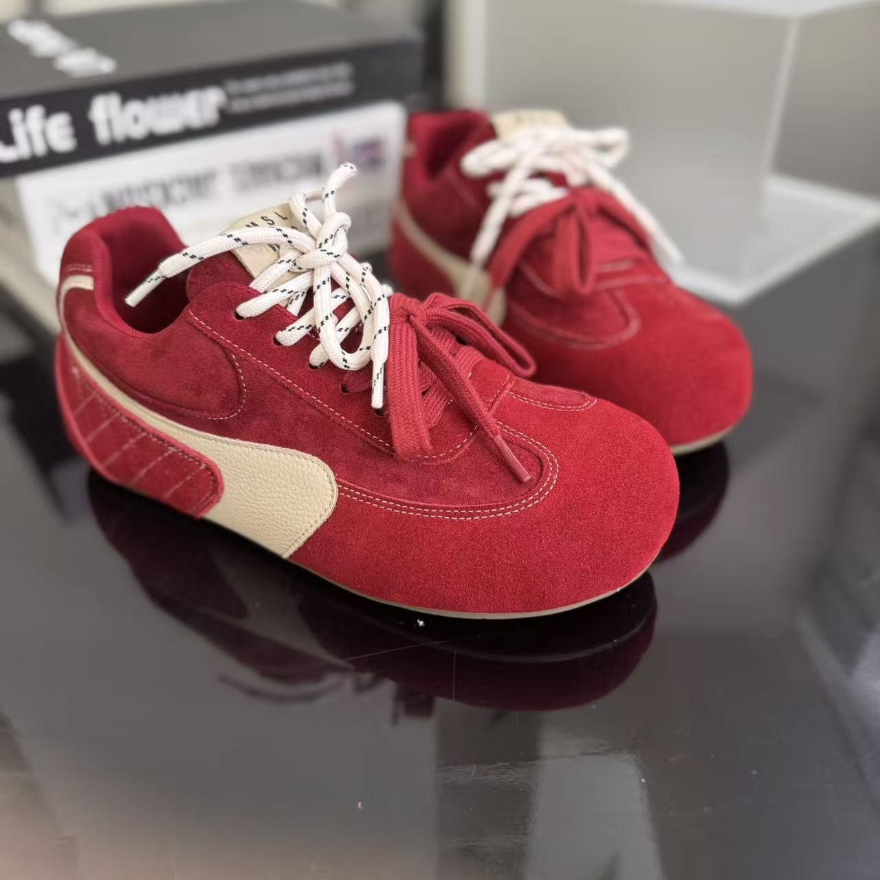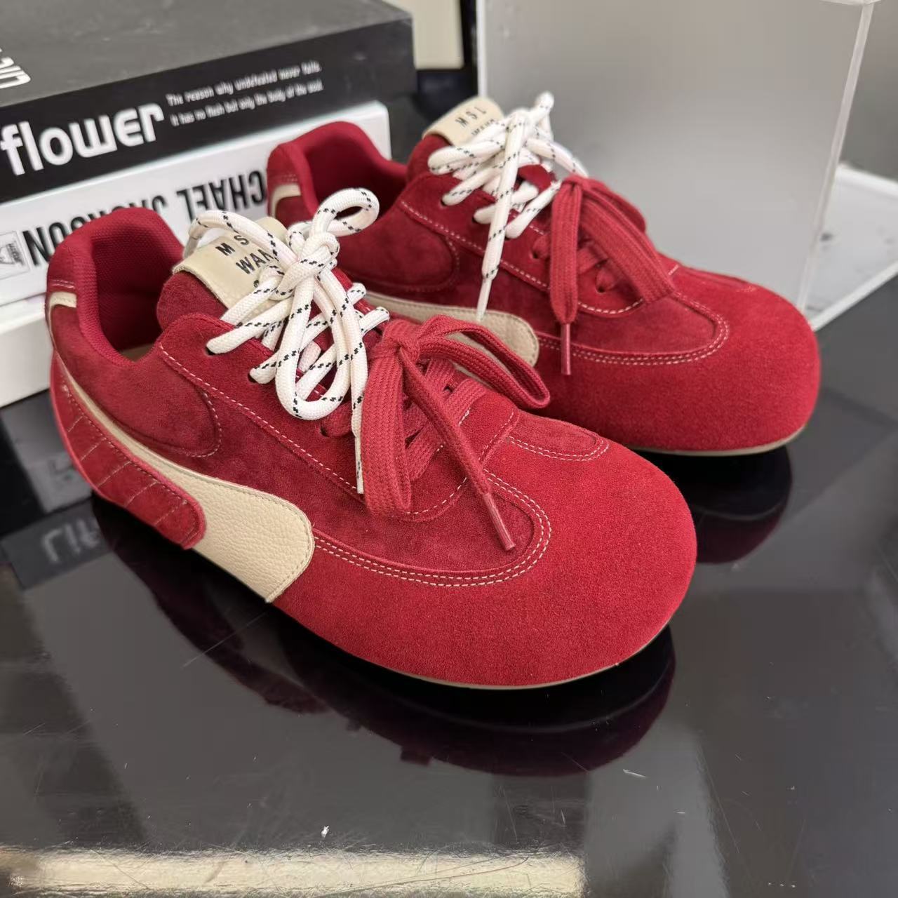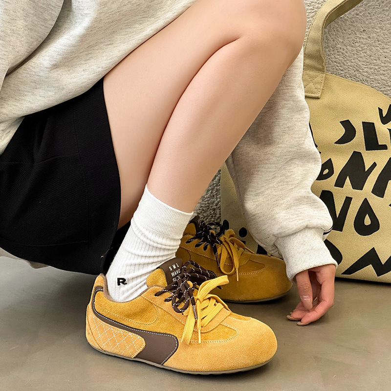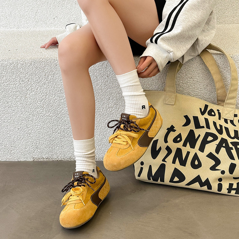 라이트 소프트 단독 ~ 정품 가죽 기모 미운 귀여운 독일 훈련 신발 여성의 2024 겨울 새로운 2 색 신발 끈 캐주얼 포레스트 검프 신발스토어 가기