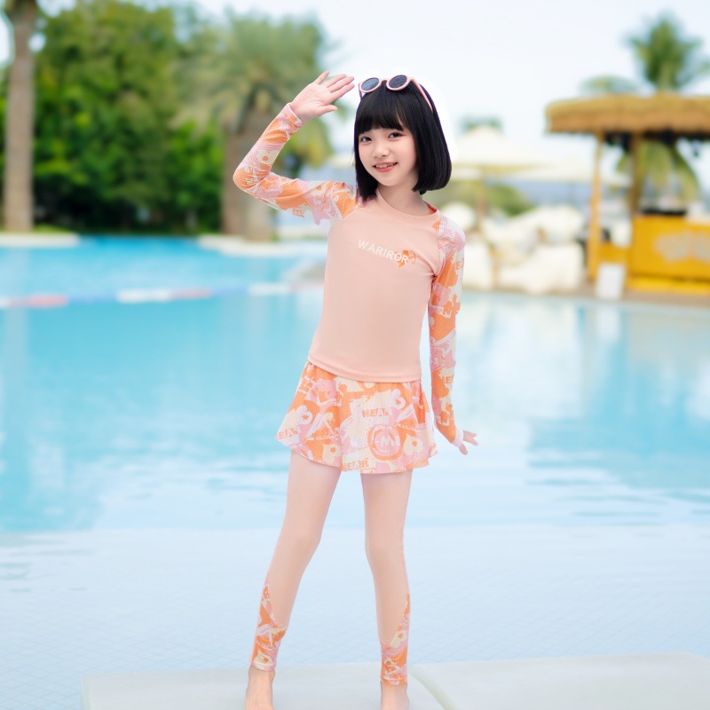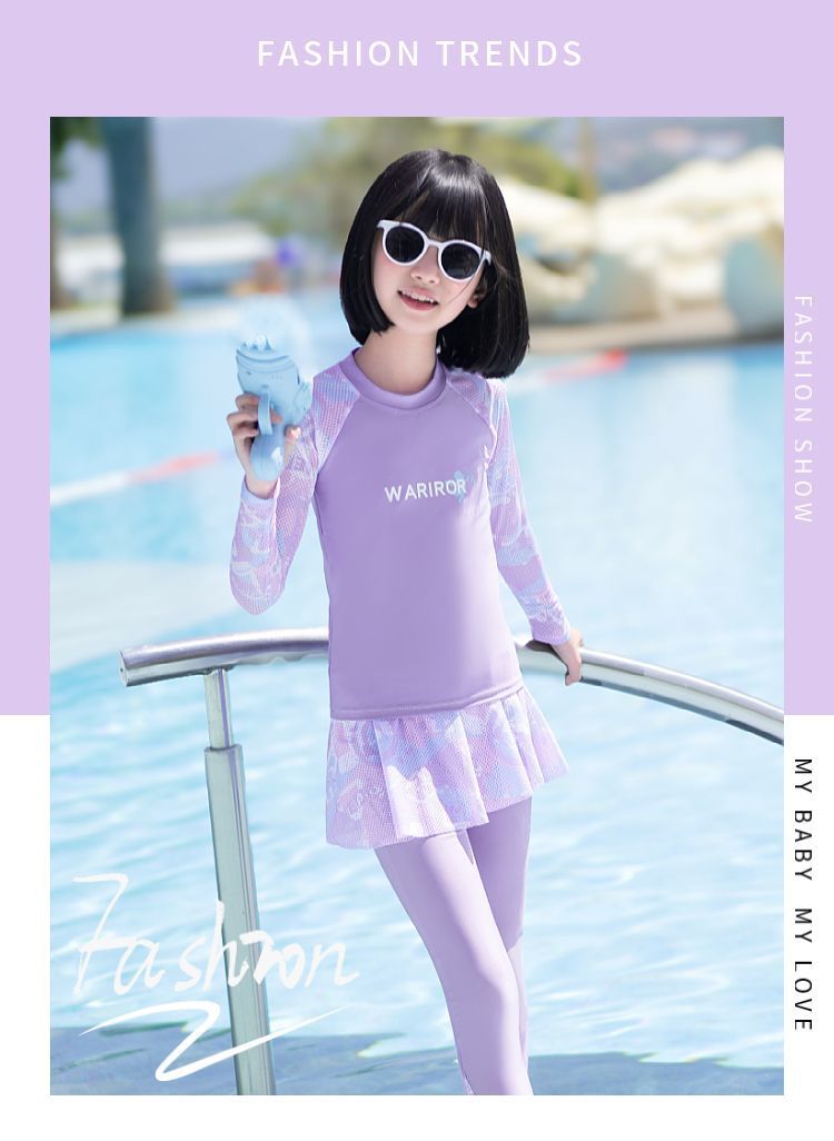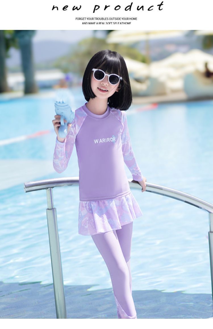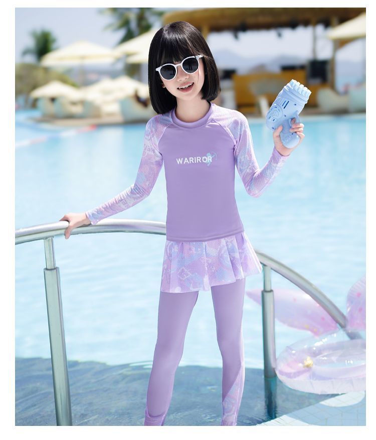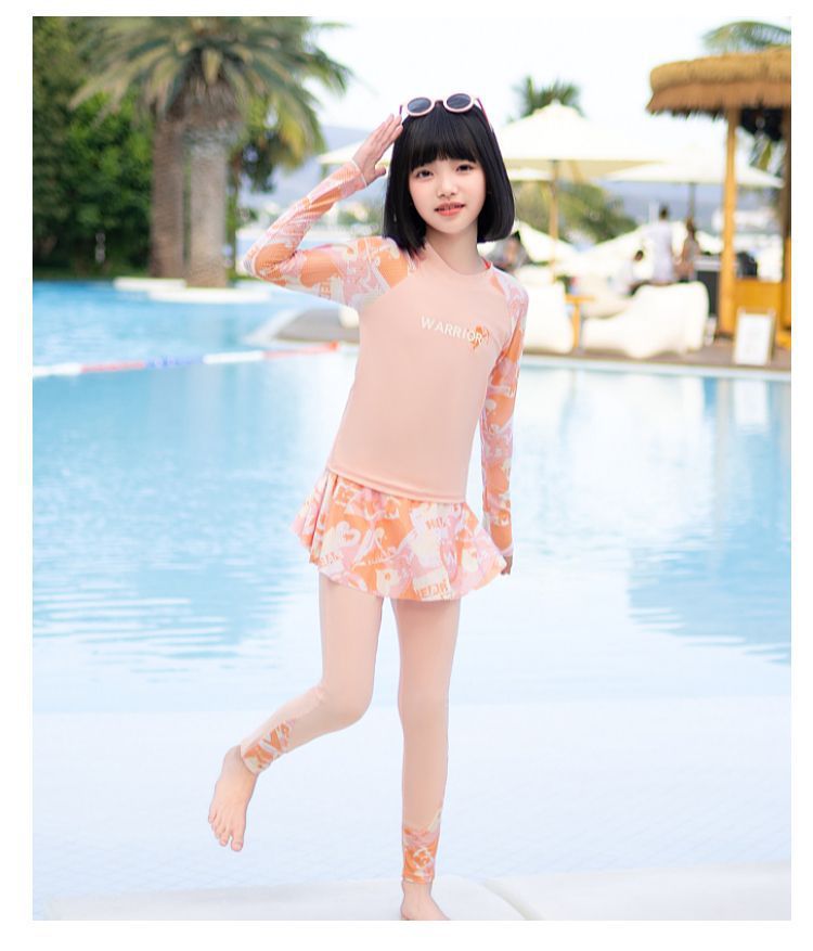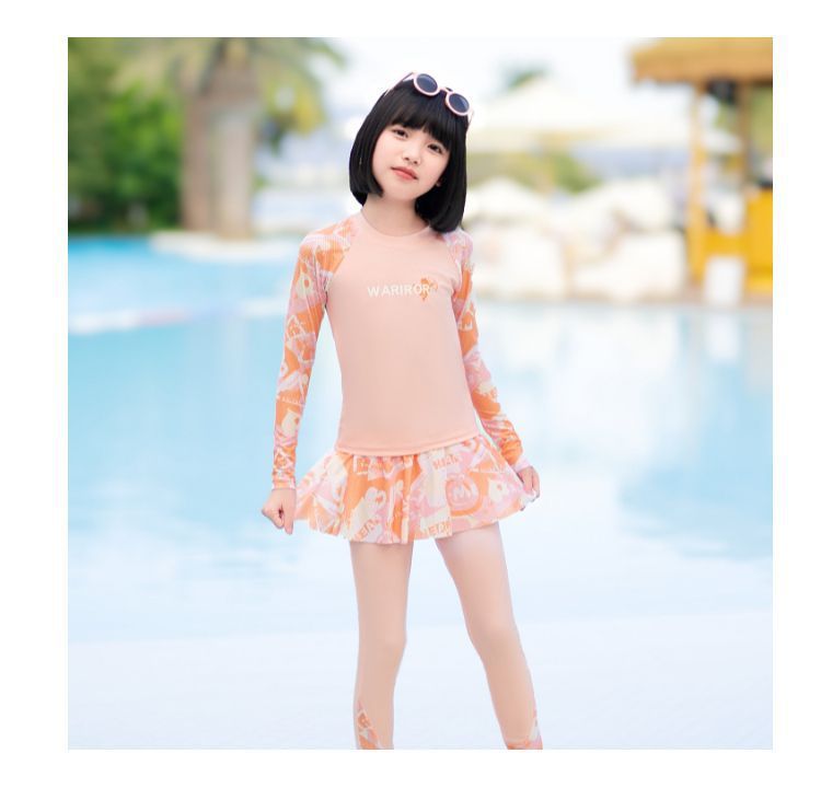 어린이 수영복 소녀 분할 긴 소매 바지 수영복 2025 어린이와 소녀를위한 새로운 온천 세트
