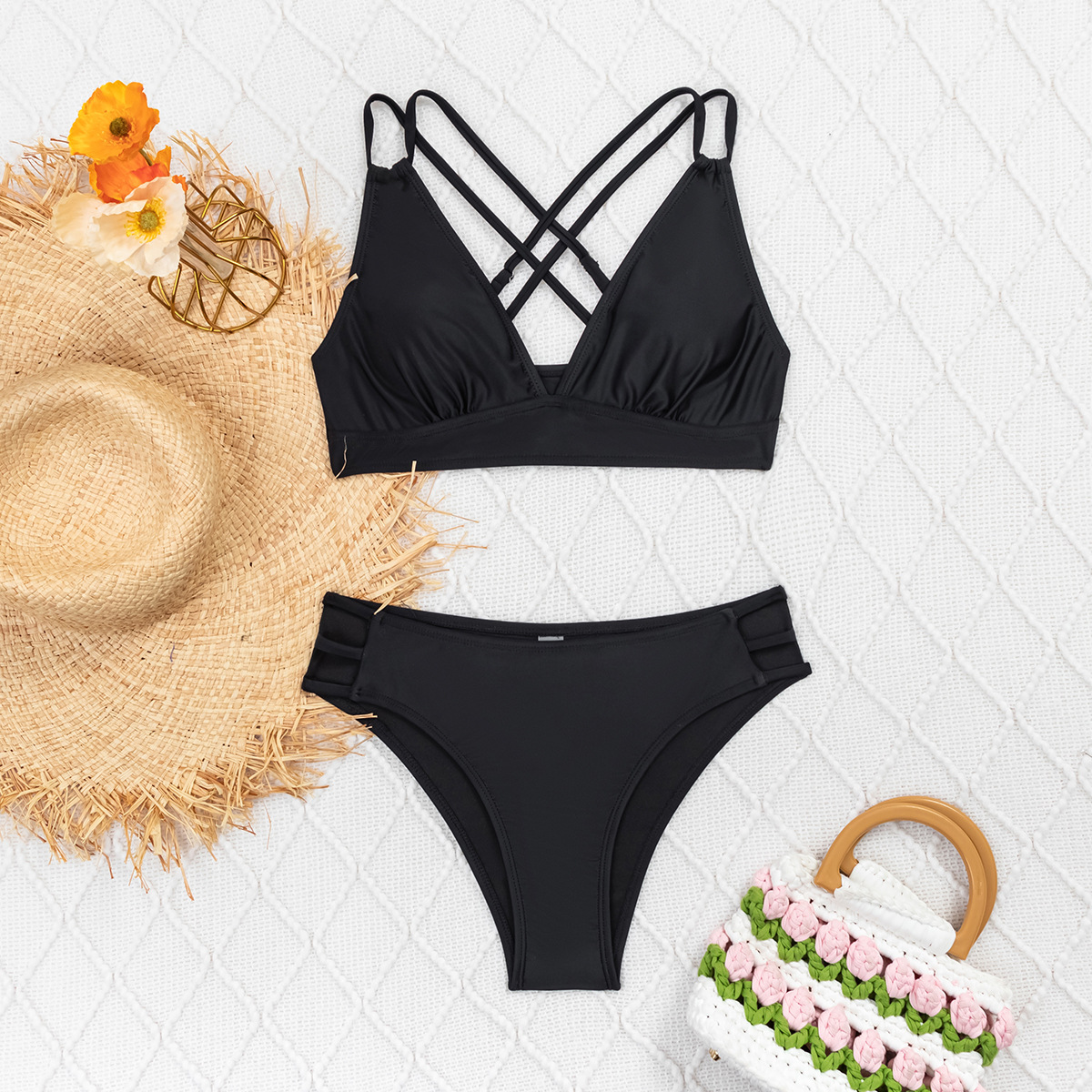 2025 국경 유럽 및 미국 대외 무역 새로운 비키니 단색 V 넥 섹시한 비키니 분할 여성 수영복 도매