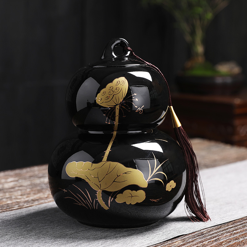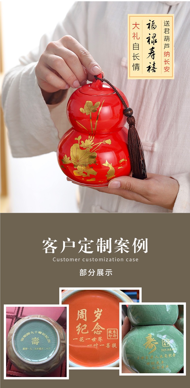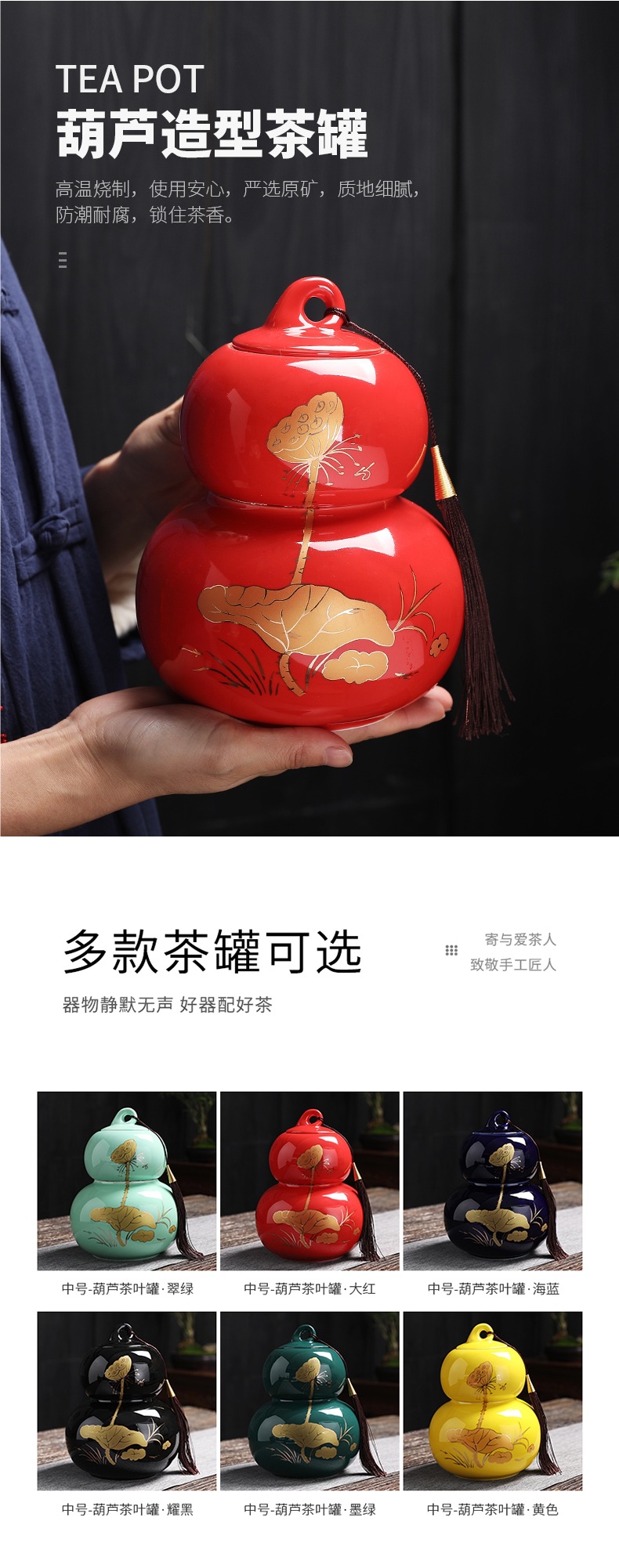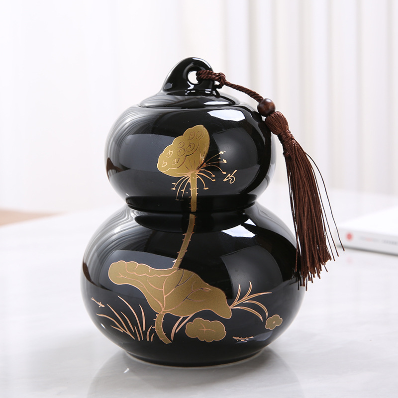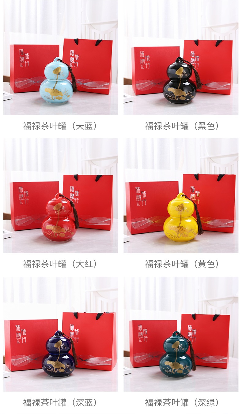 Folu 세라믹 조롱박 차 냄비 장식품 스몰 사이즈 가정용 대형 봉인 냄비 Pu'er 홍차 빈 포장 상자스토어 가기
