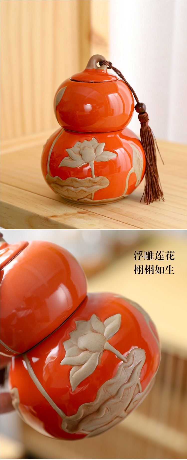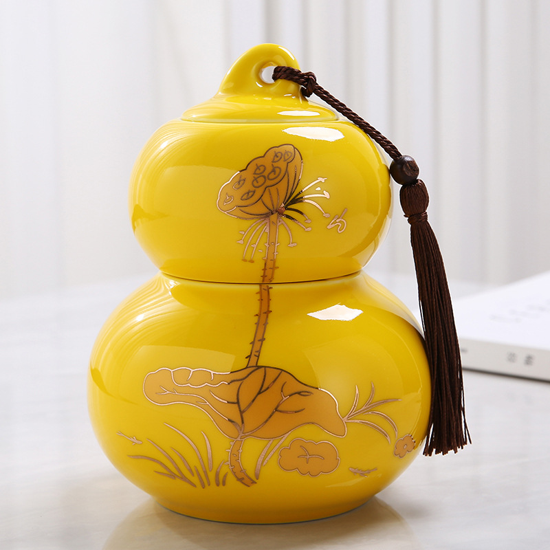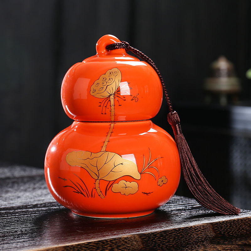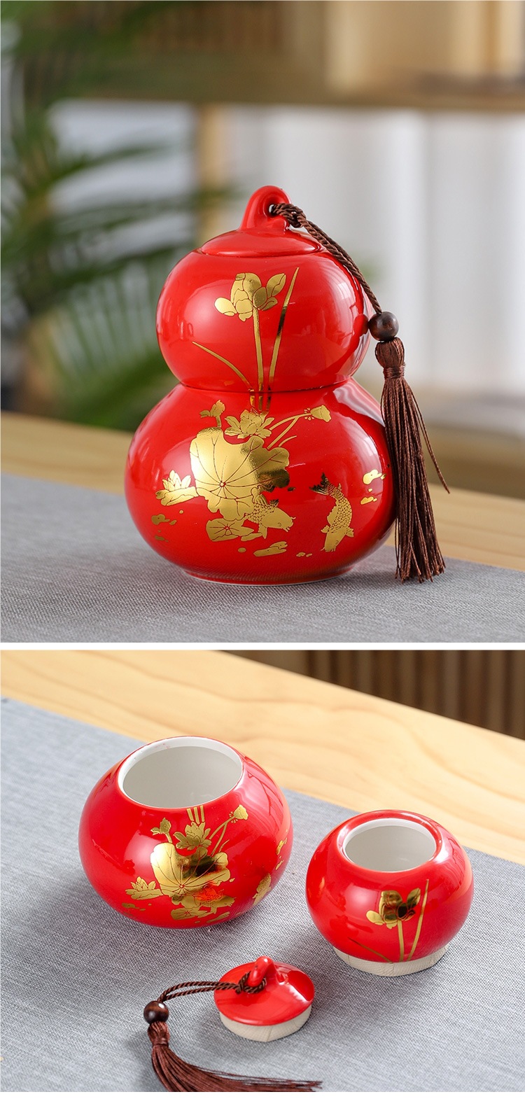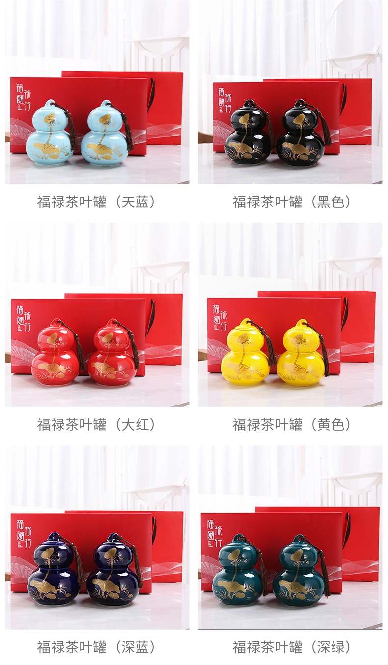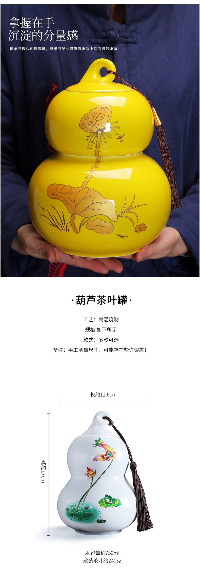 Folu 세라믹 조롱박 차 냄비 장식품 스몰 사이즈 가정용 대형 봉인 냄비 Pu'er 홍차 빈 포장 상자스토어 가기